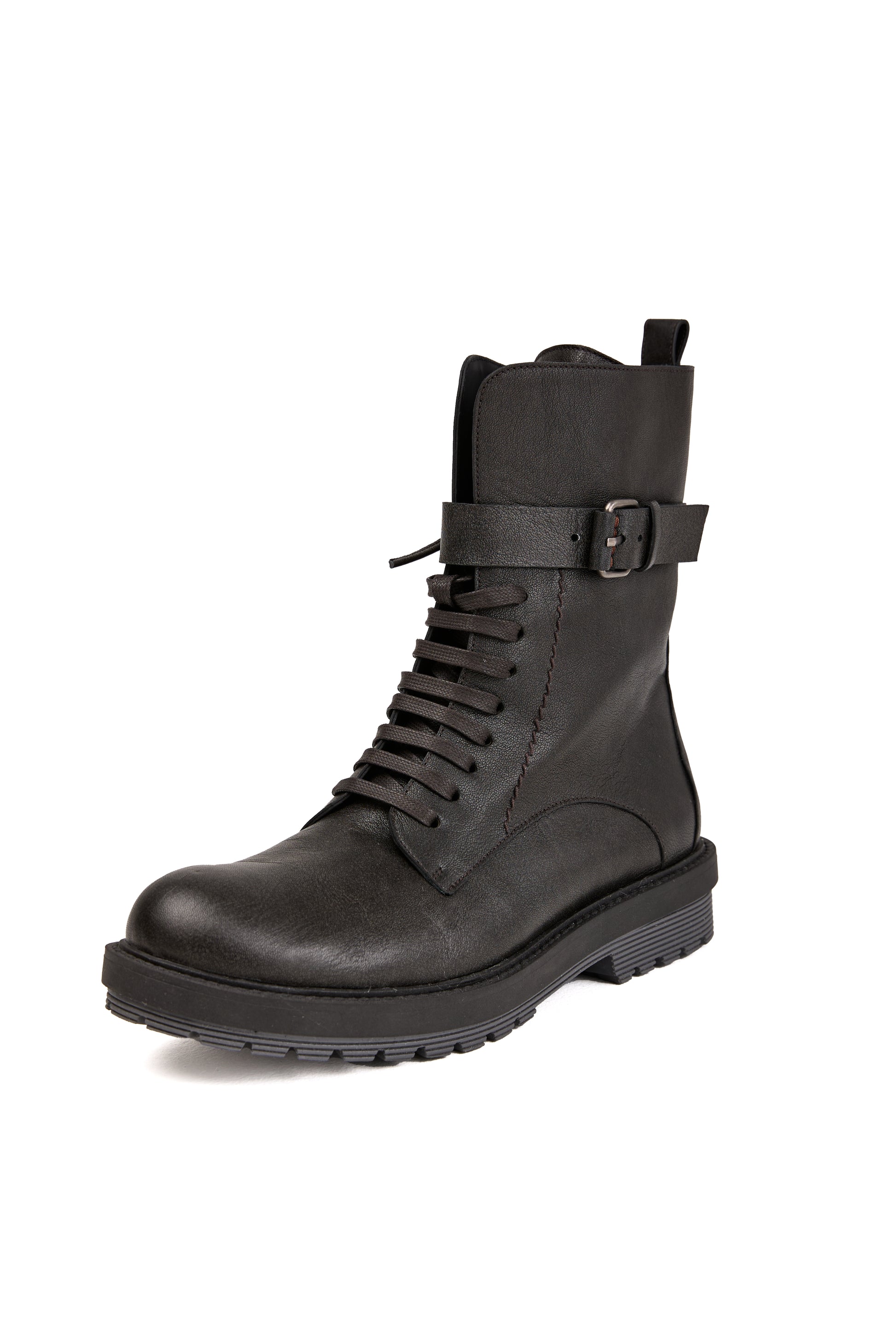 HENRY BEGUELIN Leather Boot Anfibio Ombreggiato in Anthracite. Hand Made in Italy.
