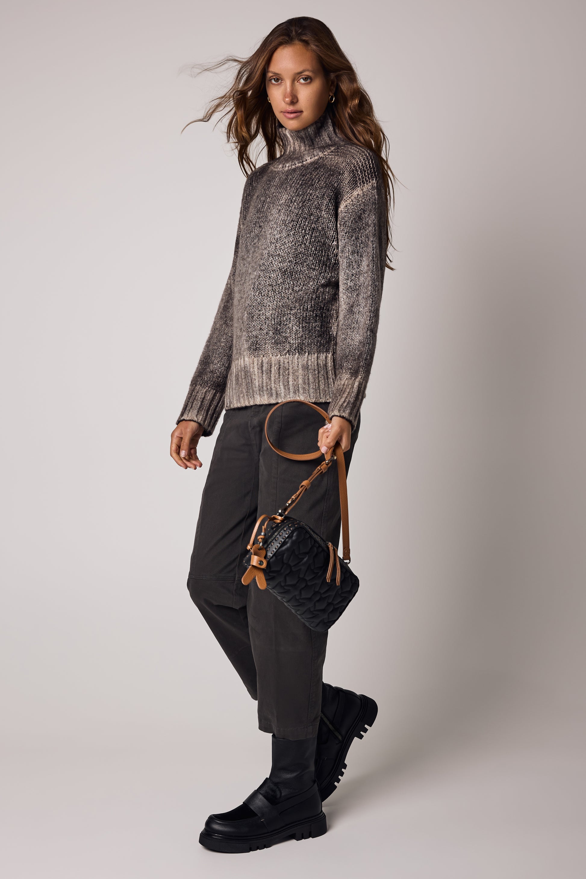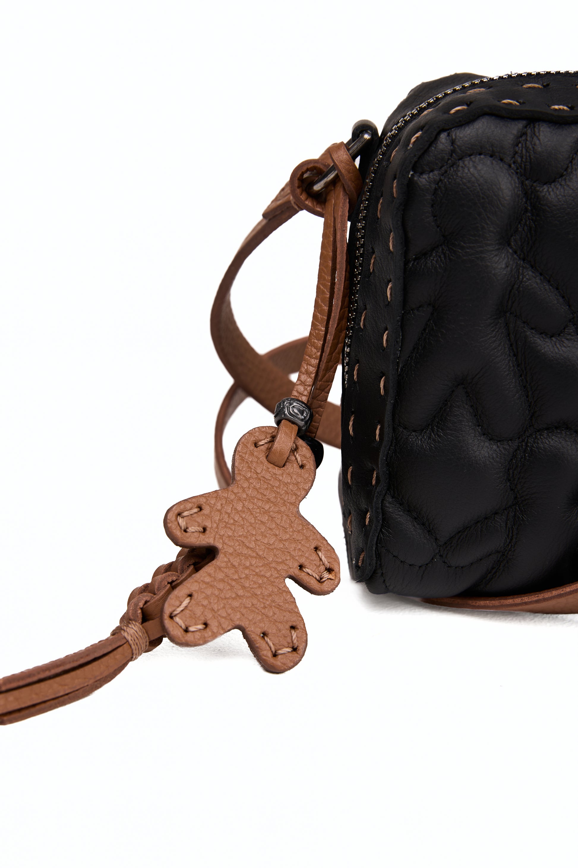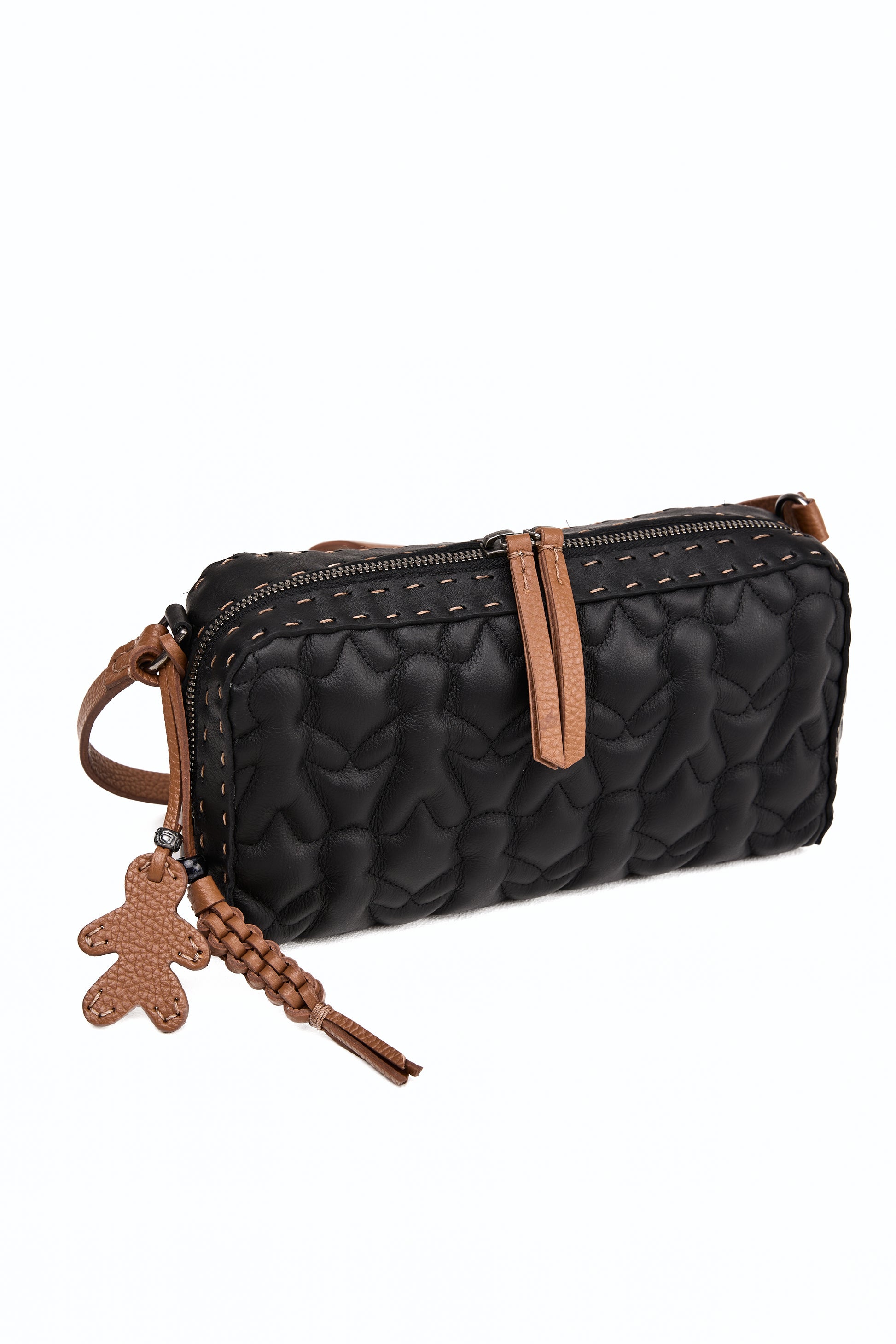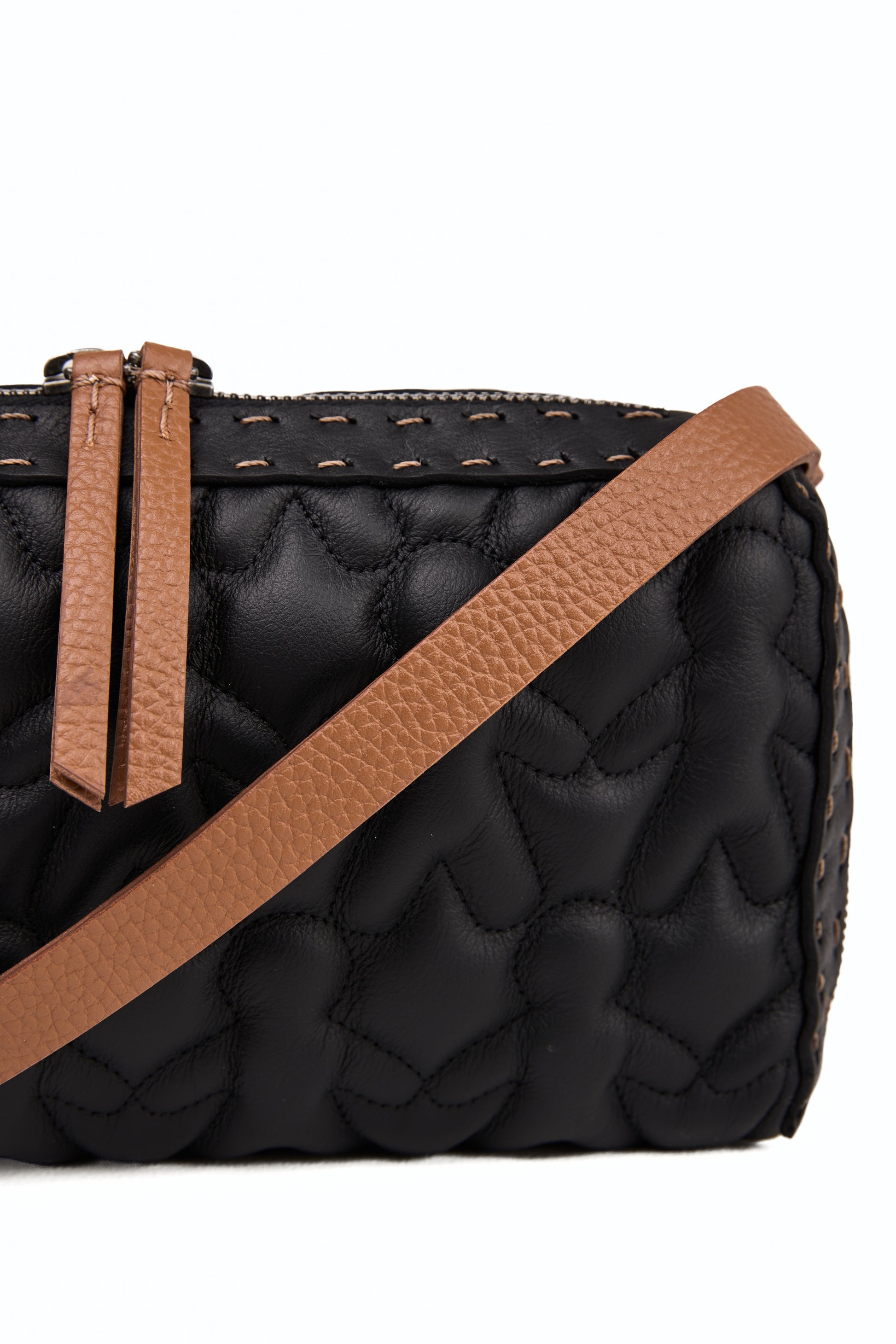 Leather Box Bag in Bovino Onimo Trapuntato Nero