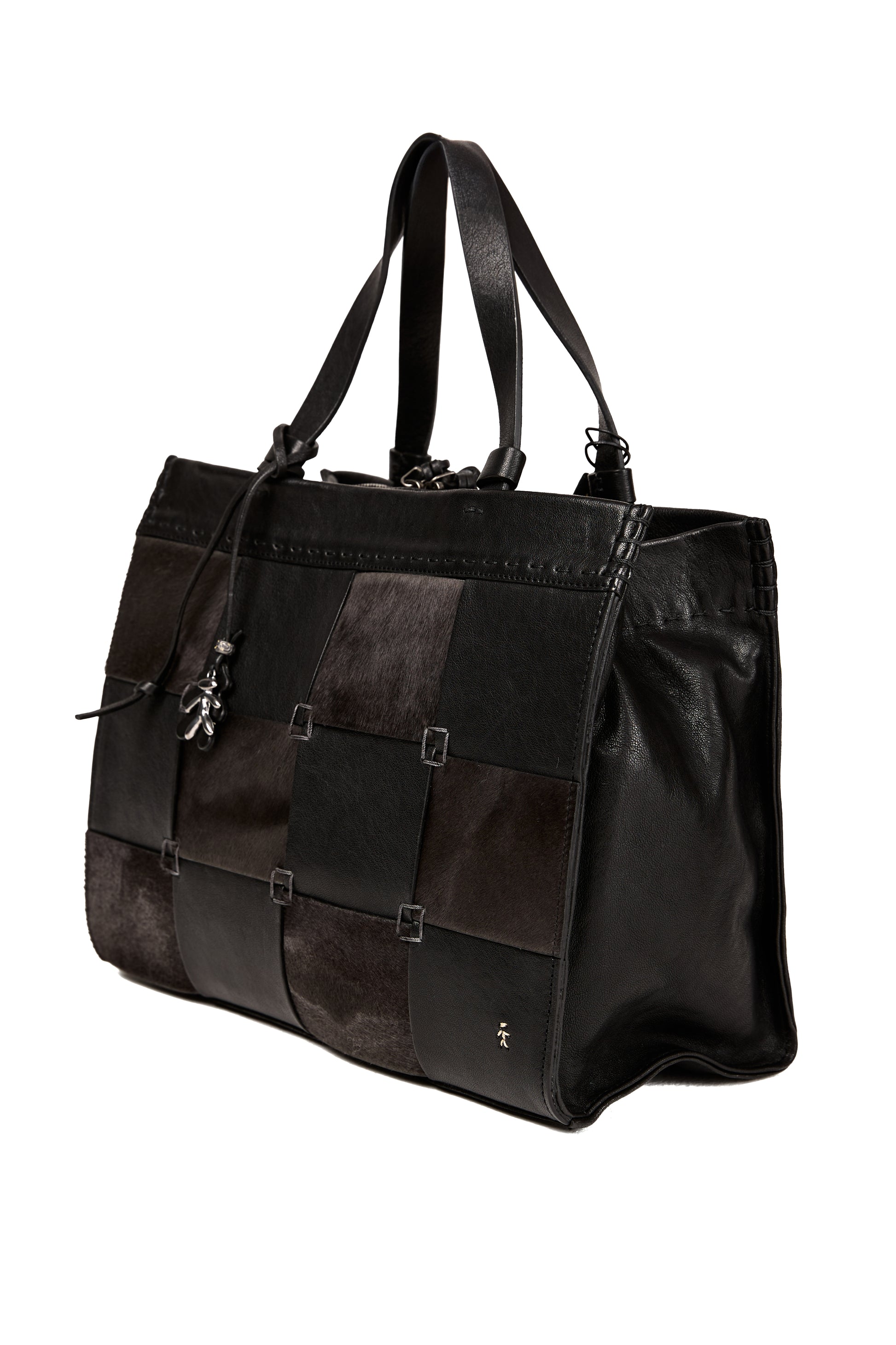 The HENRY BEGUELIN Leather Shopping Bag in Pony Sfumato Nero combines Italian craftsmanship with modern versatility. Handmade from luxurious calfskin leather, this bag features a pony-effect patchwork flap, two-way zip closure, and adjustable straps for crossbody or handbag styling.