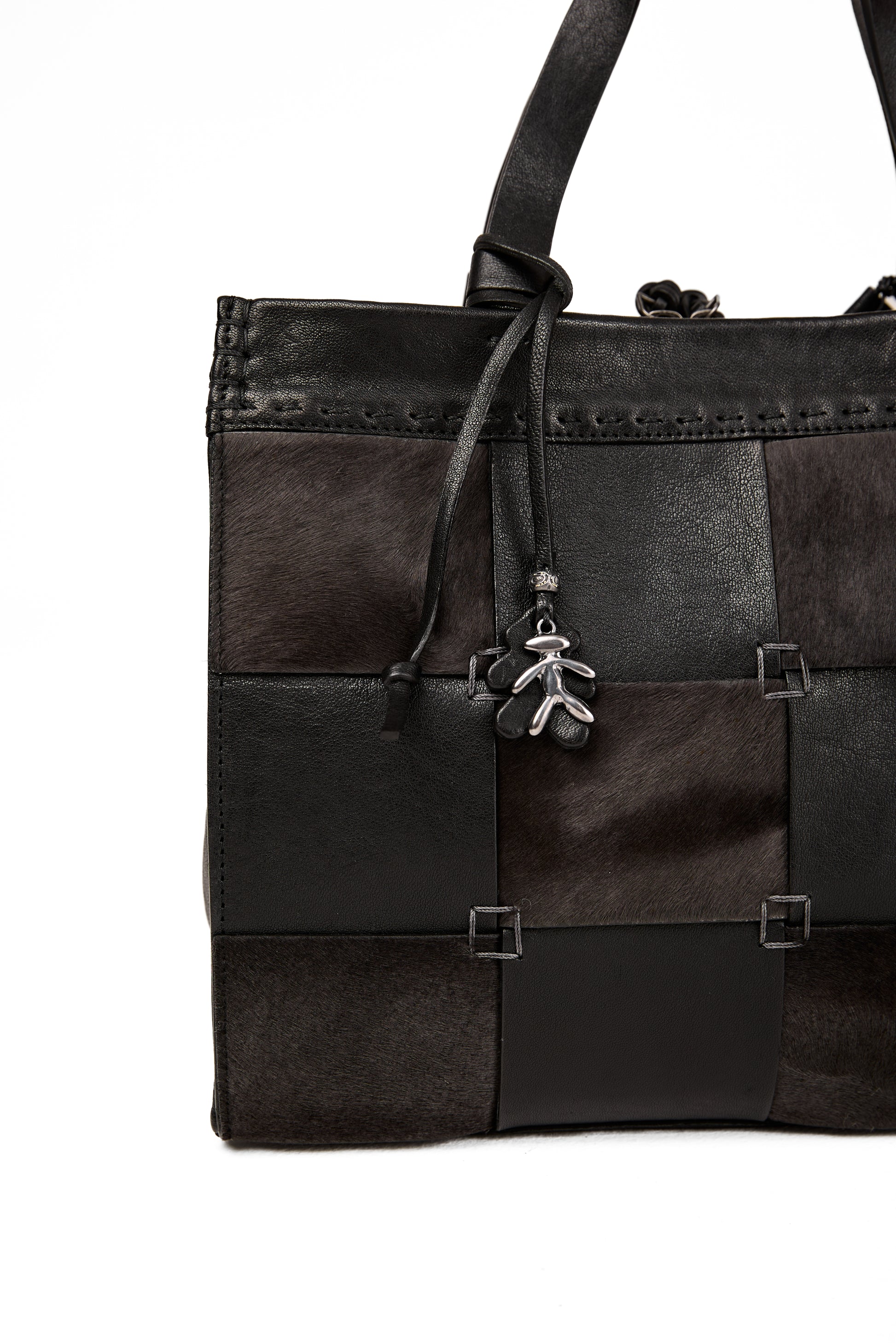 - Patchwork flap fur pony effect and leather
