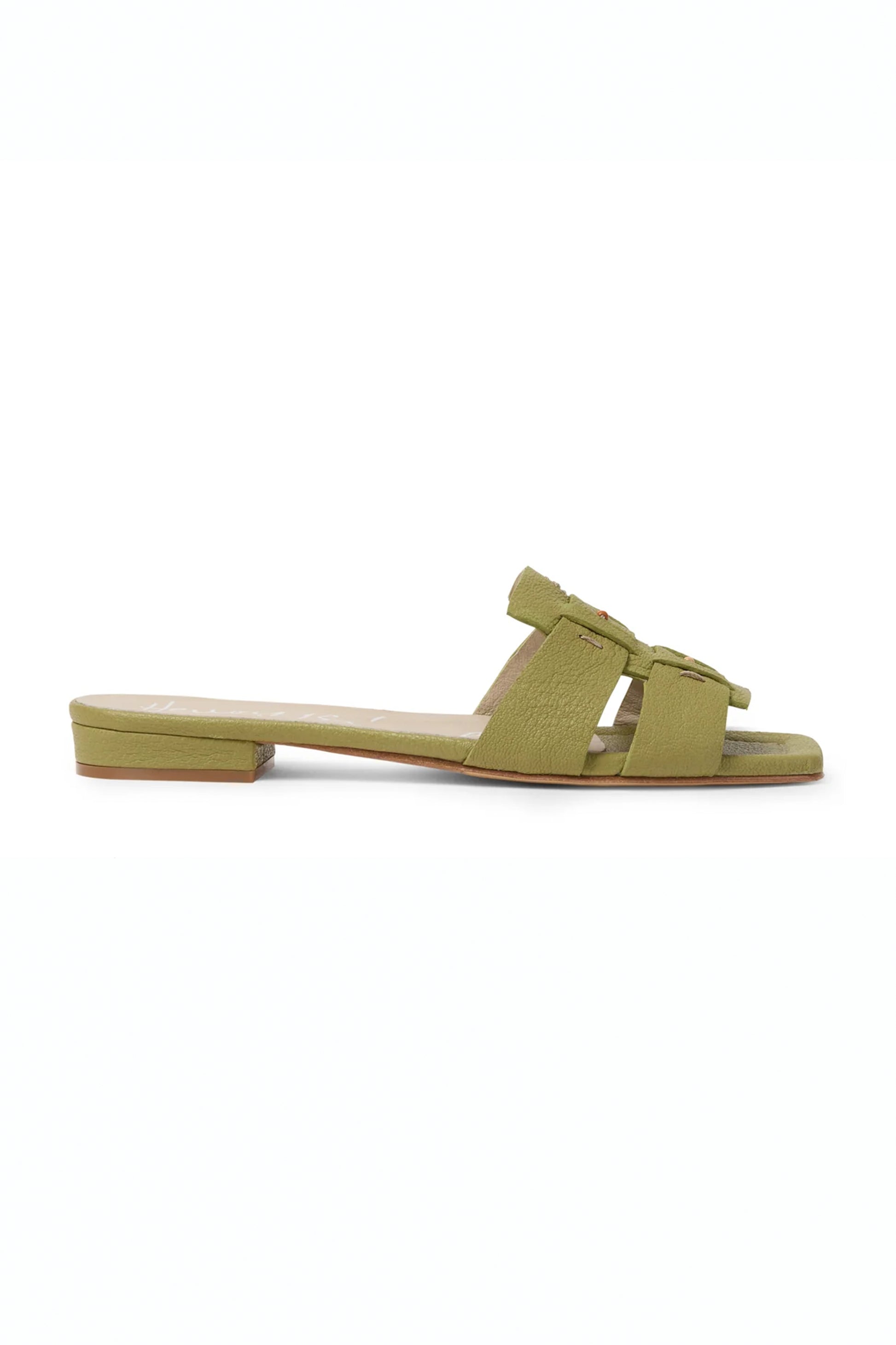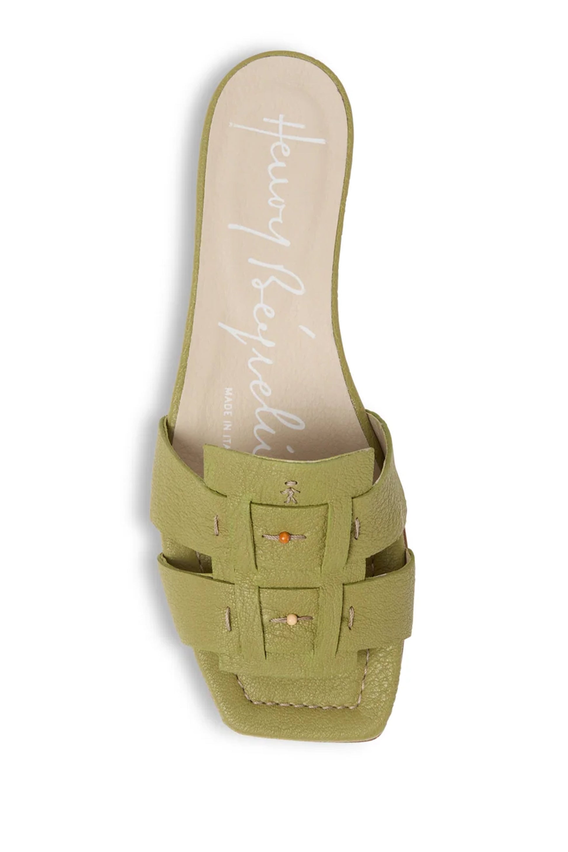 The HENRY BEGUELIN Leather Slides in Martellato Prato combine luxury and comfort with their elegant interwoven strap design and delicate stitching. They are hand-crafted in Italy from high-quality calfskin leather. Featuring a square toe design, they offer all-day comfort and modern refinement.