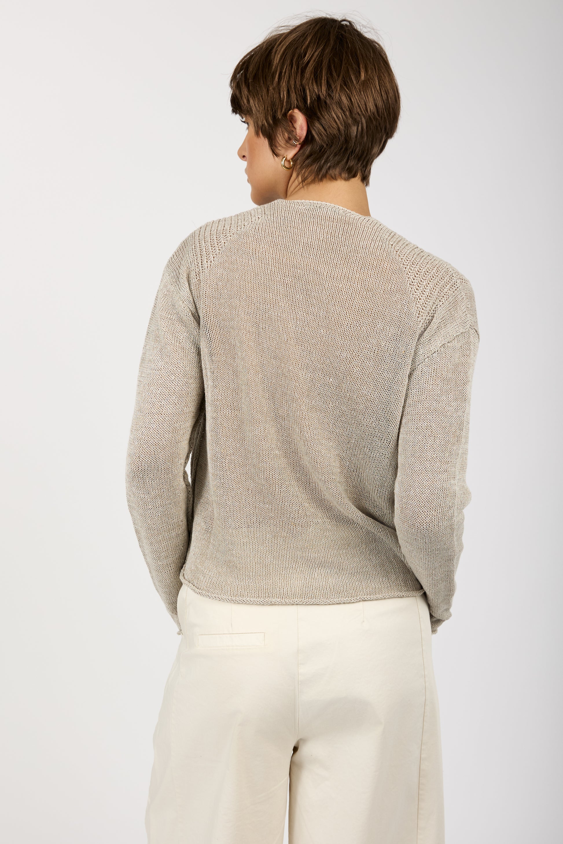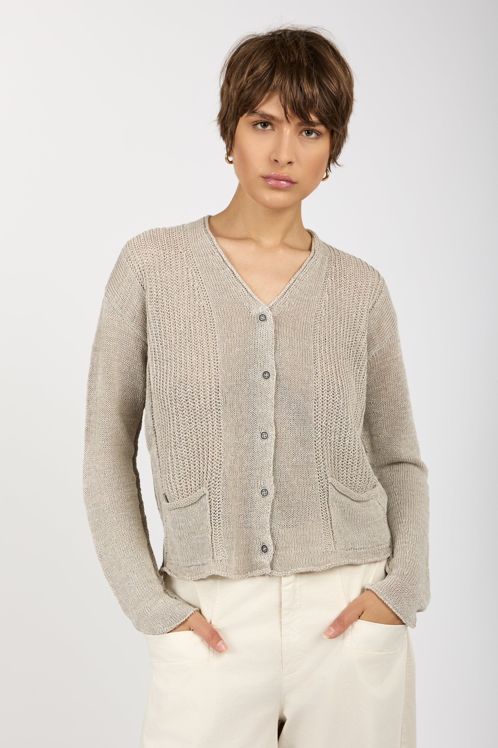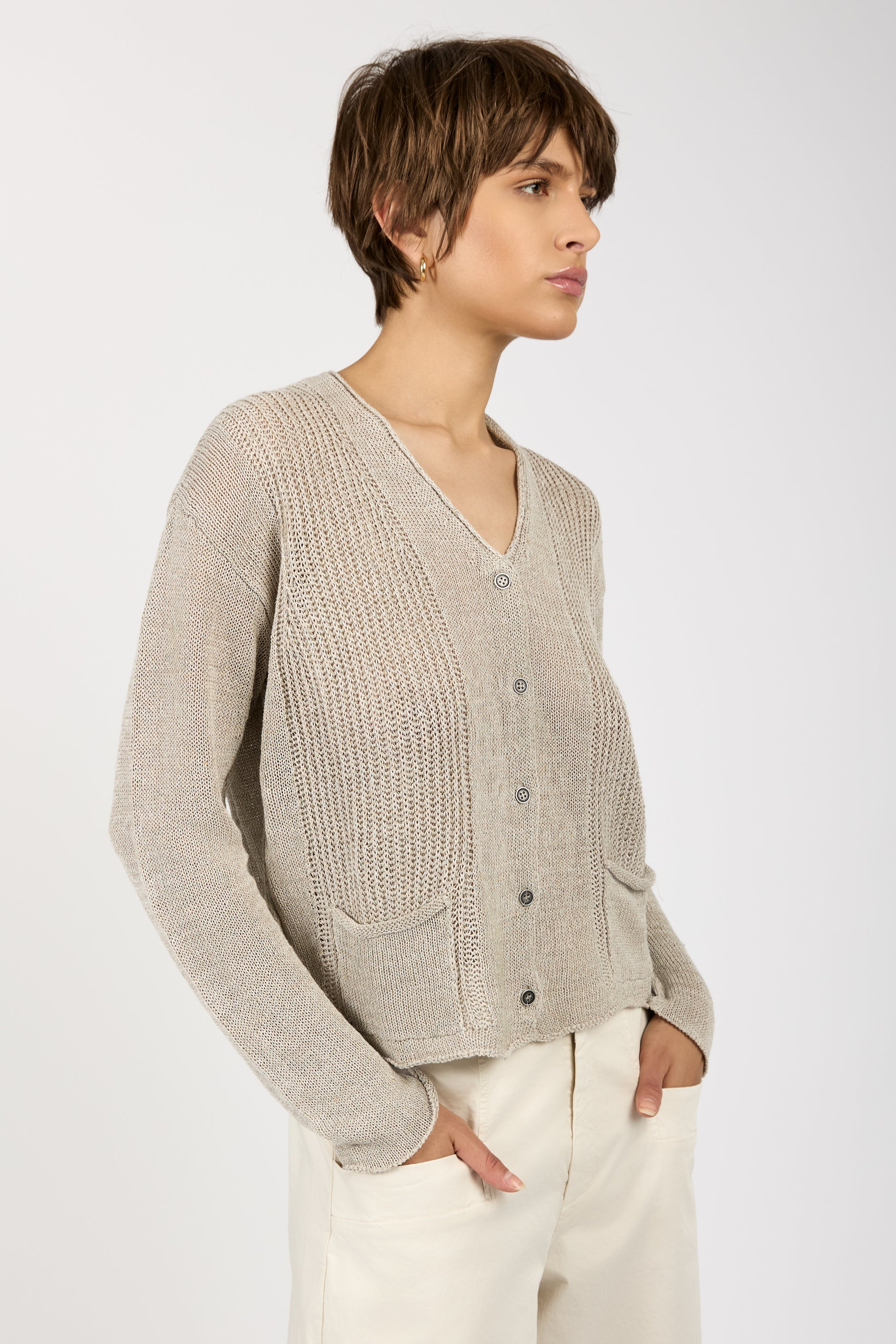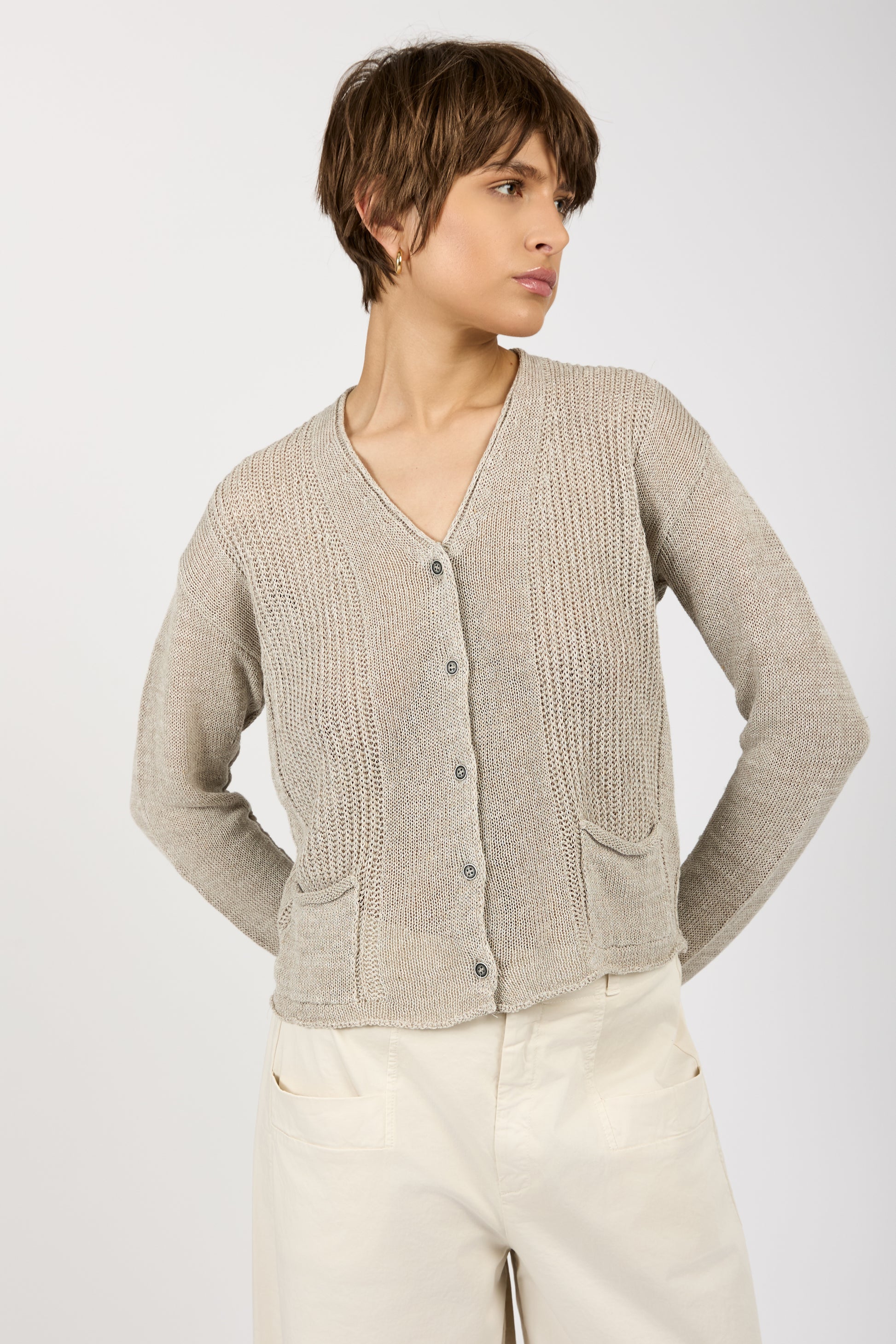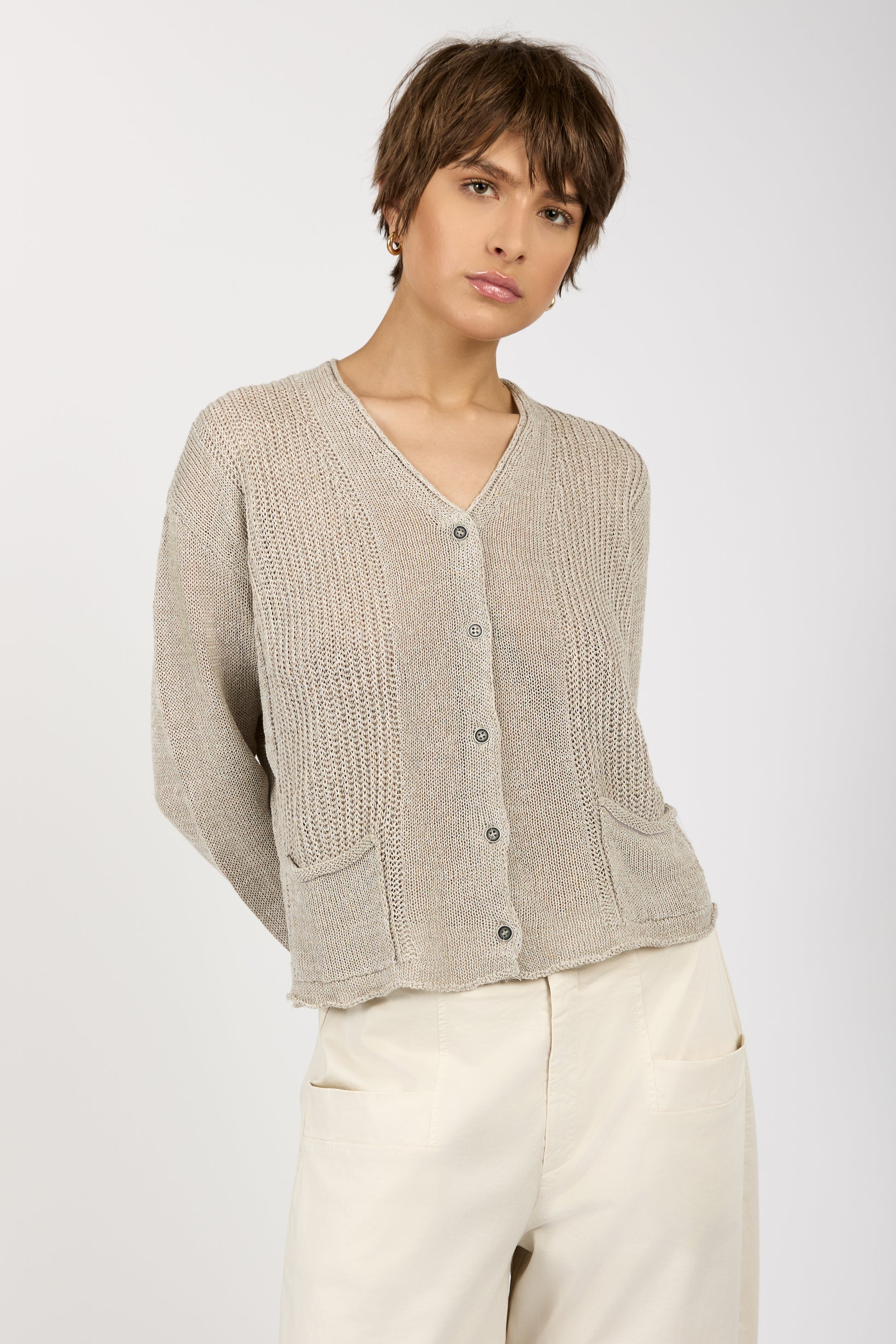 Linen and Cotton Knit Cardigan in Pearl Grey