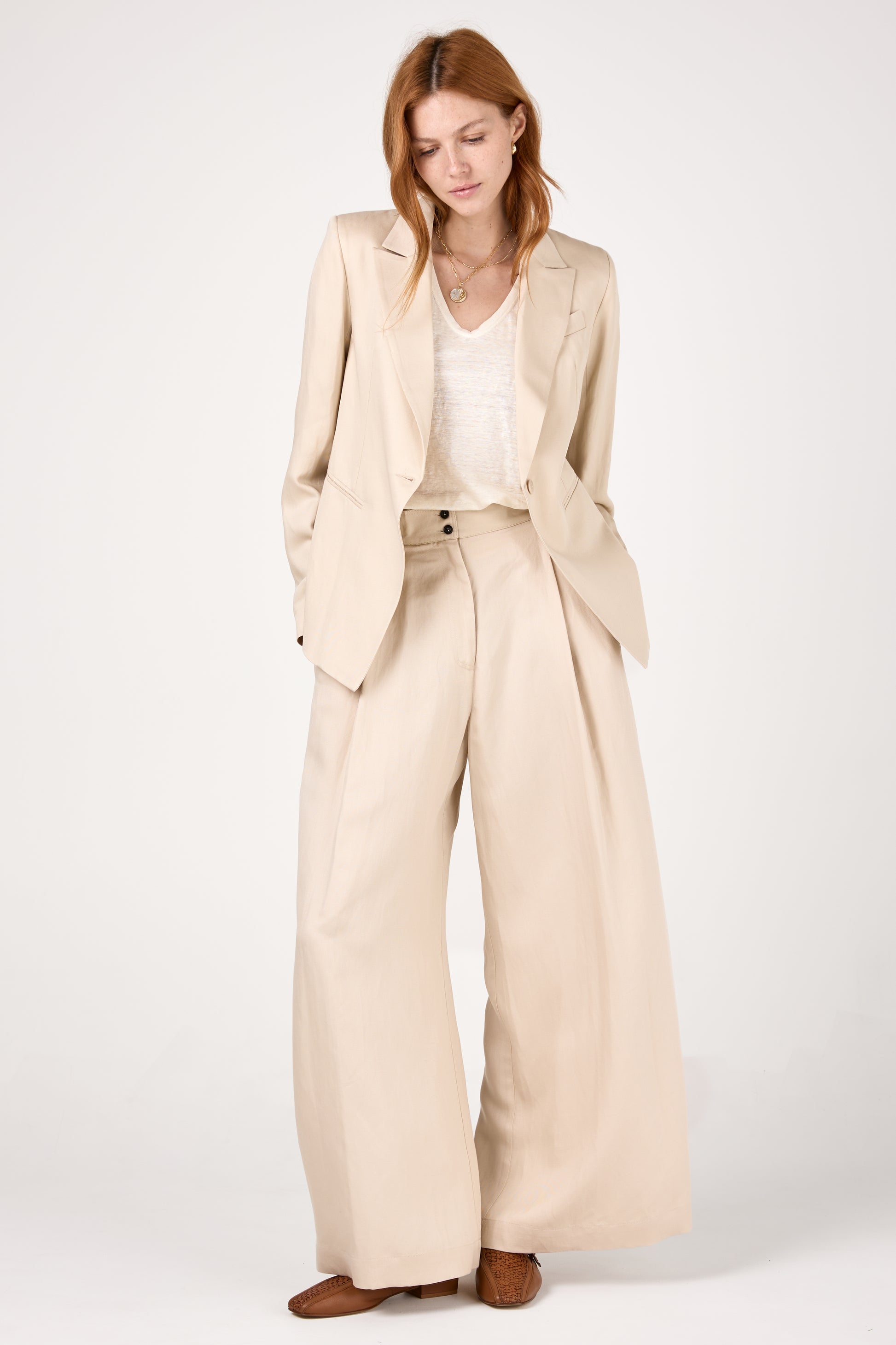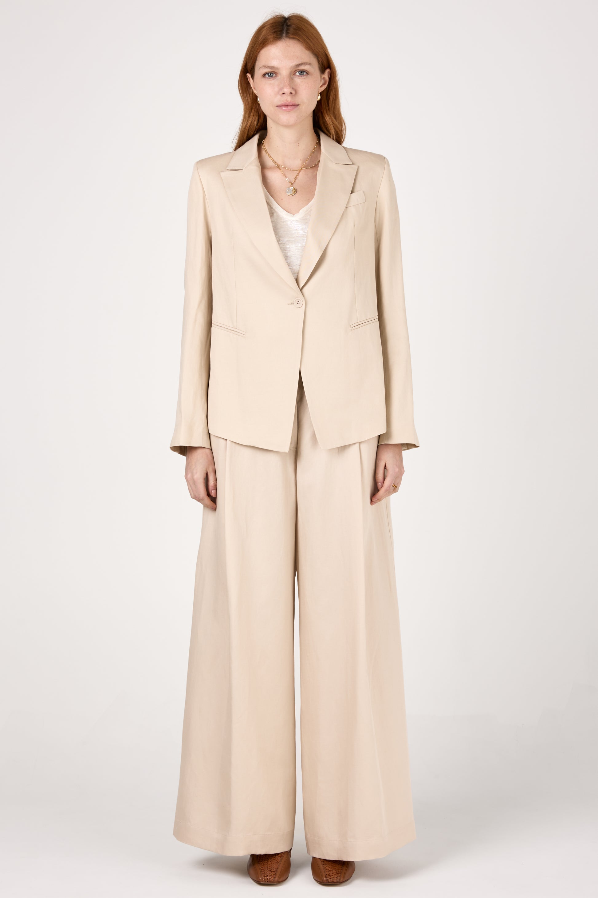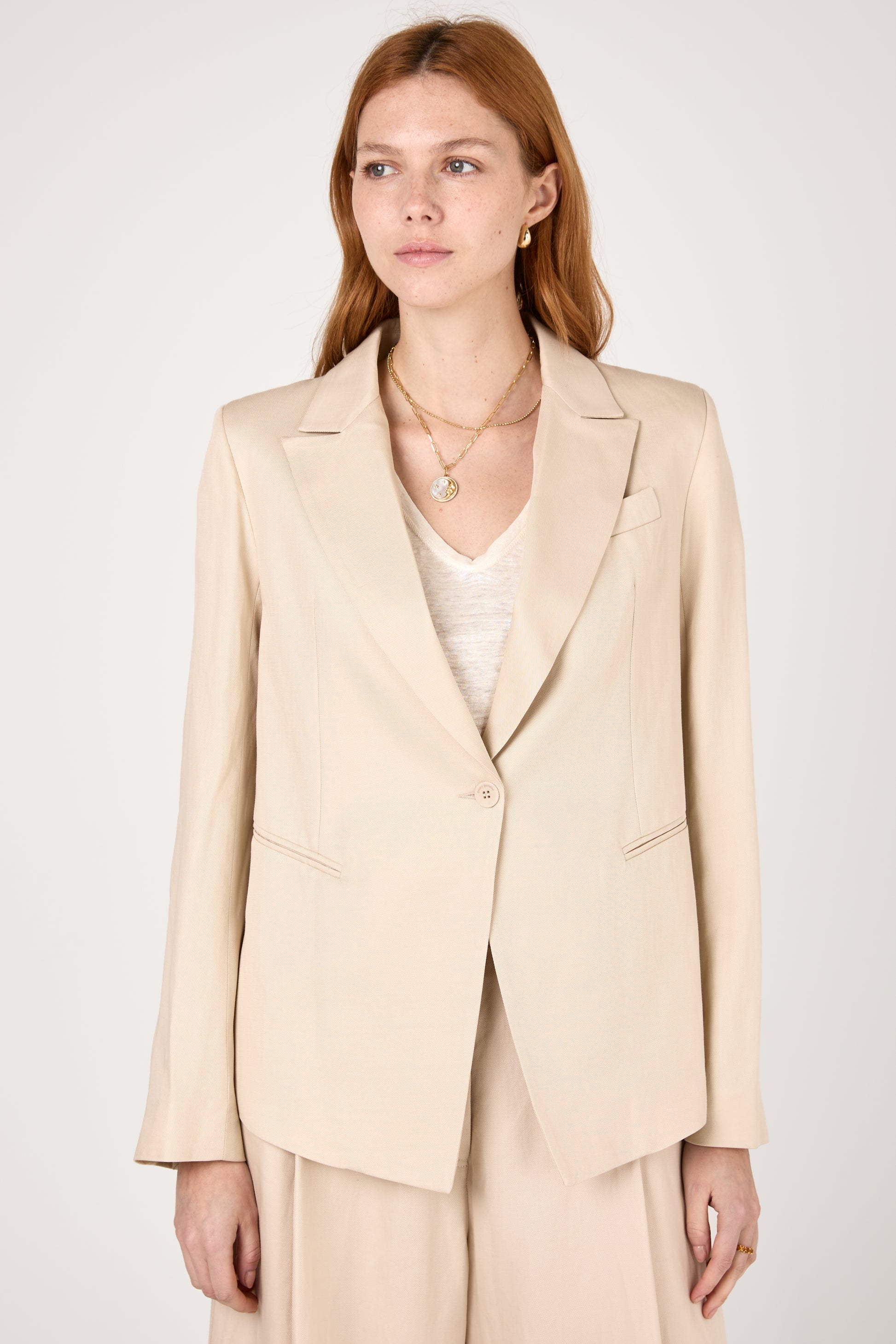 The GENTRYPORTOFINO Linen Blazer Jacket in Beige is crafted in Italy from a premium blend of tencel and linen. This piece offers durability with a lightweight, breathable feel. Finished with a 100% cupro lining for a smooth and luxurious touch against the skin.