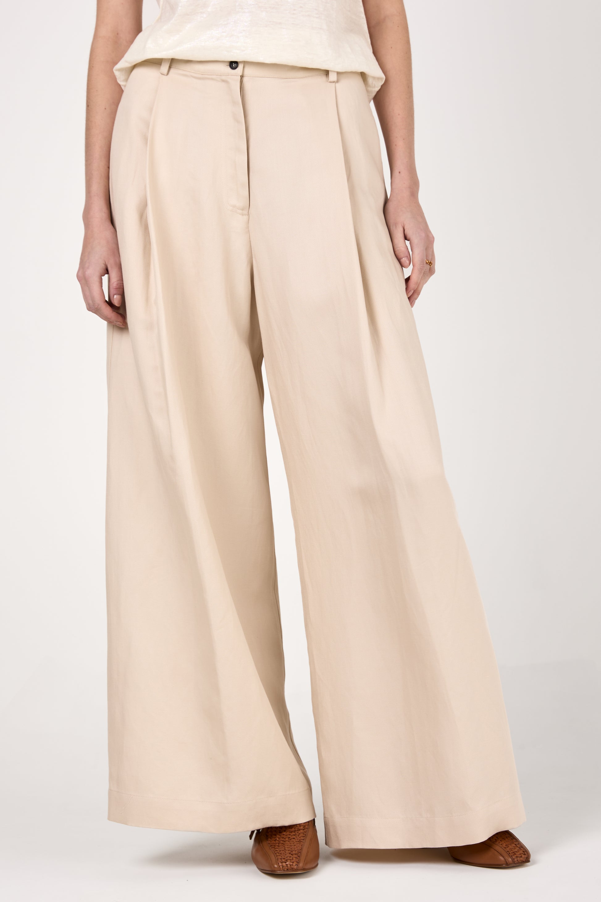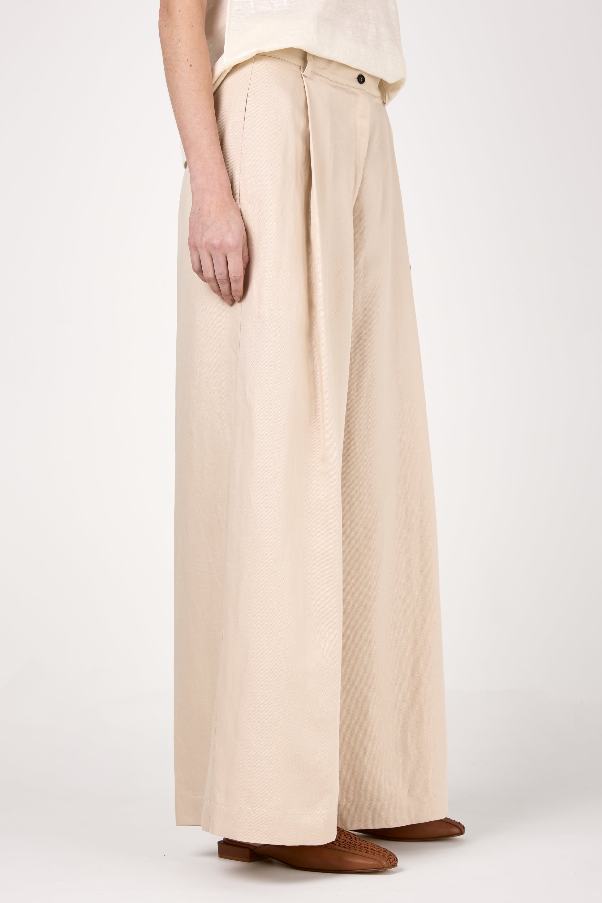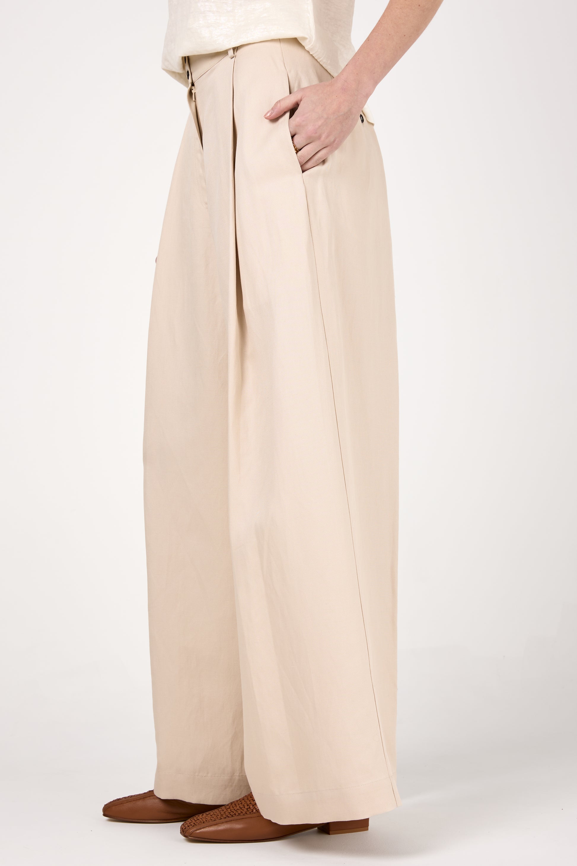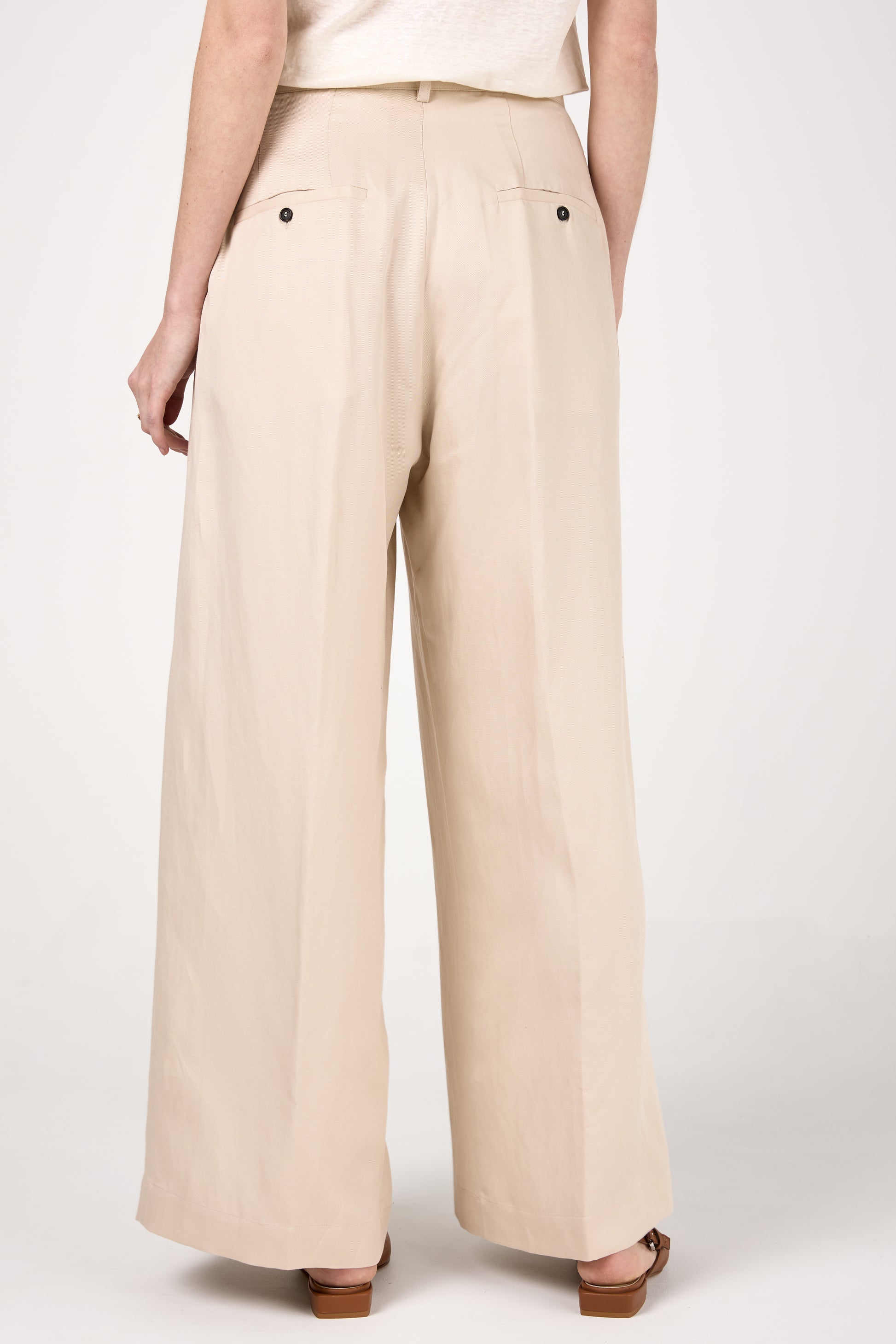 The GENTRYPORTOFINO Linen Wide Leg Pant in Beige, crafted in Italy from a refined blend of linen and tencel, exudes effortless sophistication. The fluid, wide leg silhouette enhances movement, while the high-waisted design with pleated detailing creates a structured yet relaxed fit. Designed with discreet side pockets with a cotton-lined interior, these trousers are a timeless wardrobe essential.Ā