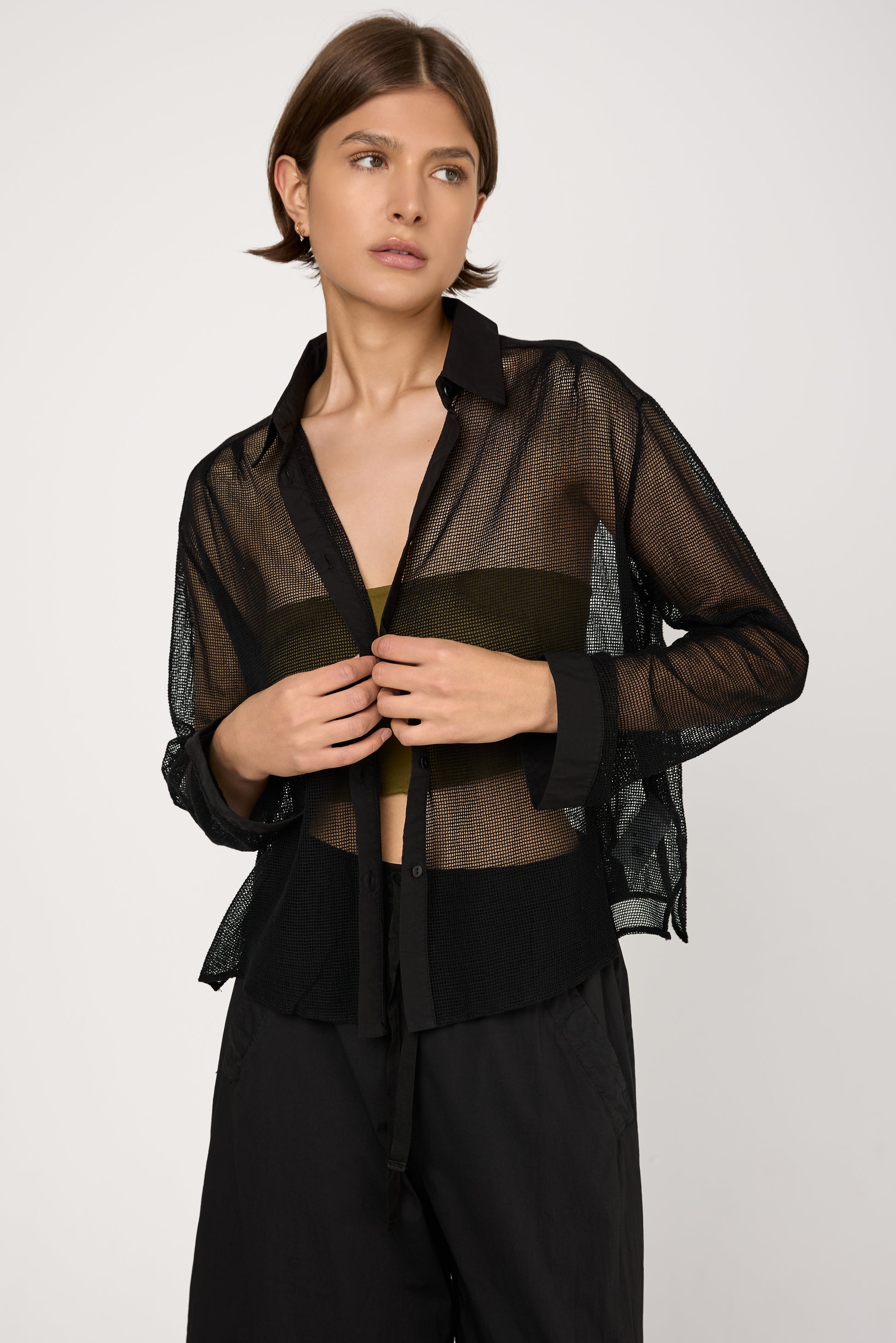 TANDEM Long Sleeve Shirt in Black. Made in Italy.