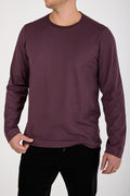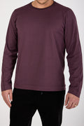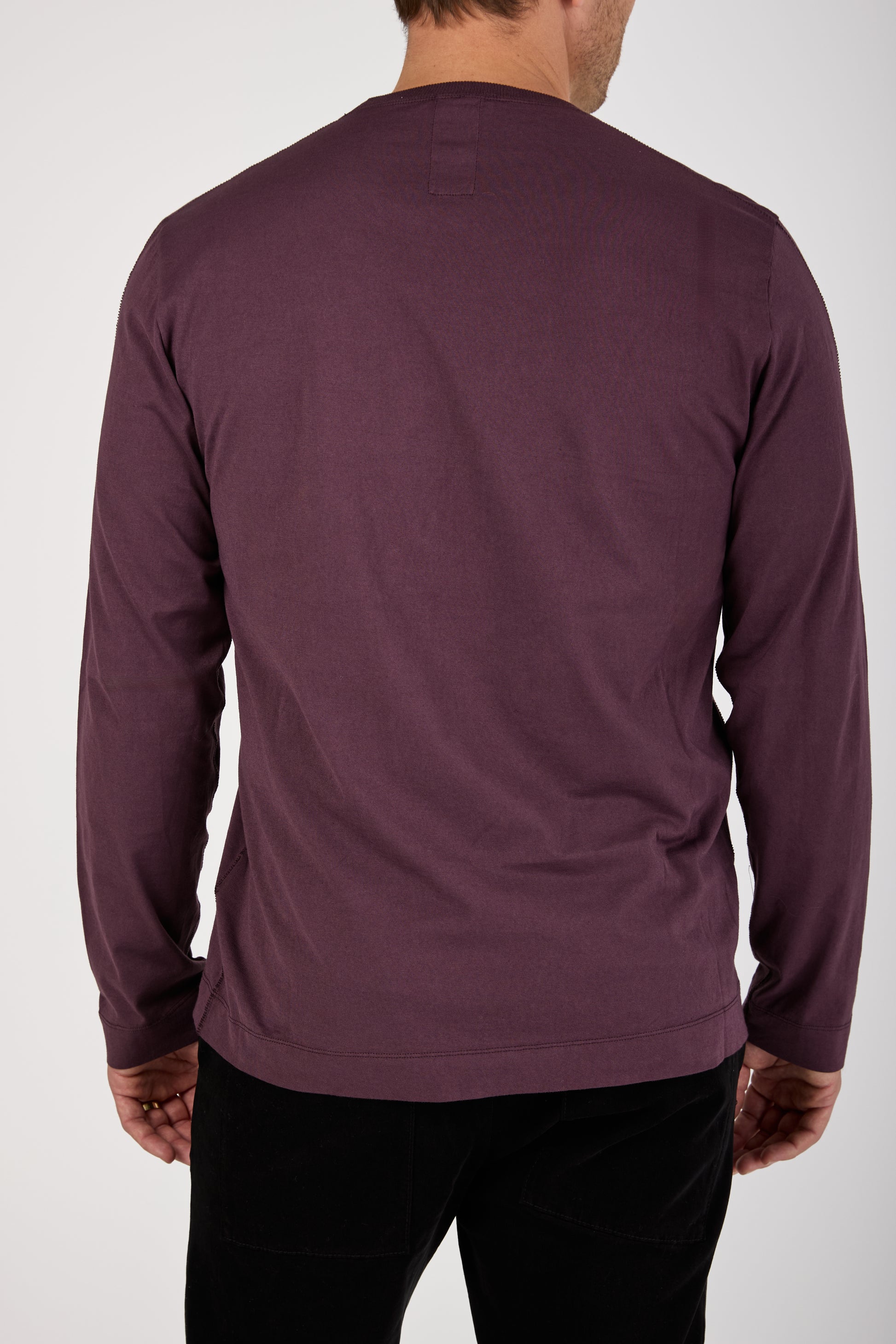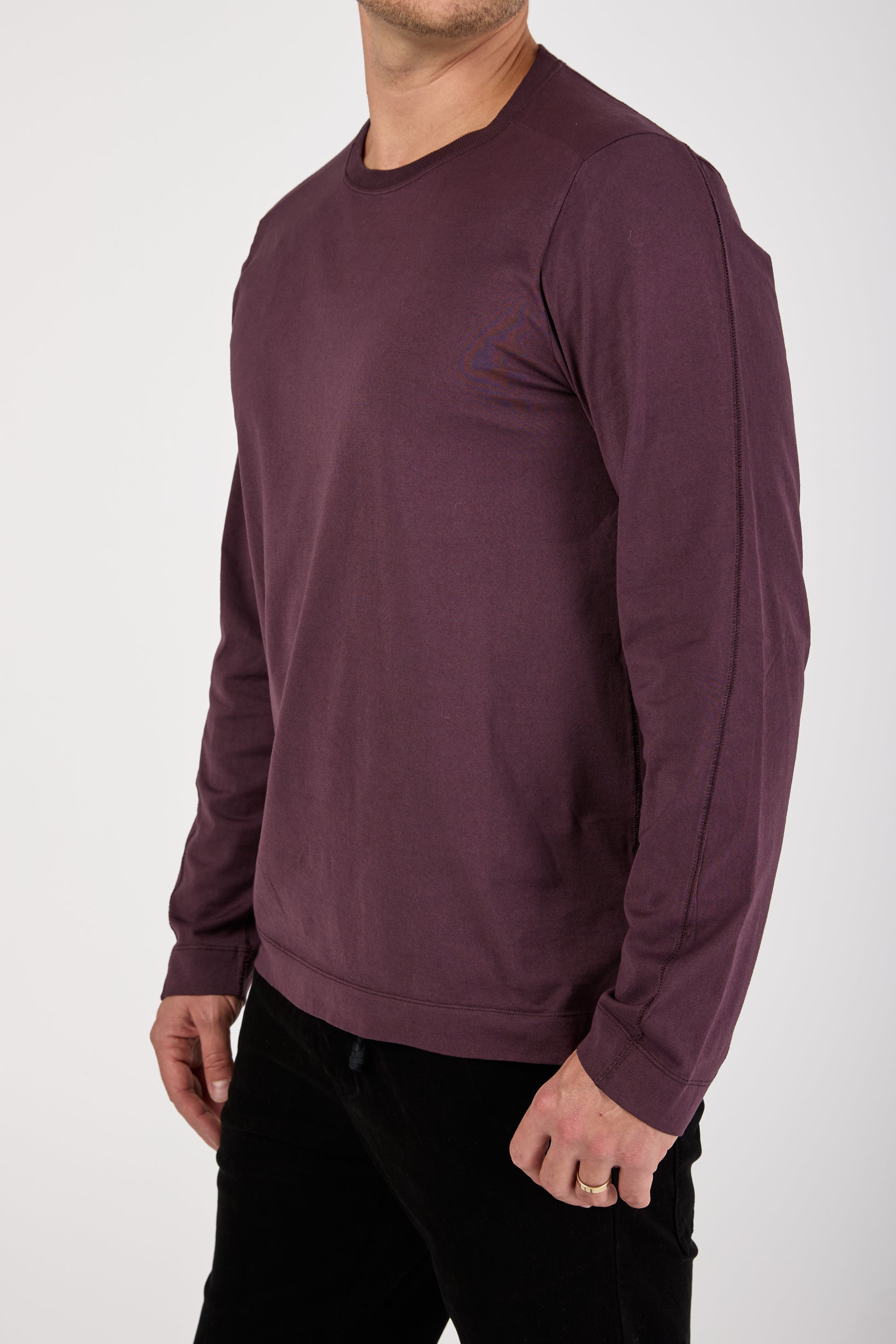 TRANSIT Long Sleeve Crewneck Shirt in Burgundy. Classic cotton shirt with rib-knit neckline and special stitching details on the sleeves and sides.
