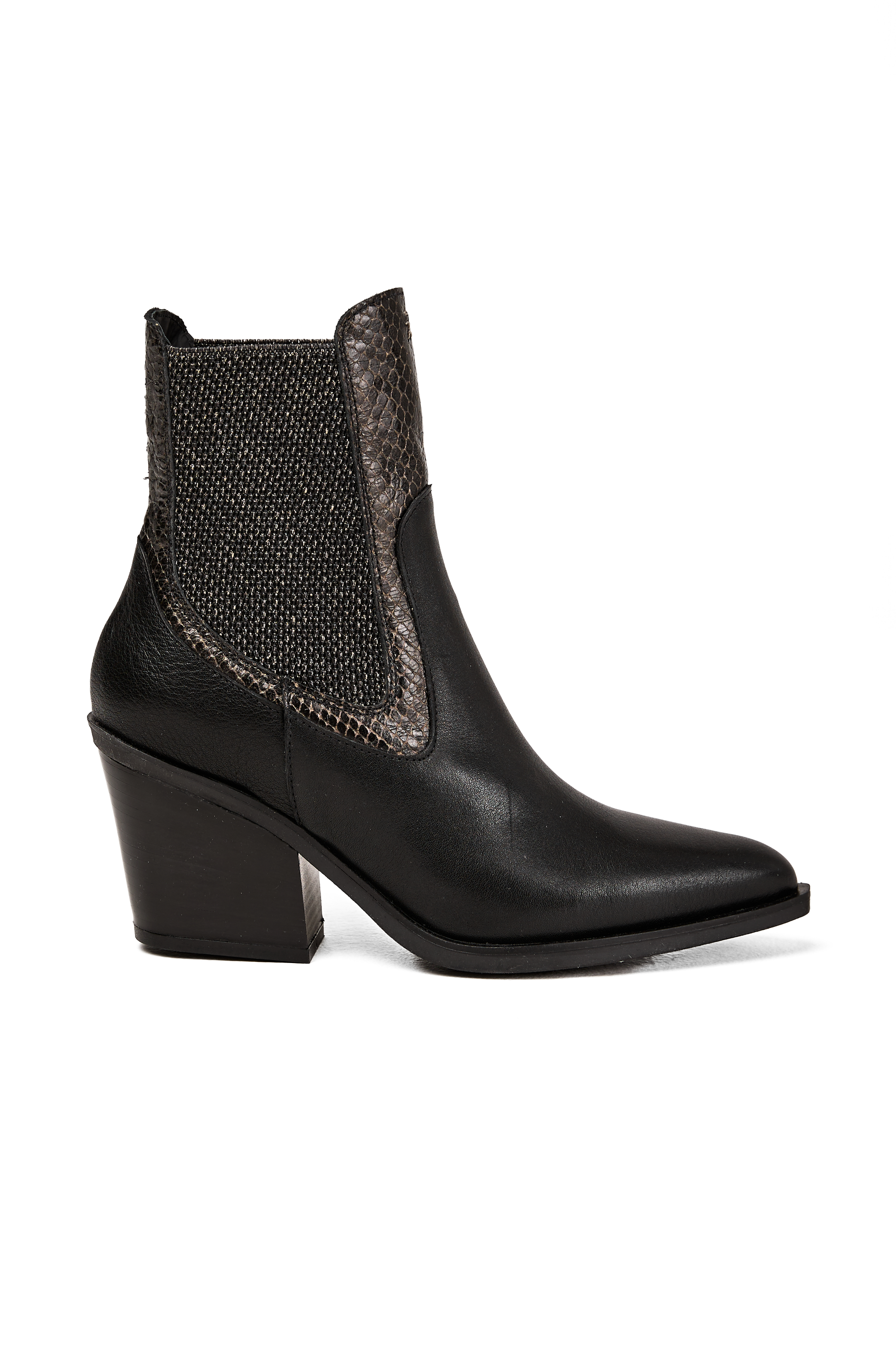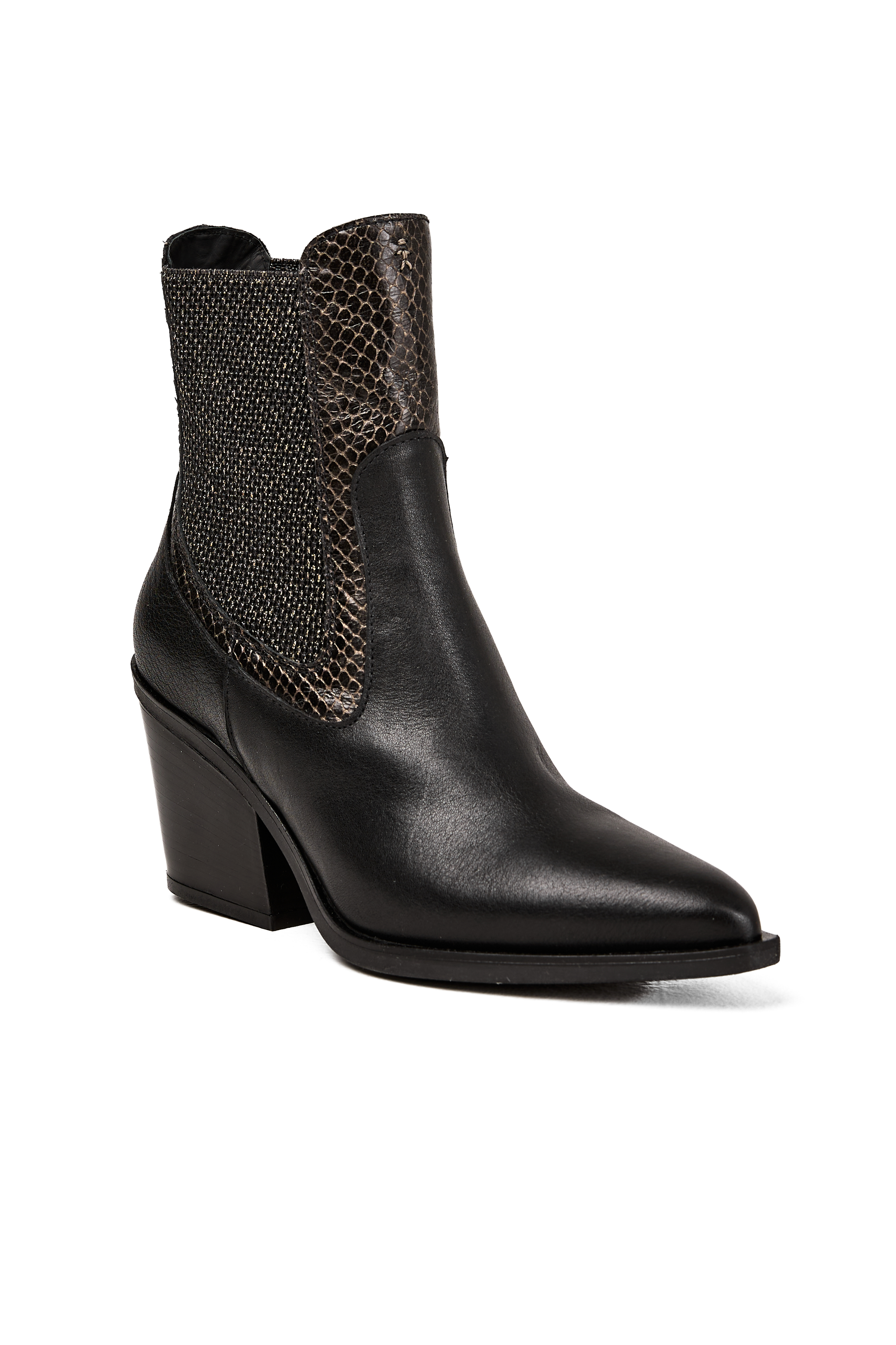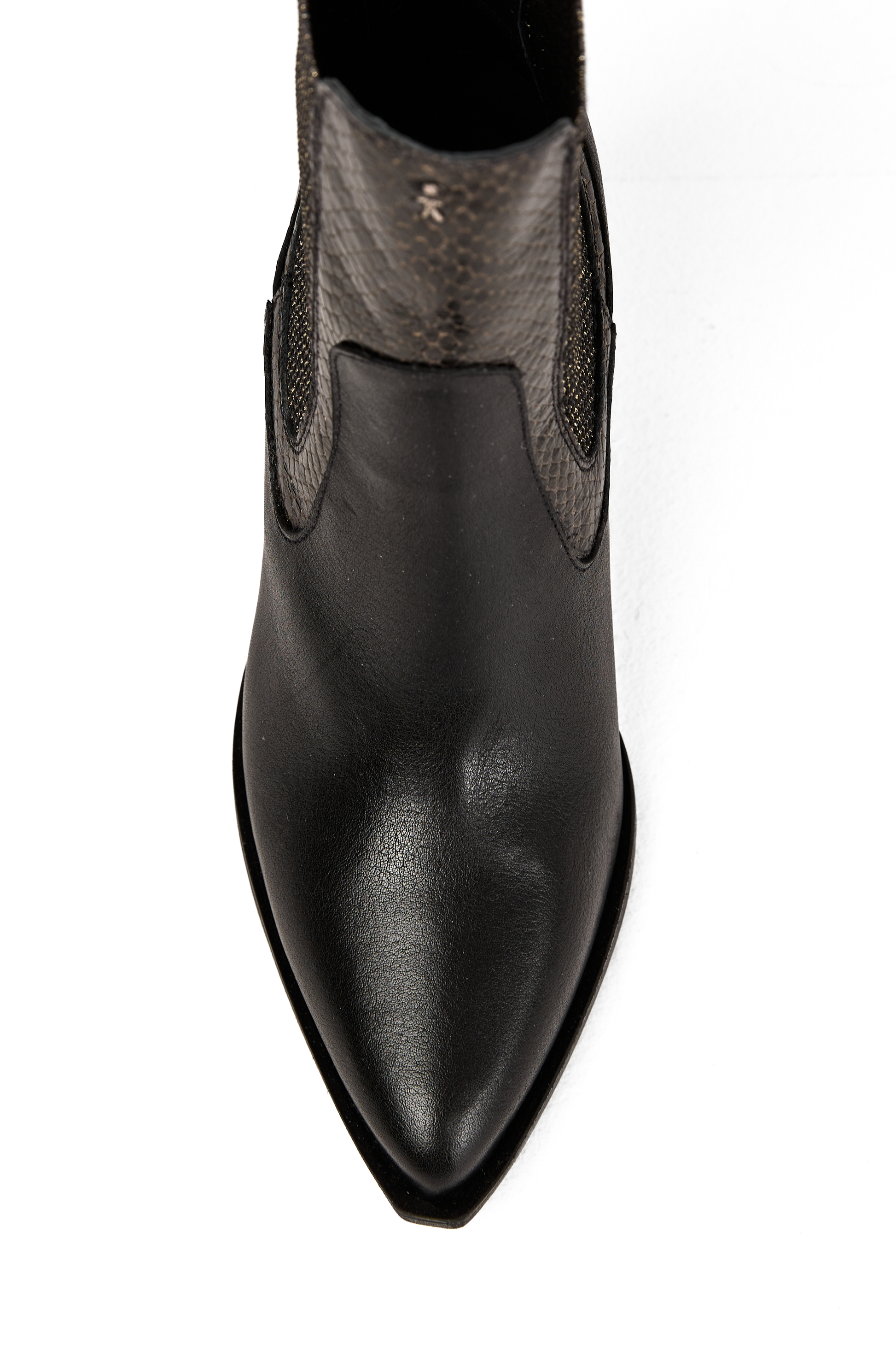 HENRY BEGUELIN Messico Leather Boot in Vipera Nero. Hand Made in Italy.