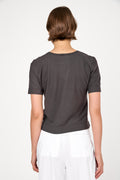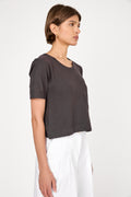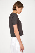PRIVATE 0204 Mini Cotton Crepe T-Shirt in Mud. Cropped silhouette. Made in Italy.