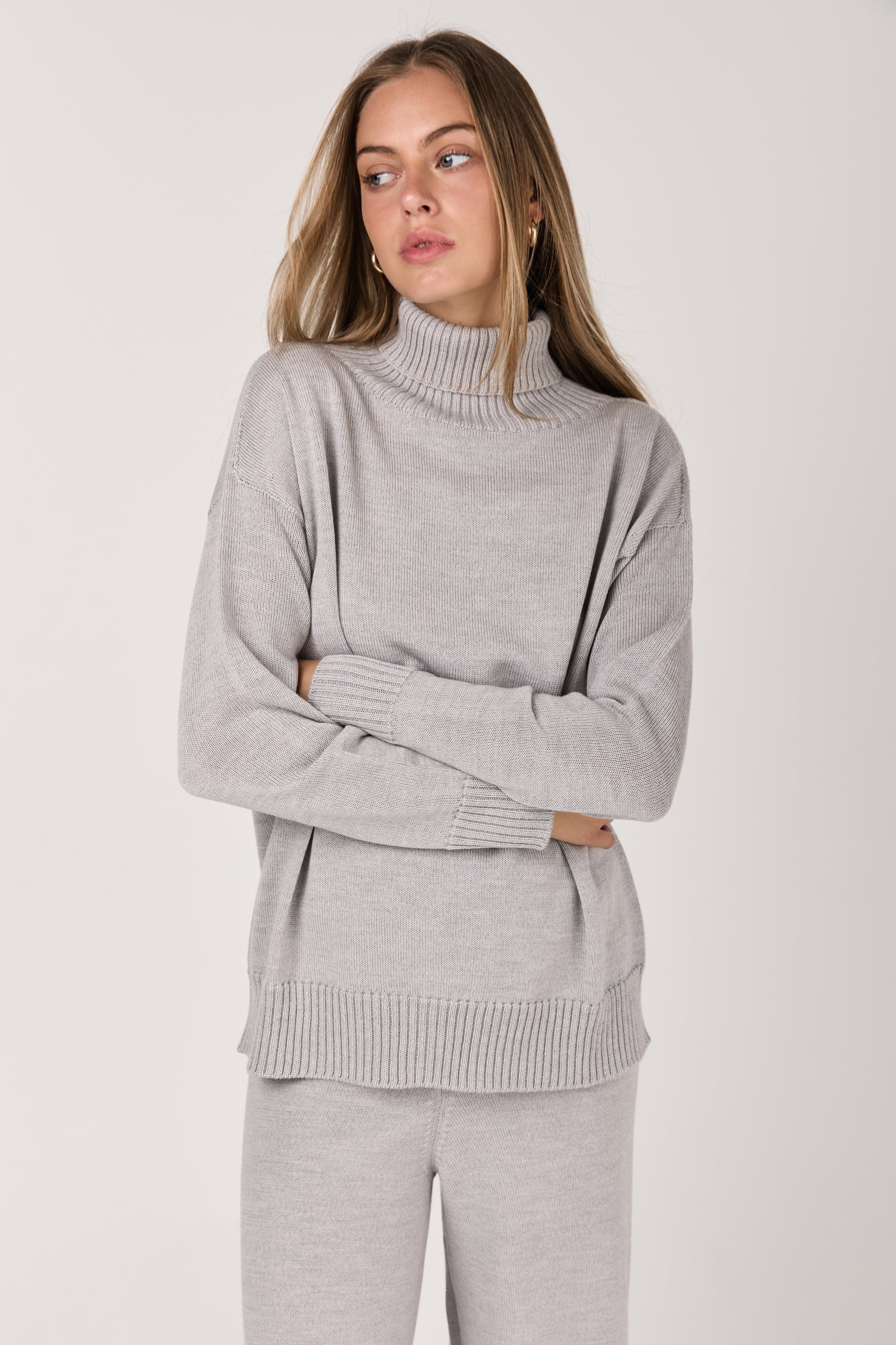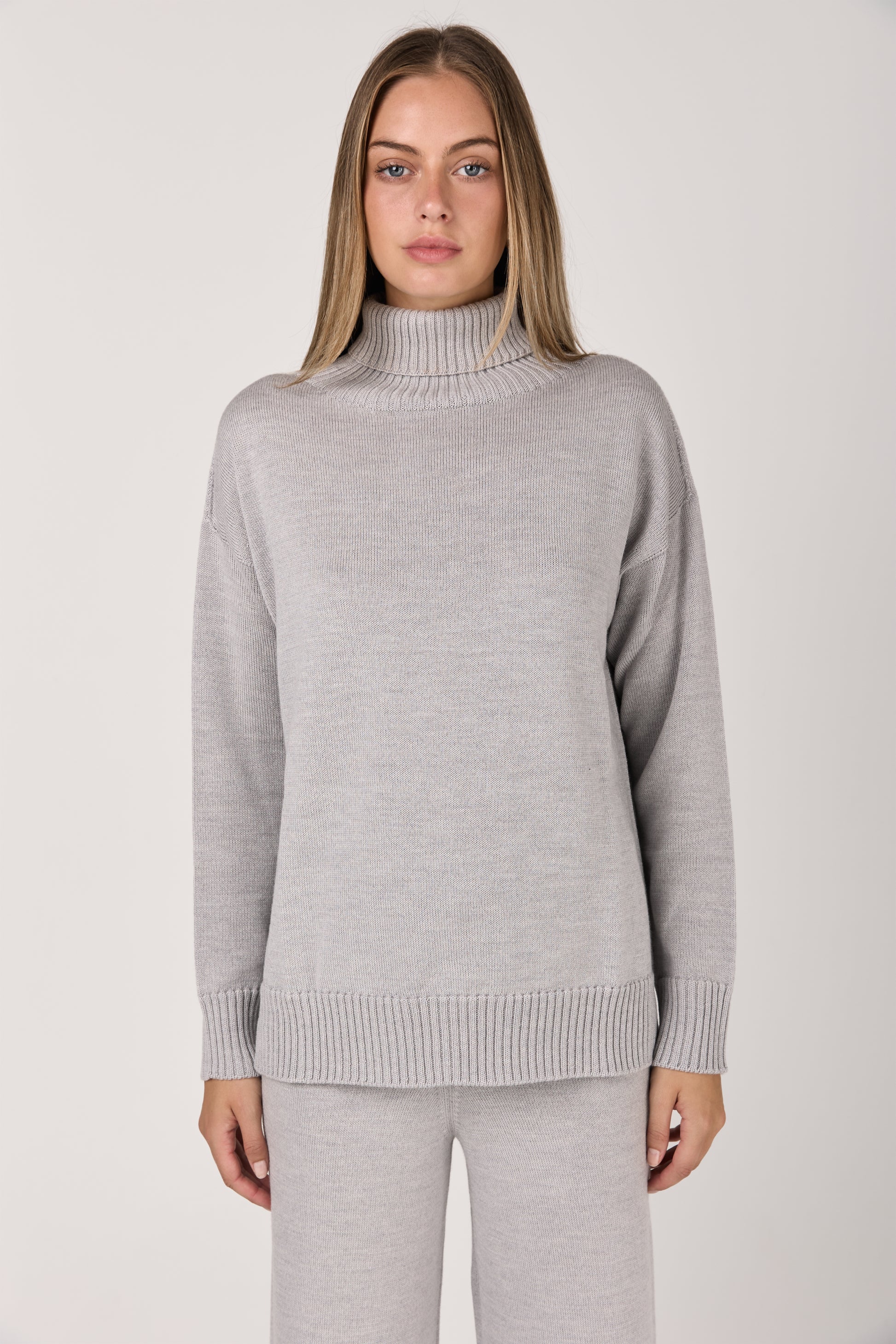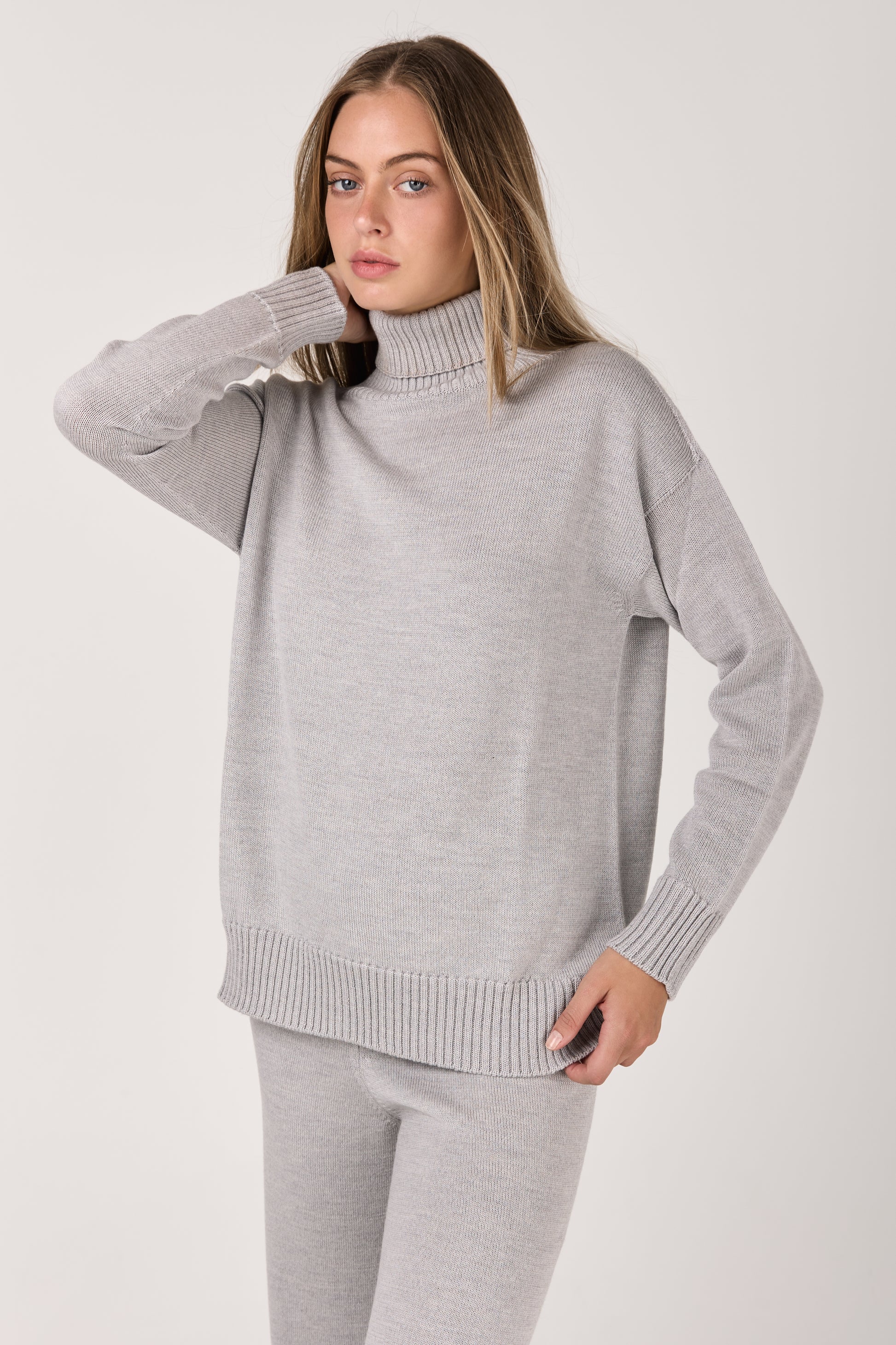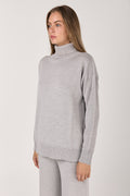 The MAX MARA Mino Wool Sweater in Light Grey is crafted in 100% virgin wool, woven with the finest Filato Pura Lana 2/30 yarn for lightweight yet luxurious finish. Designed with a refined high neckline and elegantly draped shoulders, it offers a modern take on classic knitwear. Subtle contrasting cuffs add an elevated touch of distinction to the clean silhouette.