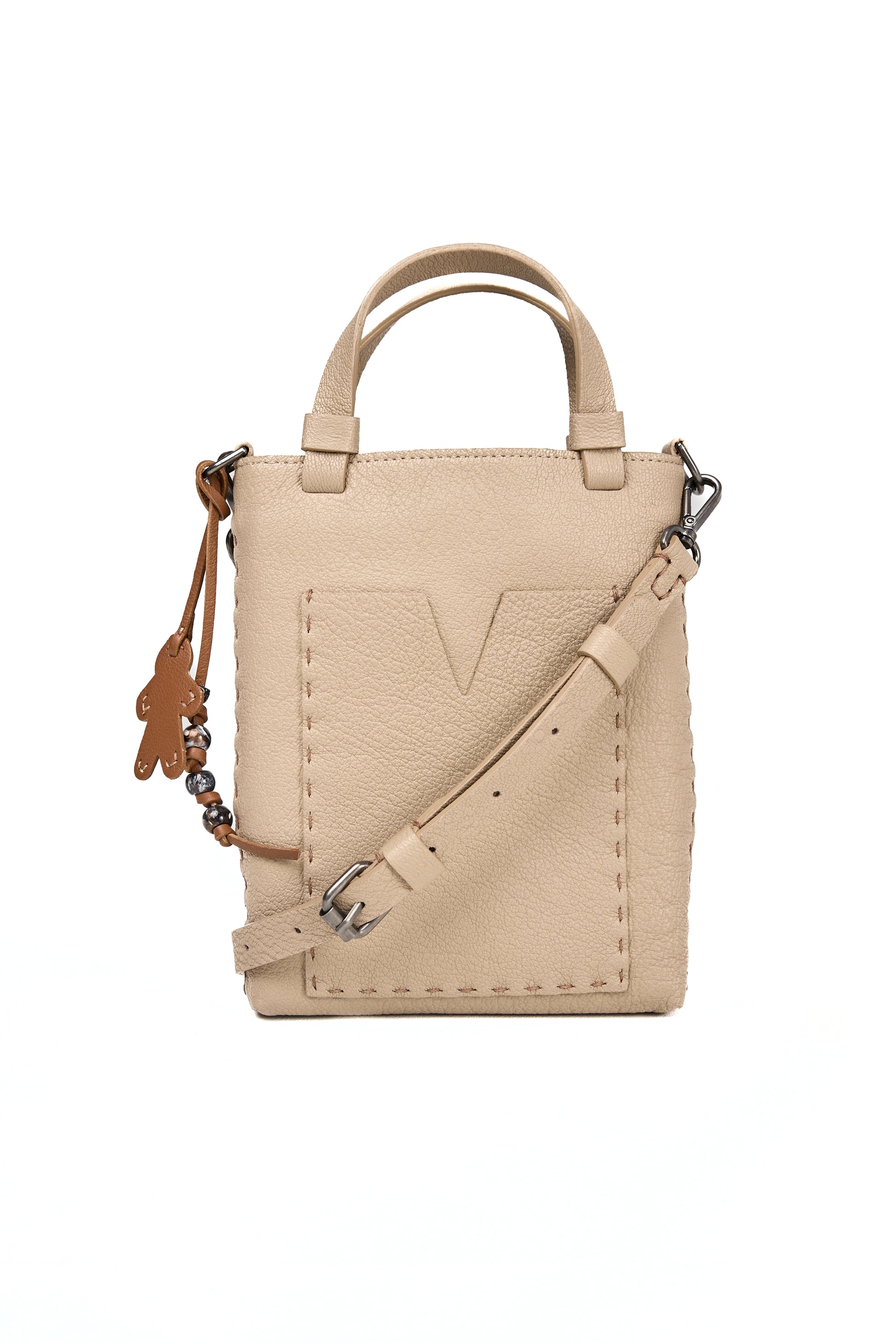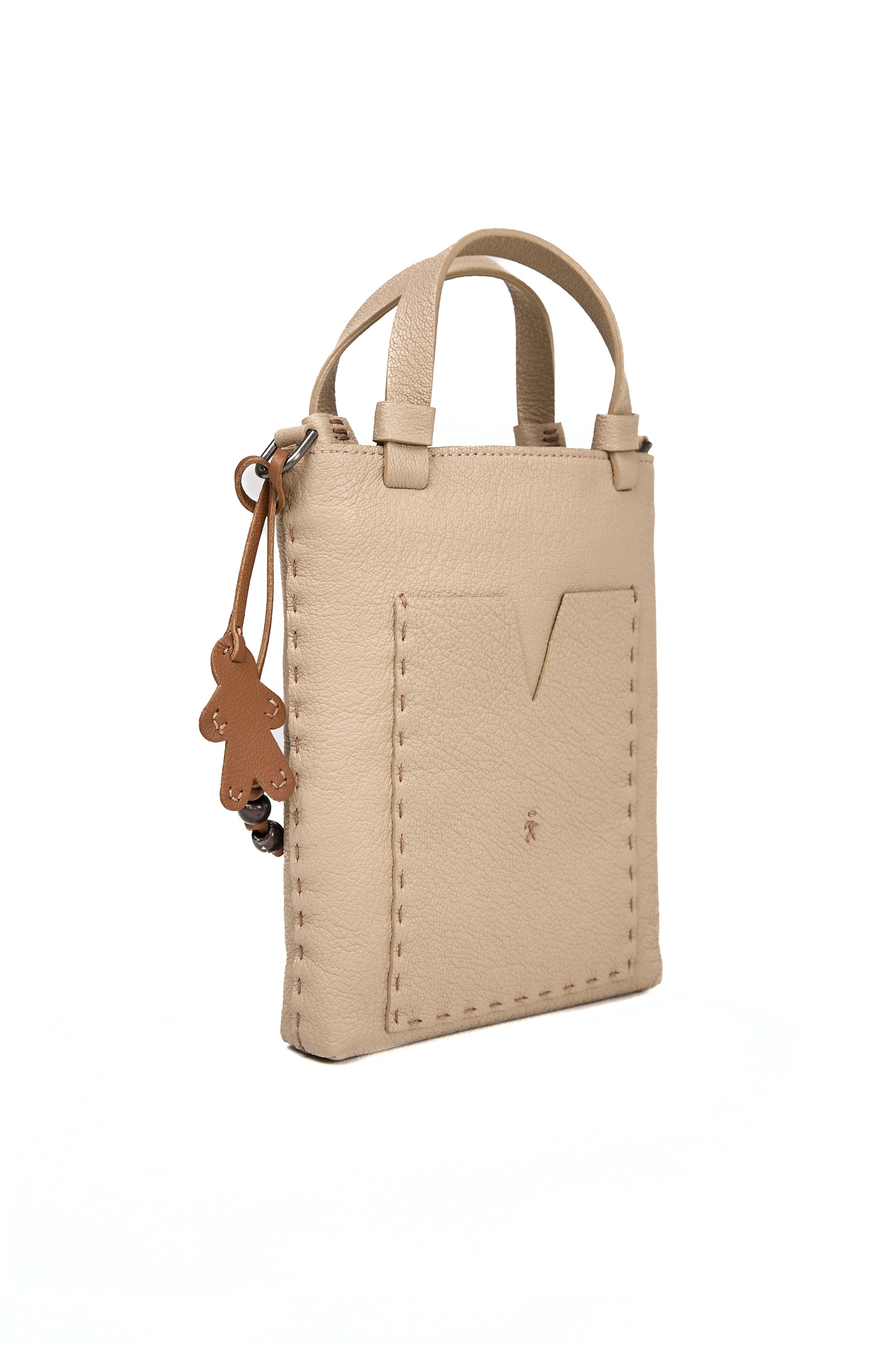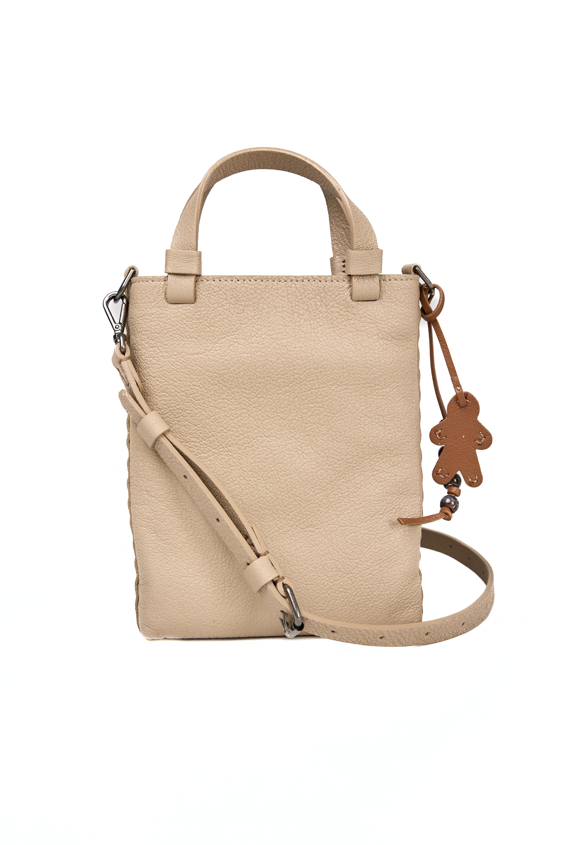 The HENRY BEGUELIN New Aura Bag in Martellato Sabbia, crafted in Italy from high-quality calfskin leather, combines timeless elegance with modern design. Its compact shape, top handle and detachable and adjustable shoulder strap offer both style and functionality.Ā