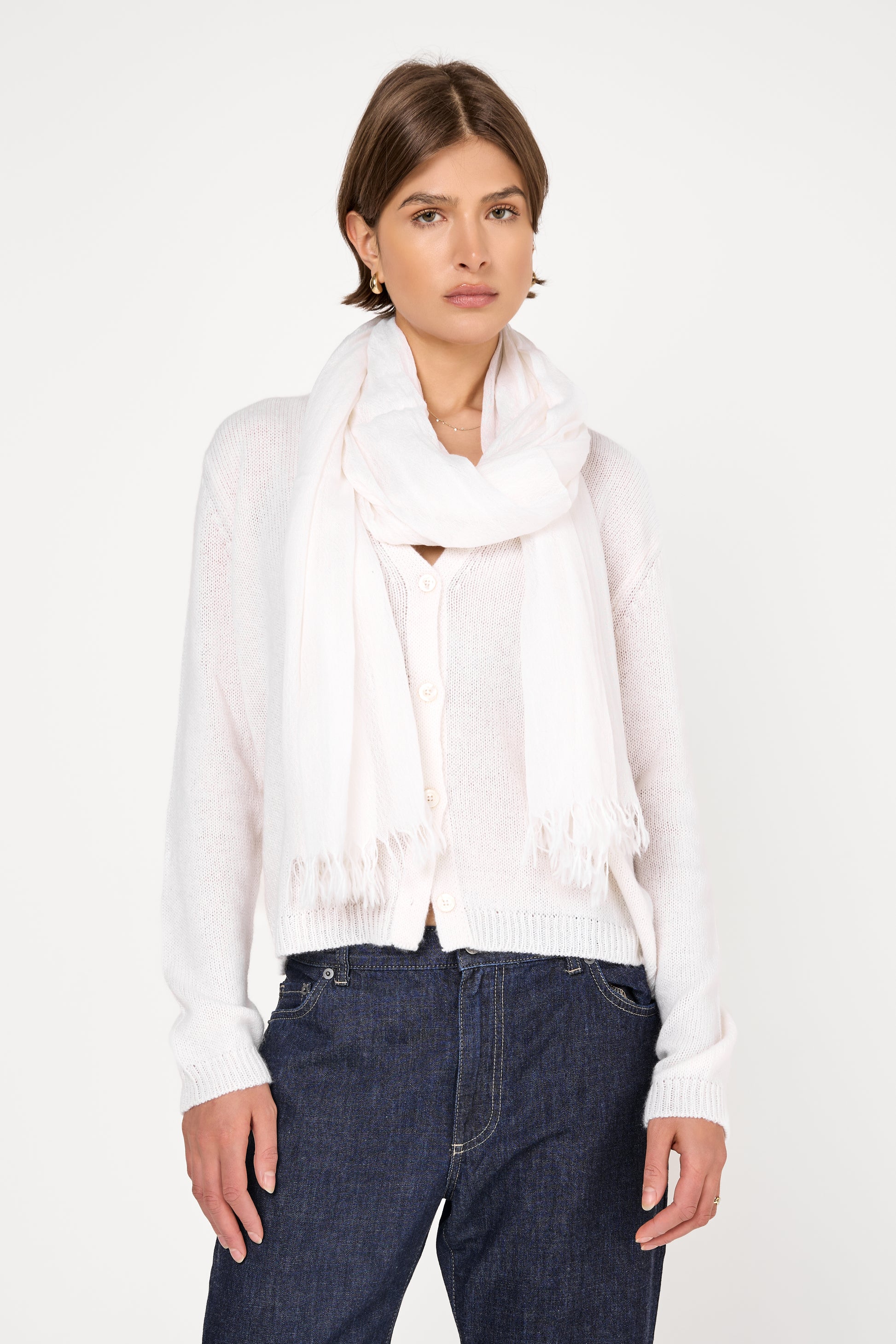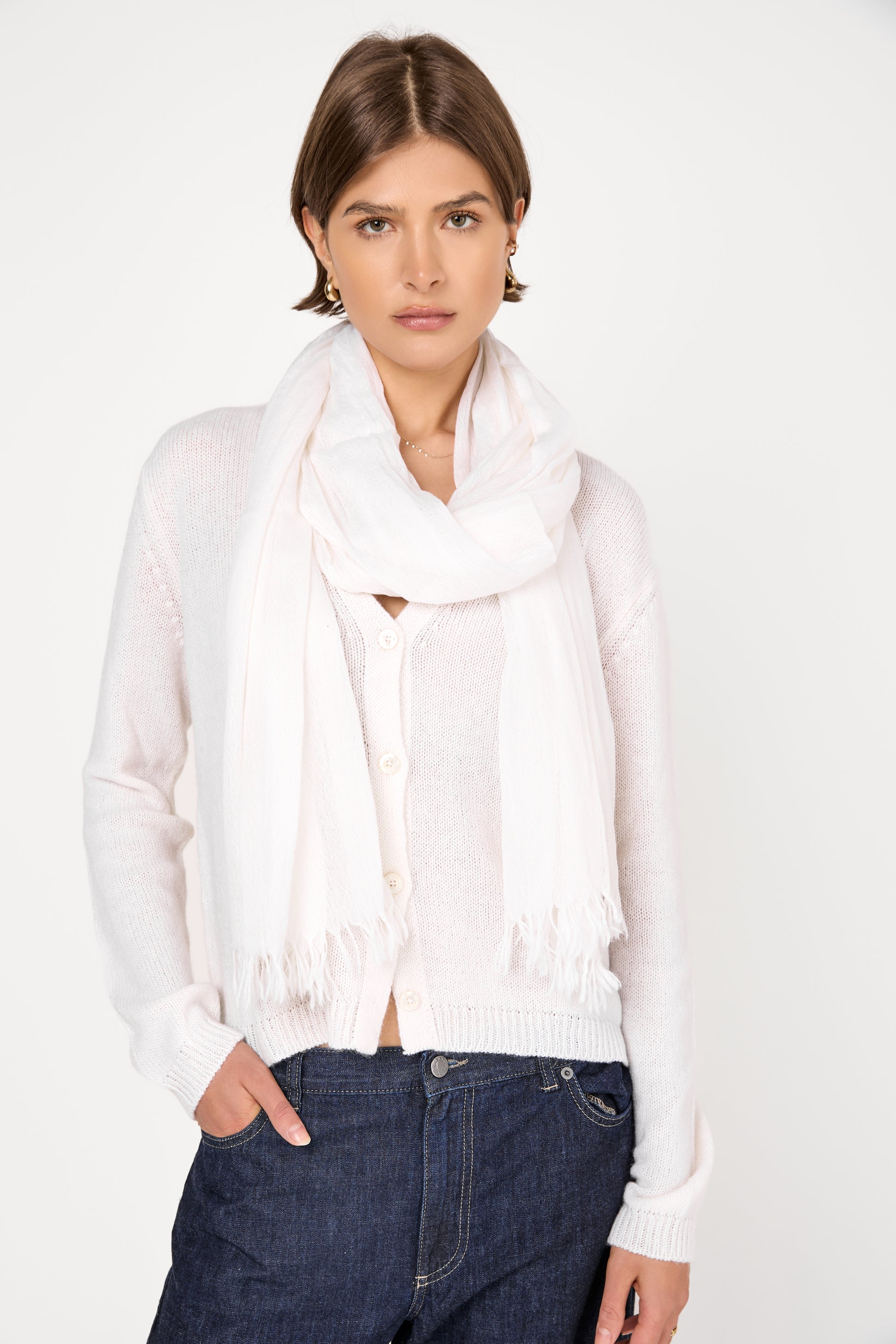 PRIVATE 0204 New Open Net Cashmere Scarf in White. 180cm x 60cm. Made in Italy.
