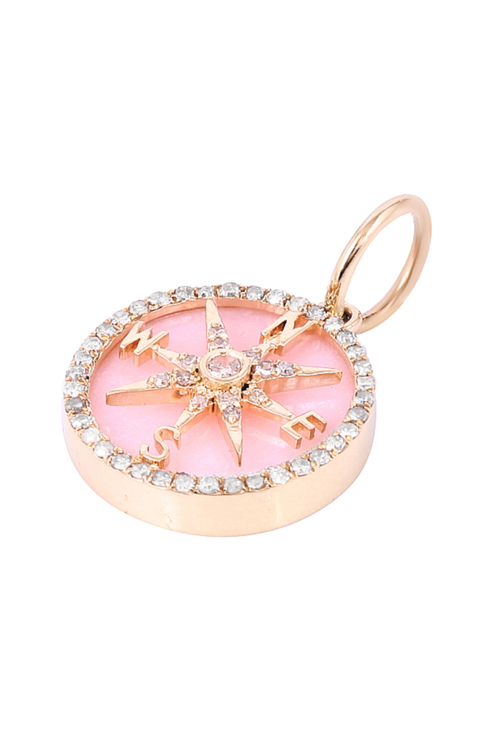 Pink Enamel Diamond Compass in 14k Gold