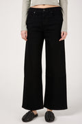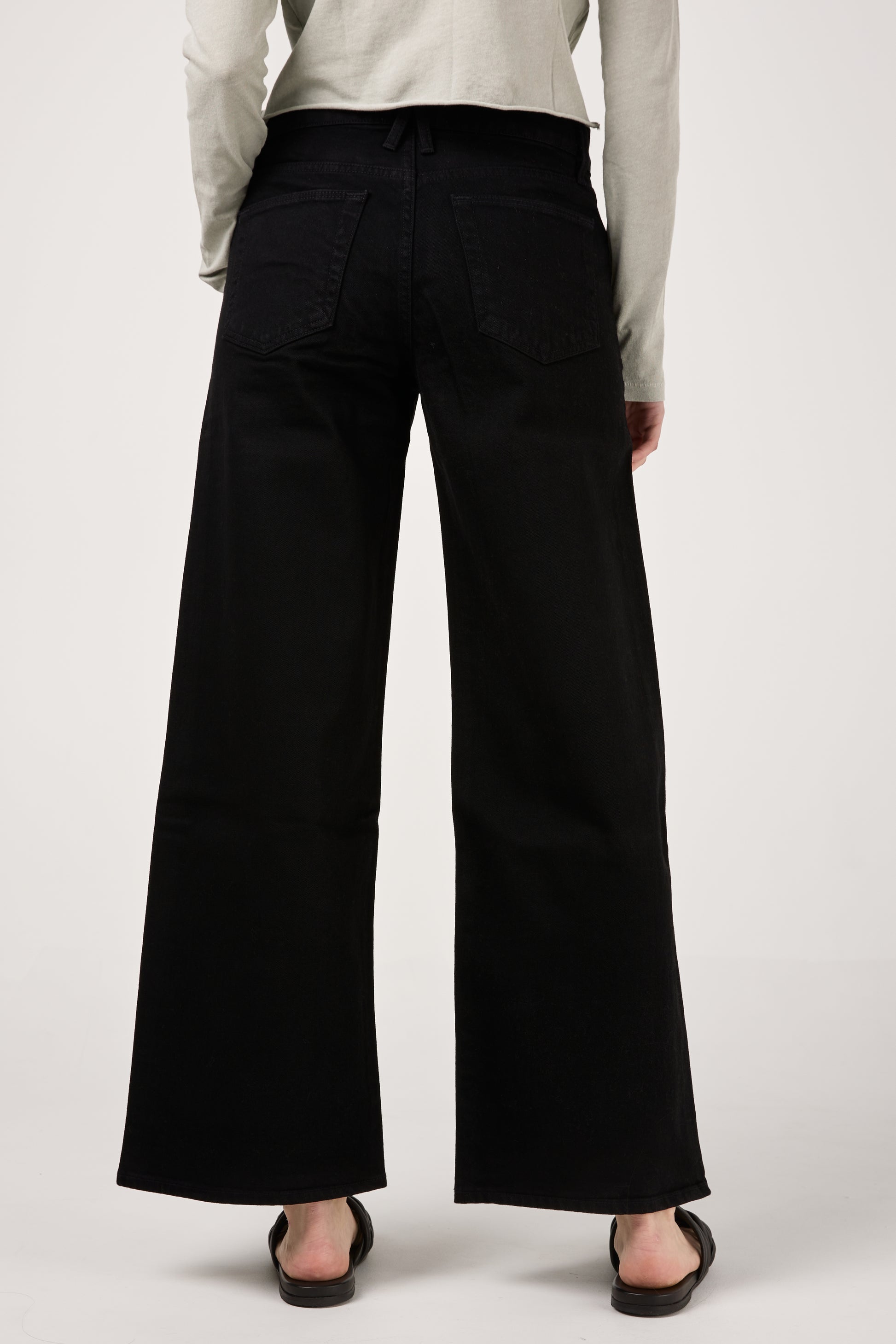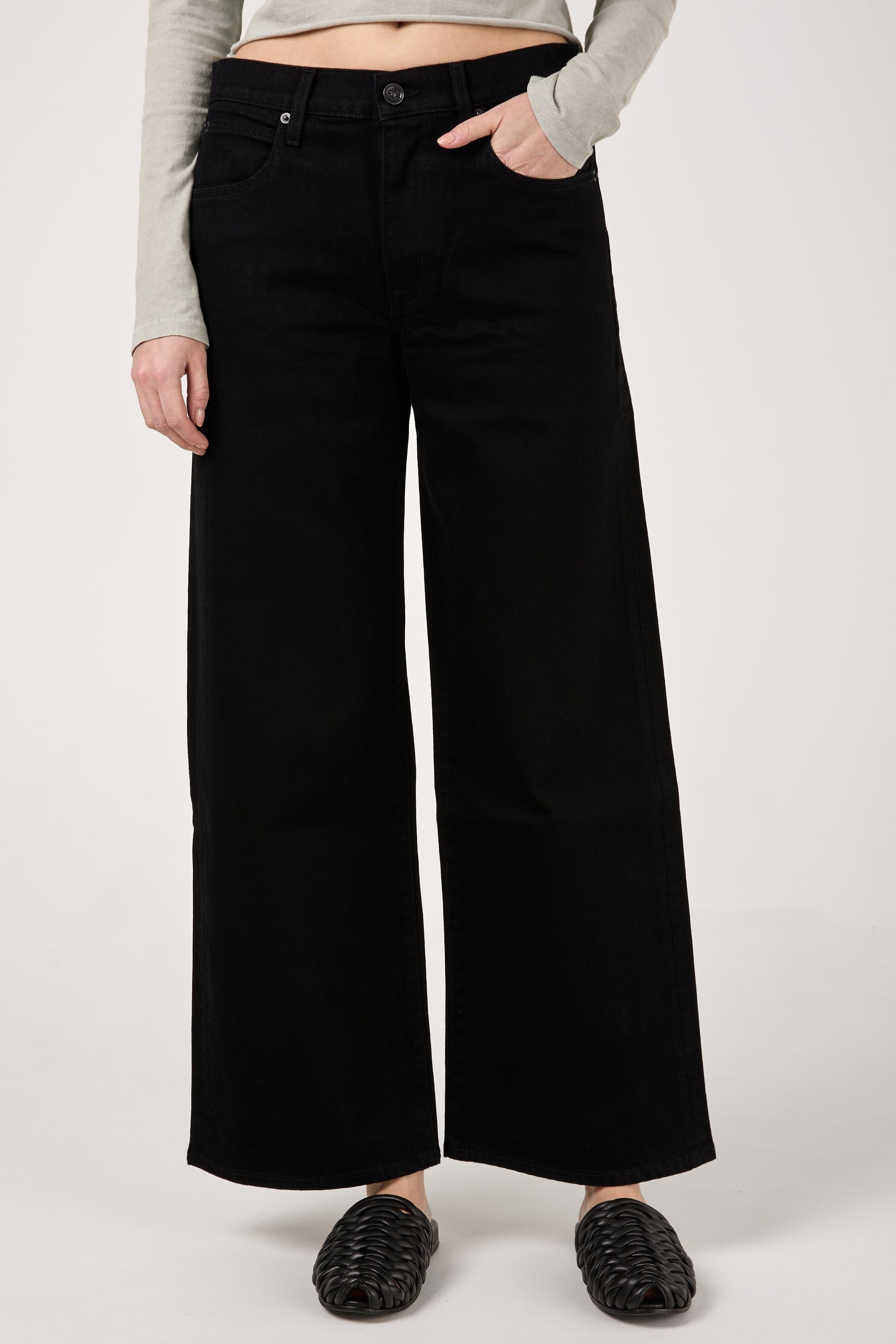 SLVRLAKE Selena Wide Leg Jean in Jet Black. Crafted in L.A. from premium cotton, these jet black jeans offer a timeless look with a relaxed, mid-rise fit and wide-leg silhouette.