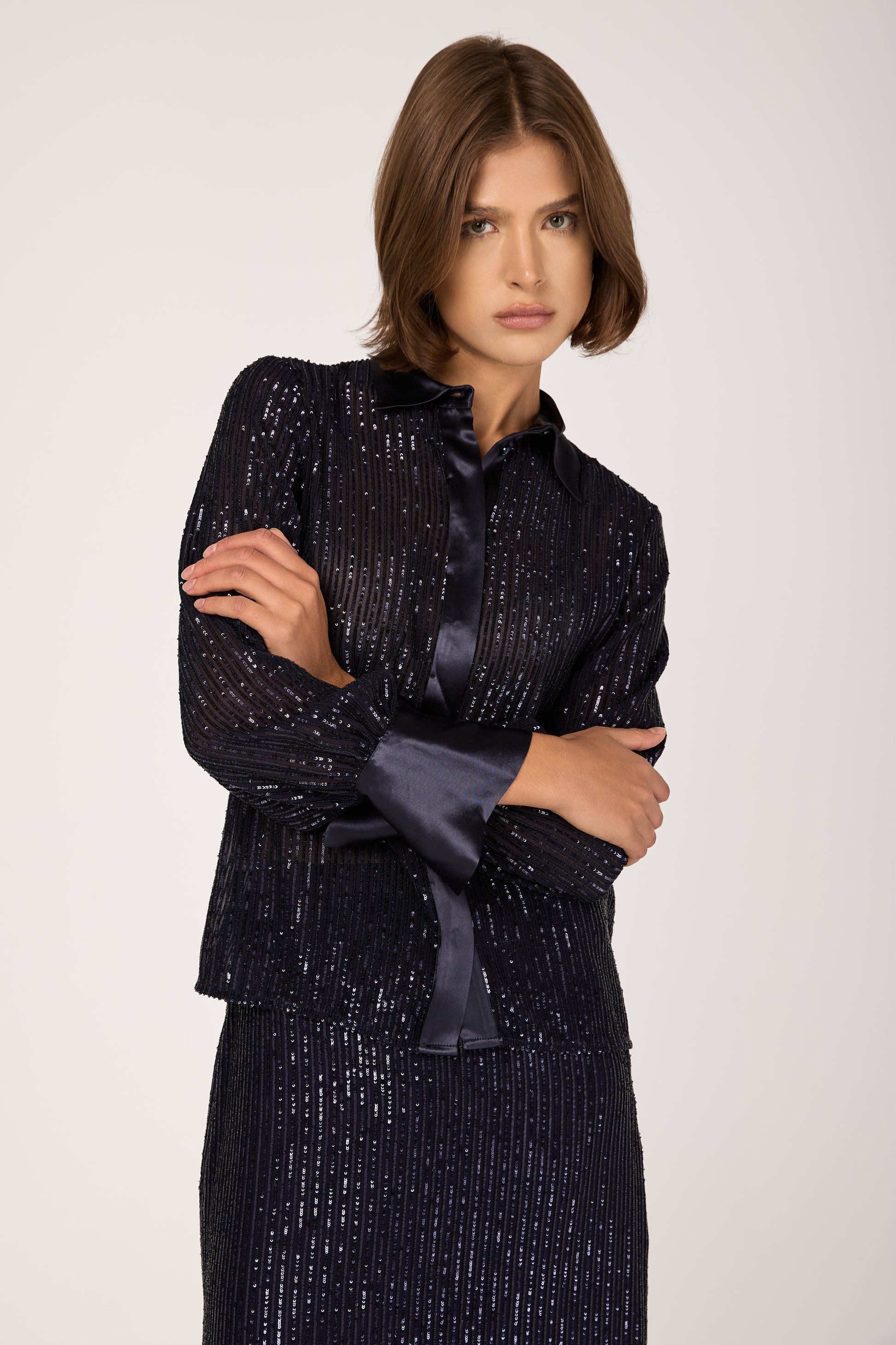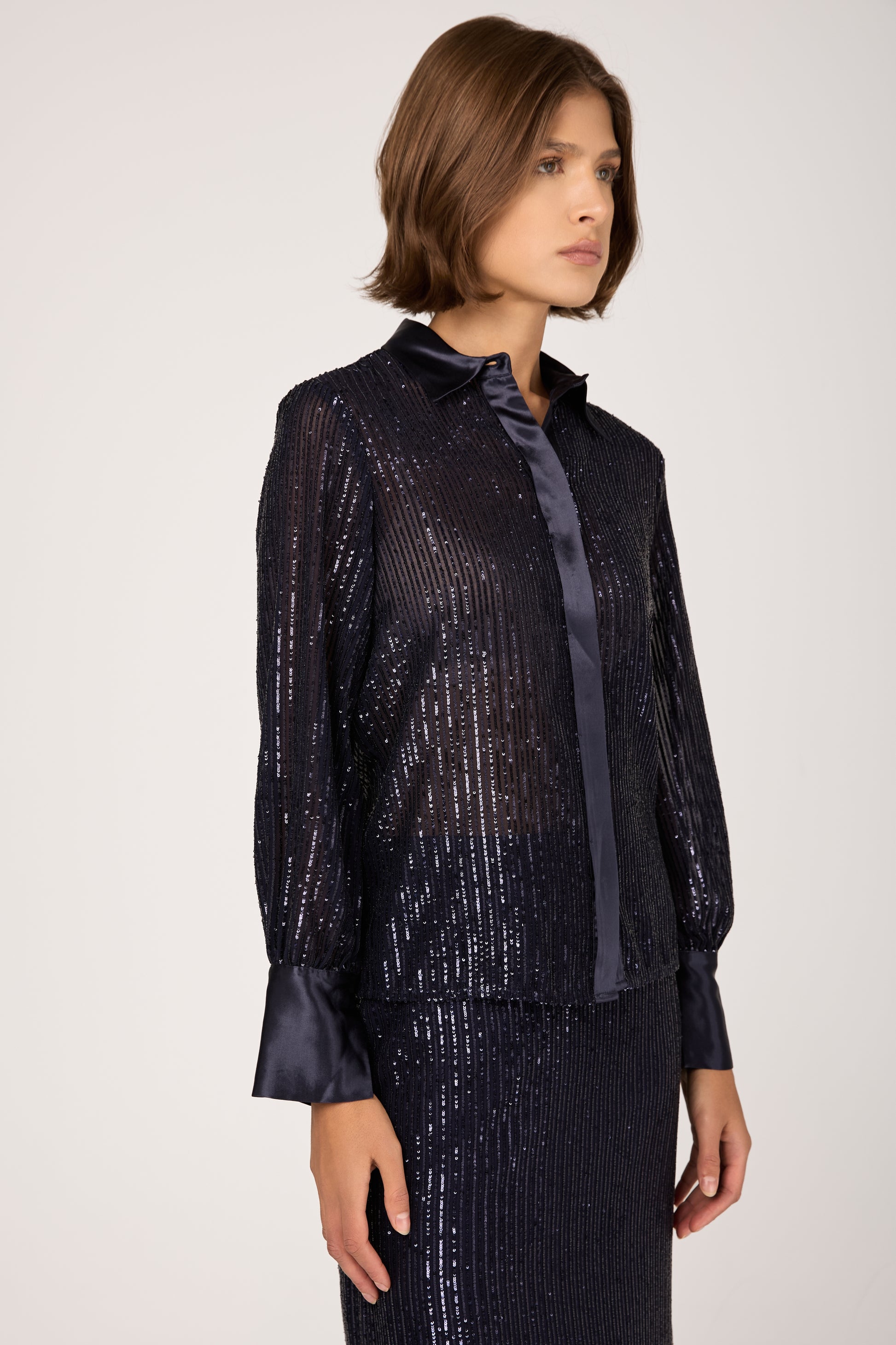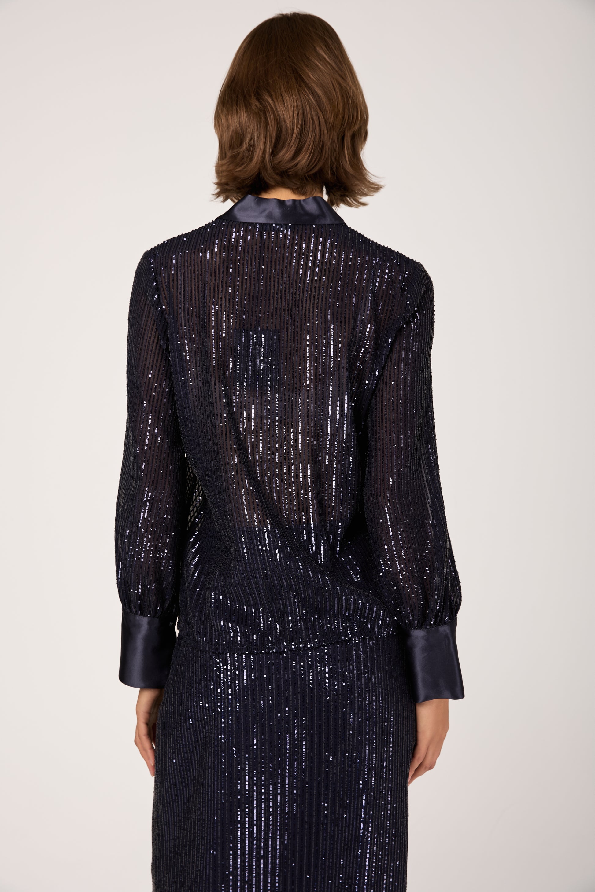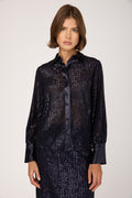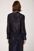 Sequinned Pinstripe Shirt in Blue Starry Sky