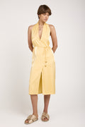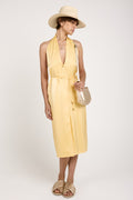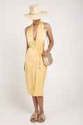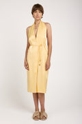 The AERON Seraphine Midi Dress in Ananas offers a fluid, satin viscose design with a belted waist for a flattering silhouette. Perfect for any occasion, its elegant drape and timeless style make it a standout piece in any wardrobe.