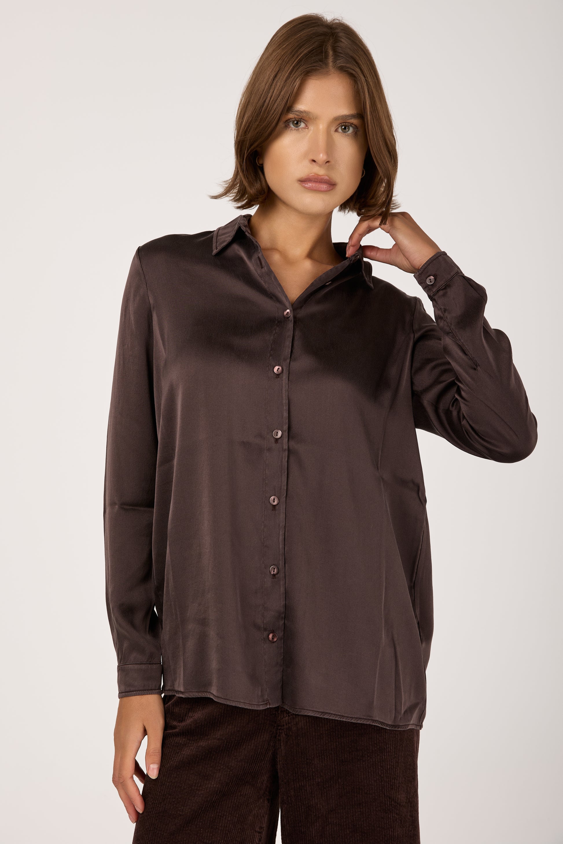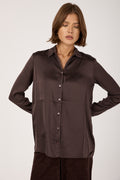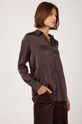 Silk Satin Shirt in Merlot