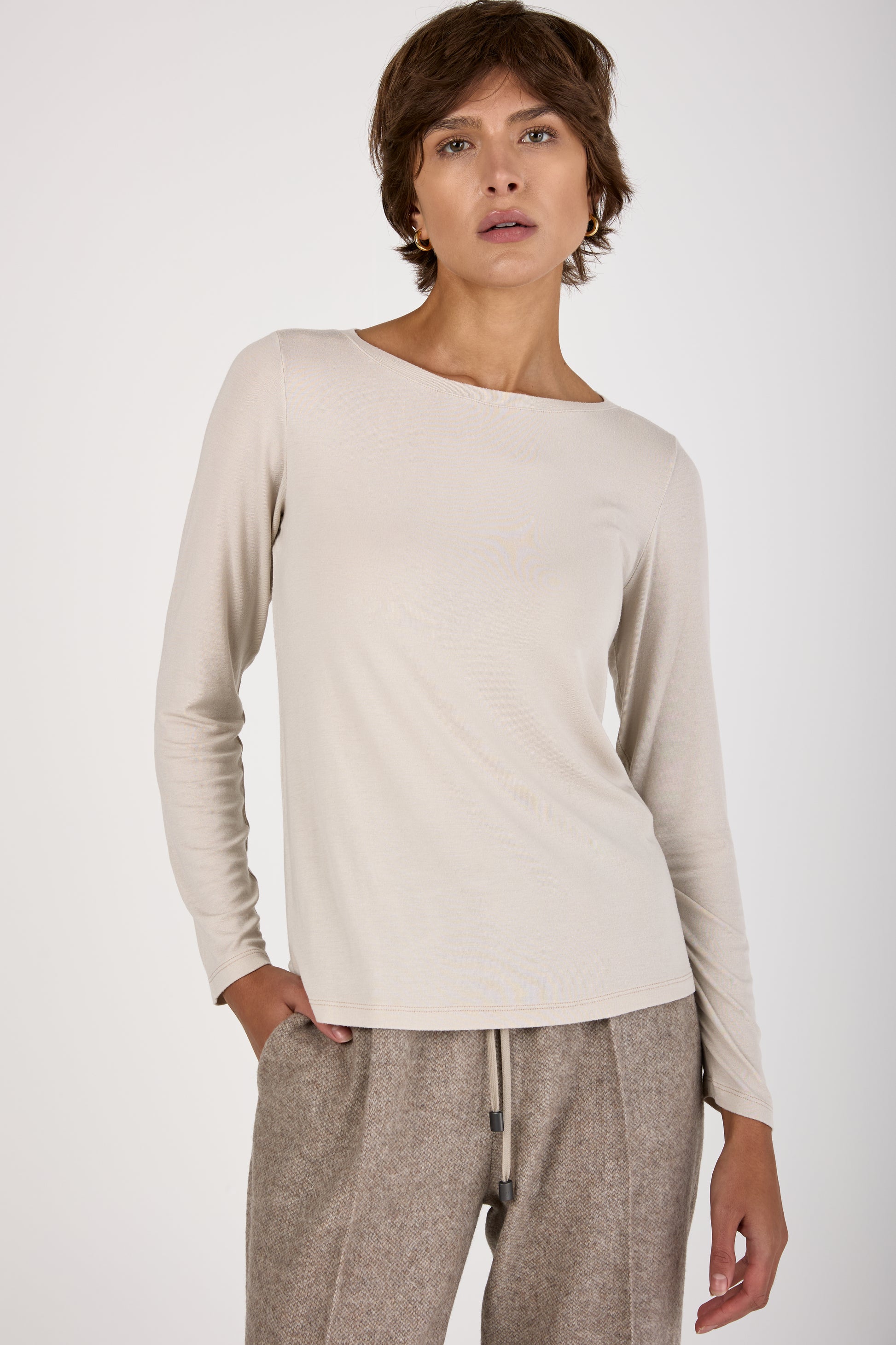 The TRANSIT Slim Fit Long-Sleeve Shirt in Sand is a sleek, versatile essential. Made in Italy from soft stretch modal fabric, this shirt offers a flattering slim fit with lightweight comfort.