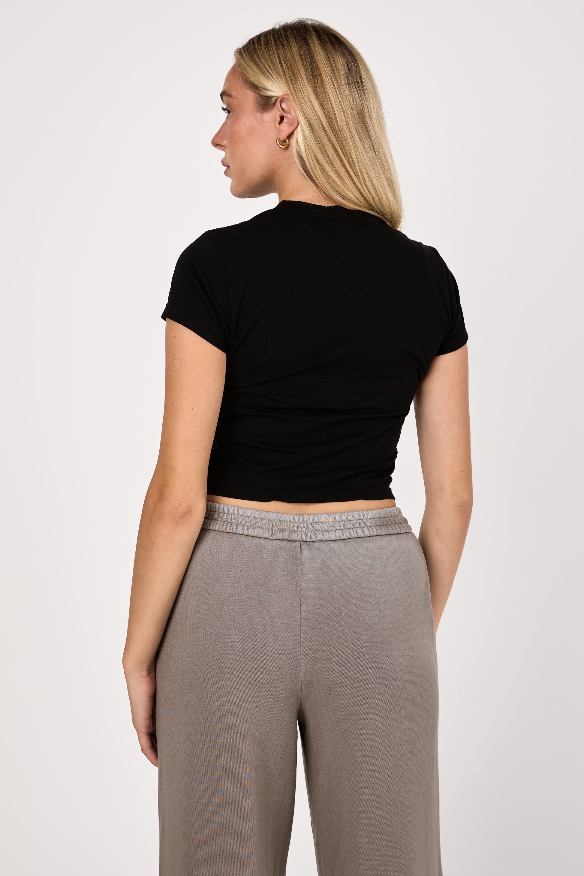 The COTTON CITIZEN Standard Baby Tee in Jet Black is the ultimate in elevated basics. Made from 100% Supima cotton, this soft, figure-hugging tee features a cropped silhouette that hits at the belly button, with a vintage-inspired wide crewneck and clean hems. Perfect for layering or wearing solo, it’s a versatile, modern staple. Shop now at T. Boutique.