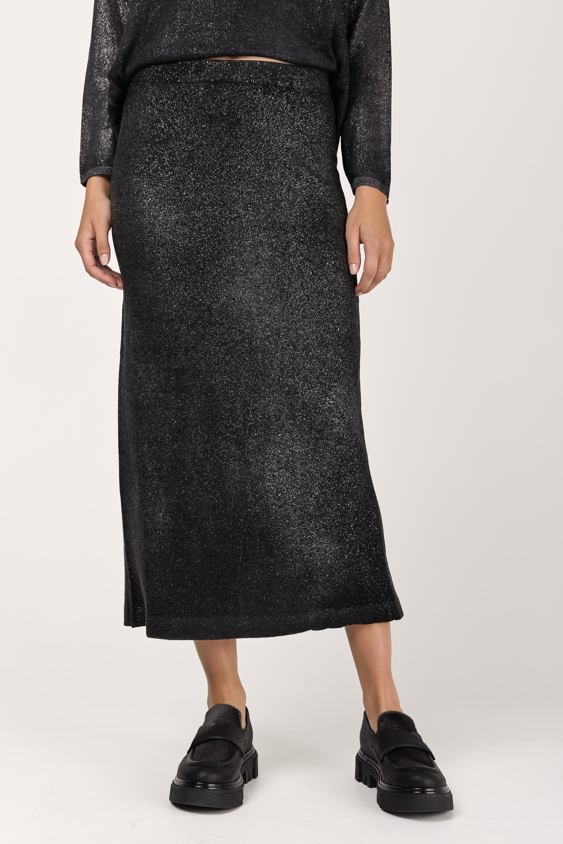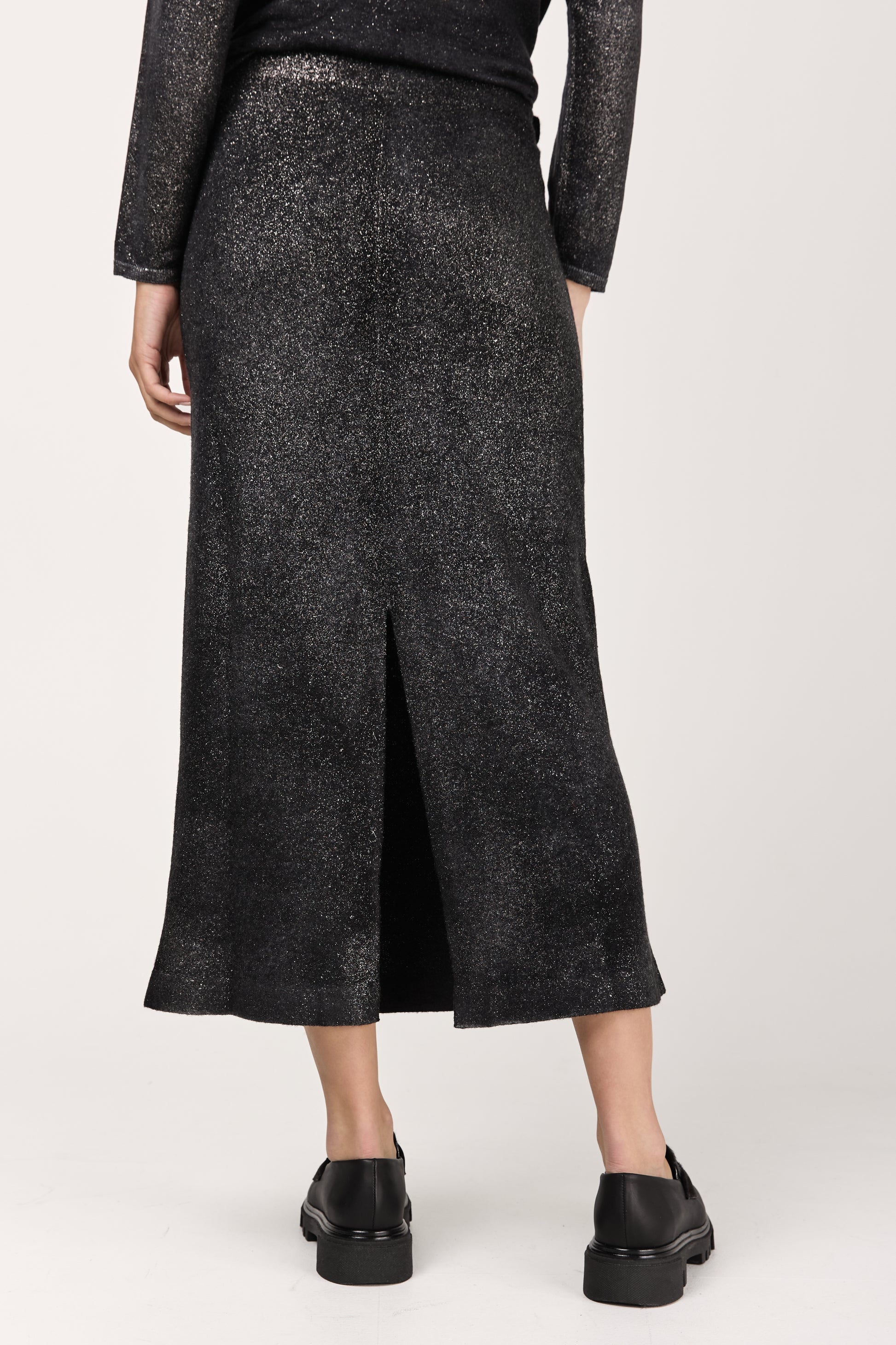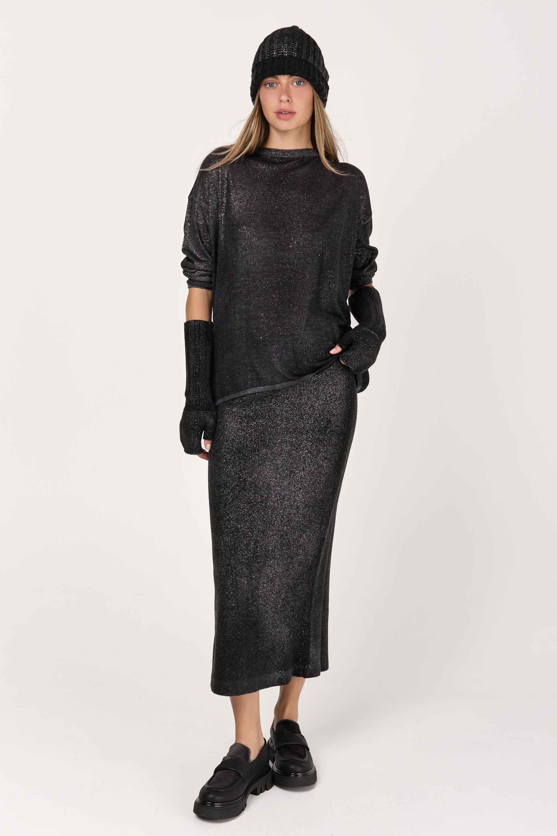 Star Dust Effect Ultralight Cashmere Skirt in Nero