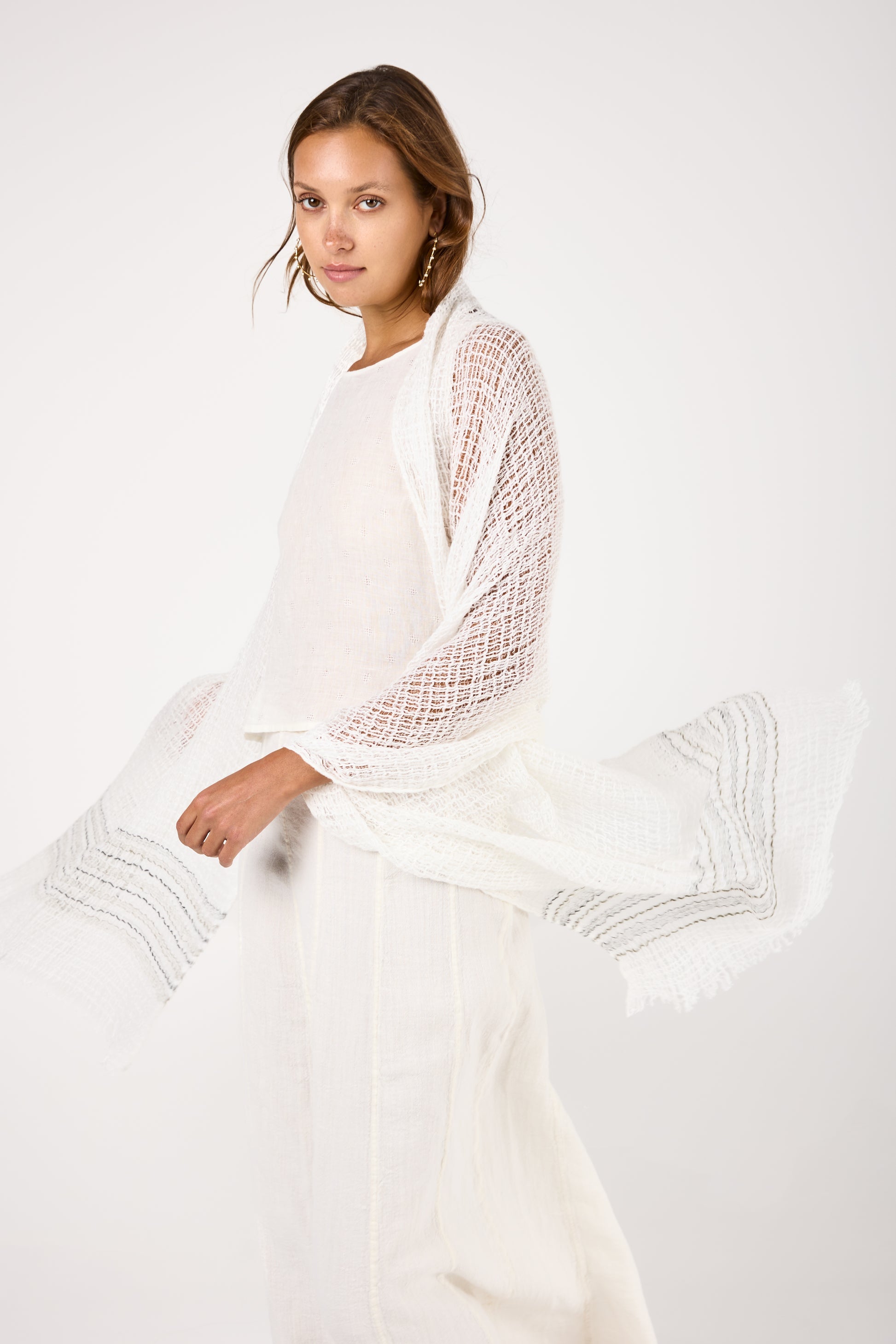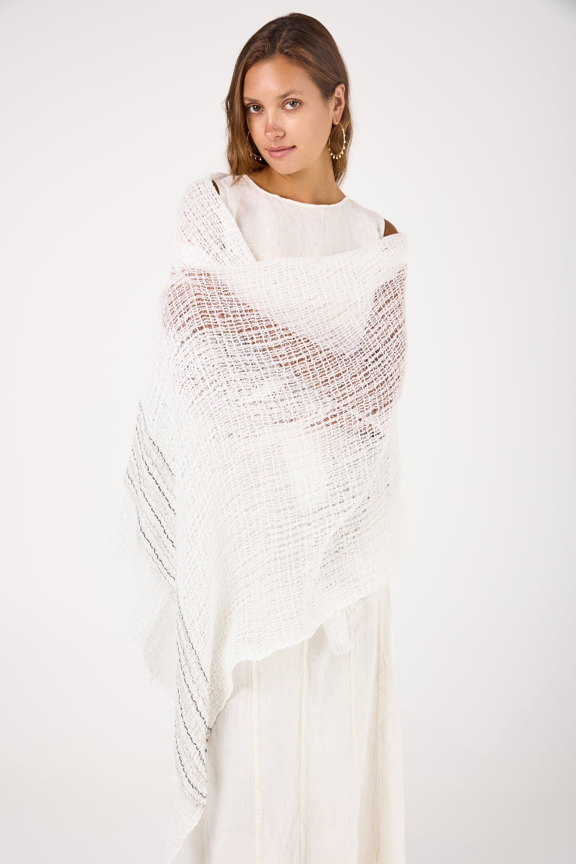 La Bottega di Brunella Luxury Italian Latte Shawl combines elegance and comfort with its 100% linen fabric. Lightweight and versatile, this eco-friendly shawl is perfect for layering, adding a touch of Italian sophistication to any look.