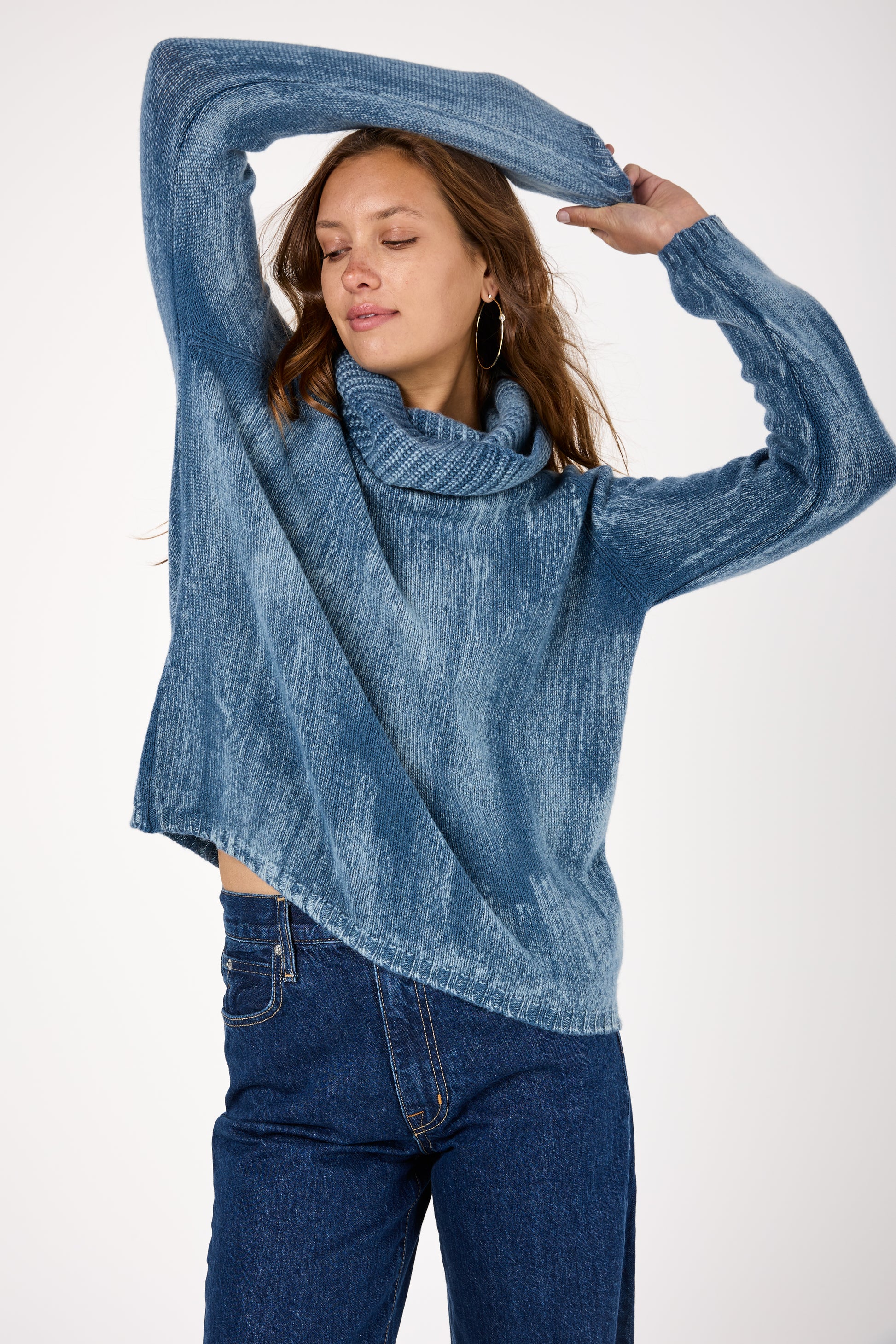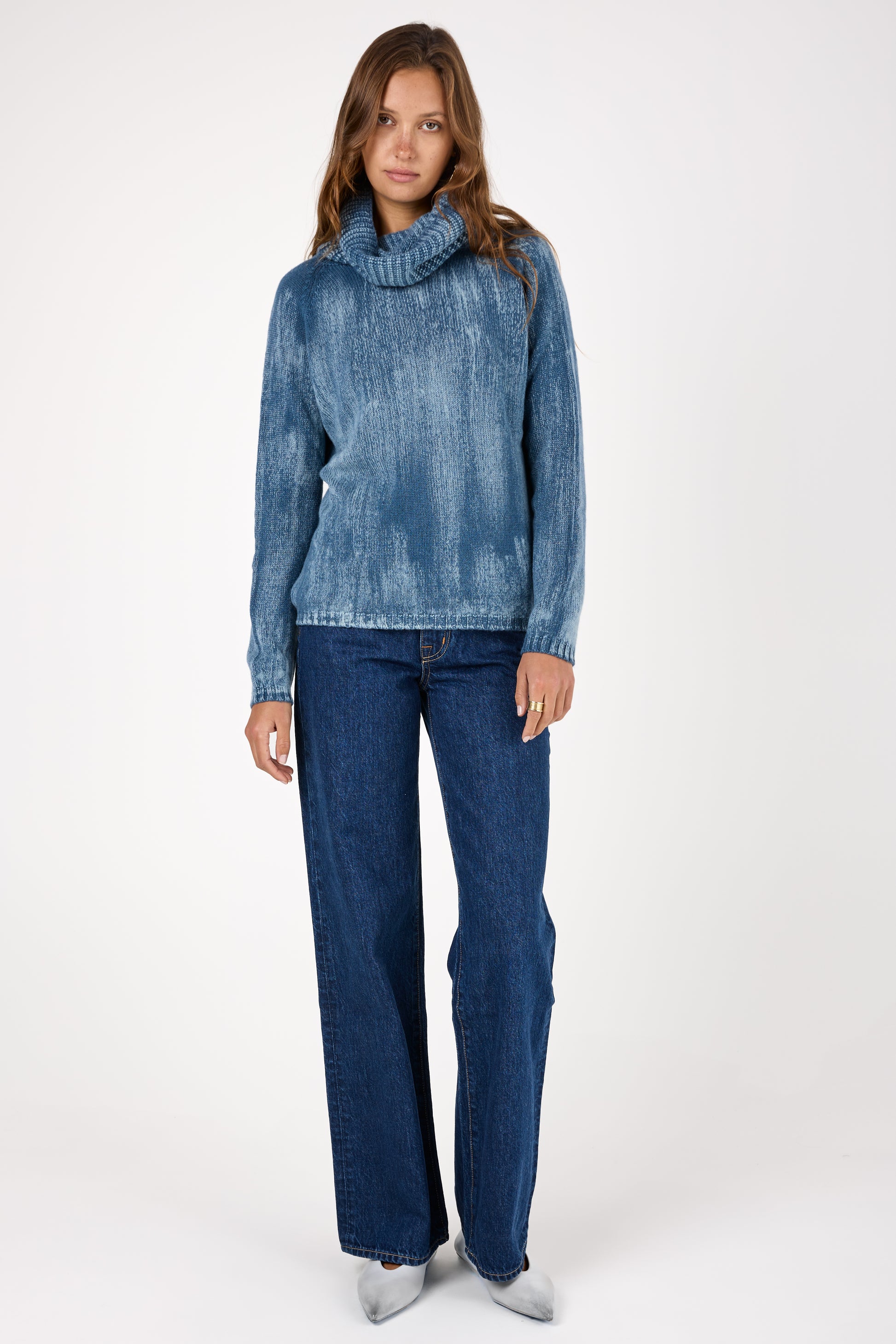 Tonal Effect High Neck Off Gauge Cashmere Pullover in Fiume