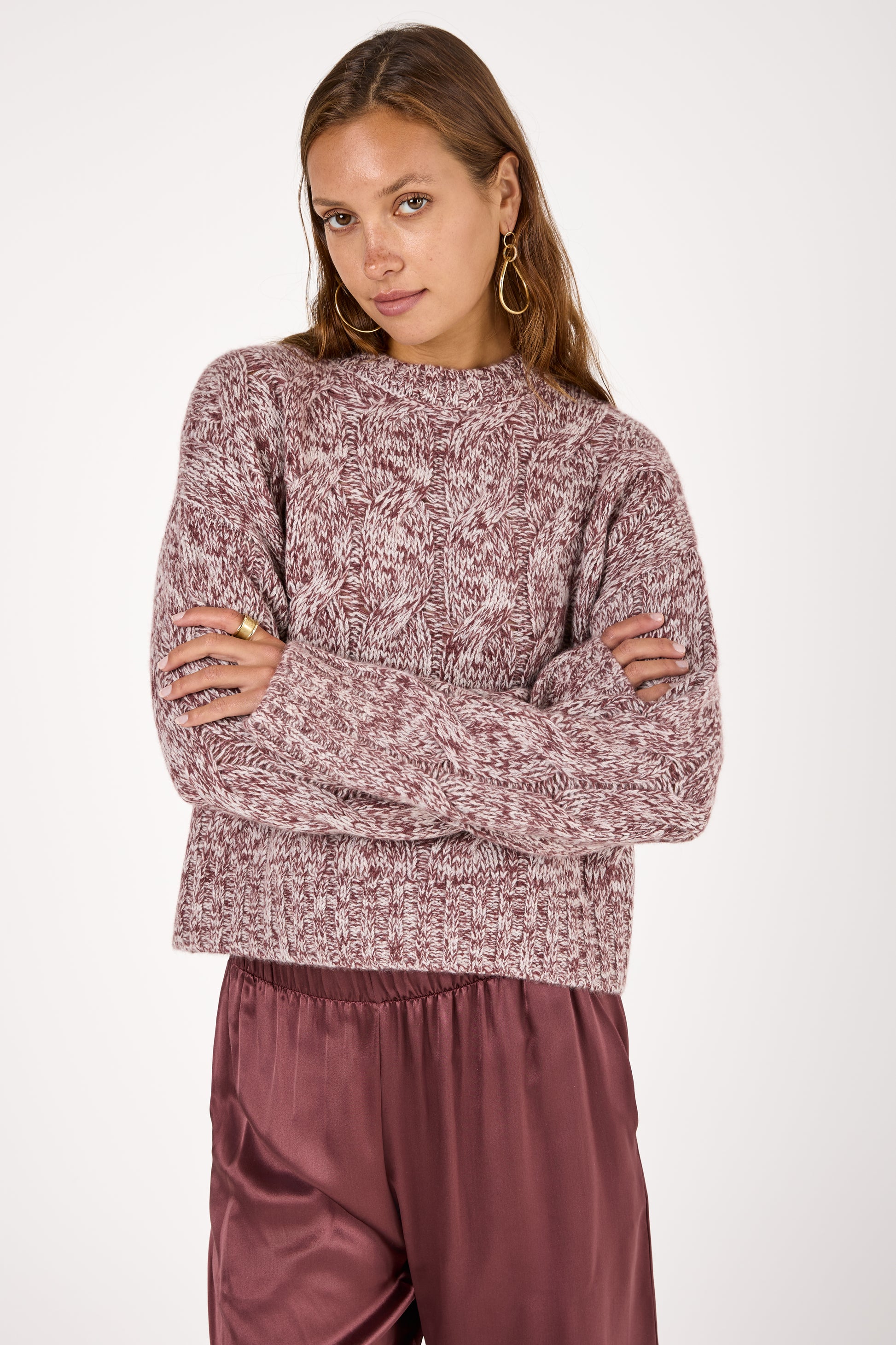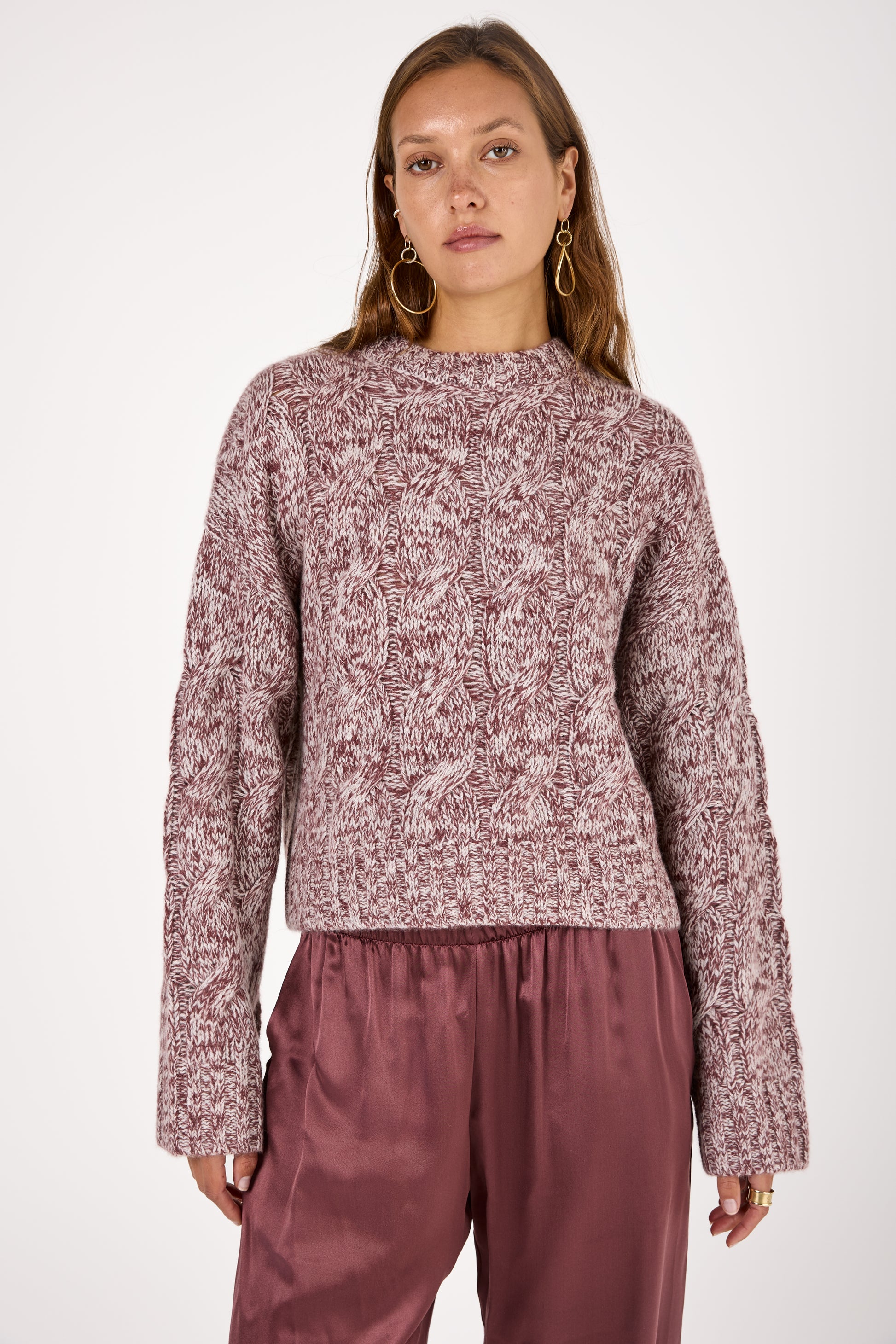 Tristan Cashmere Marled Crewneck Pullover in Cimarron