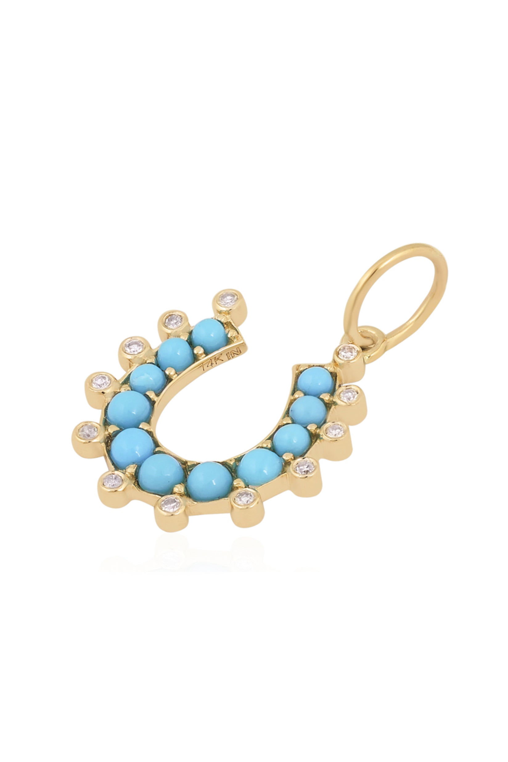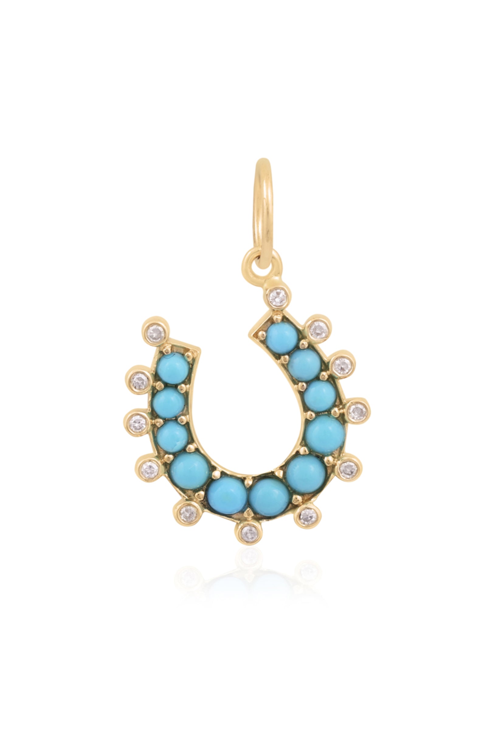 L.A. STEIN Turquoise Horseshoe in 14k Gold. Approximately 19.4mm x 15.7mm.