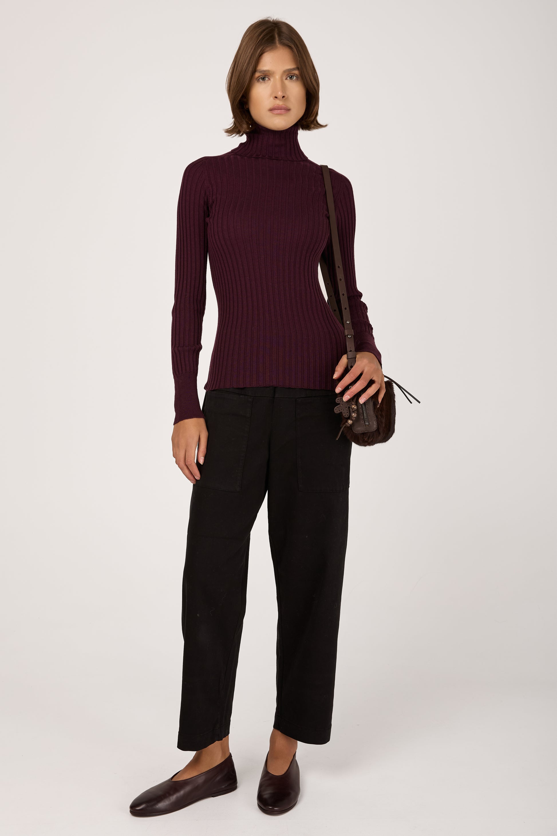 Coltellaccio Leather Ballerina Shoe in Chocowine