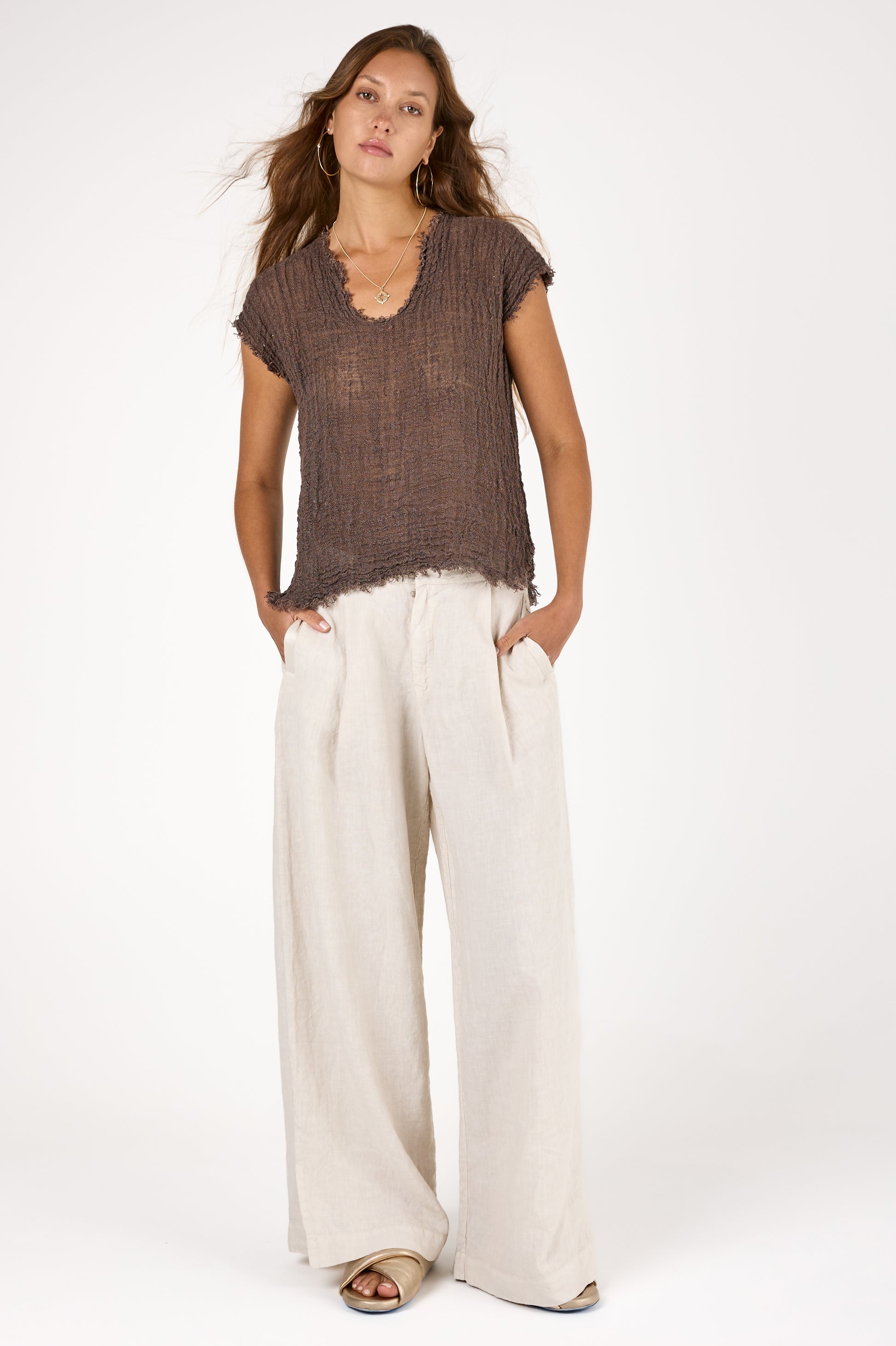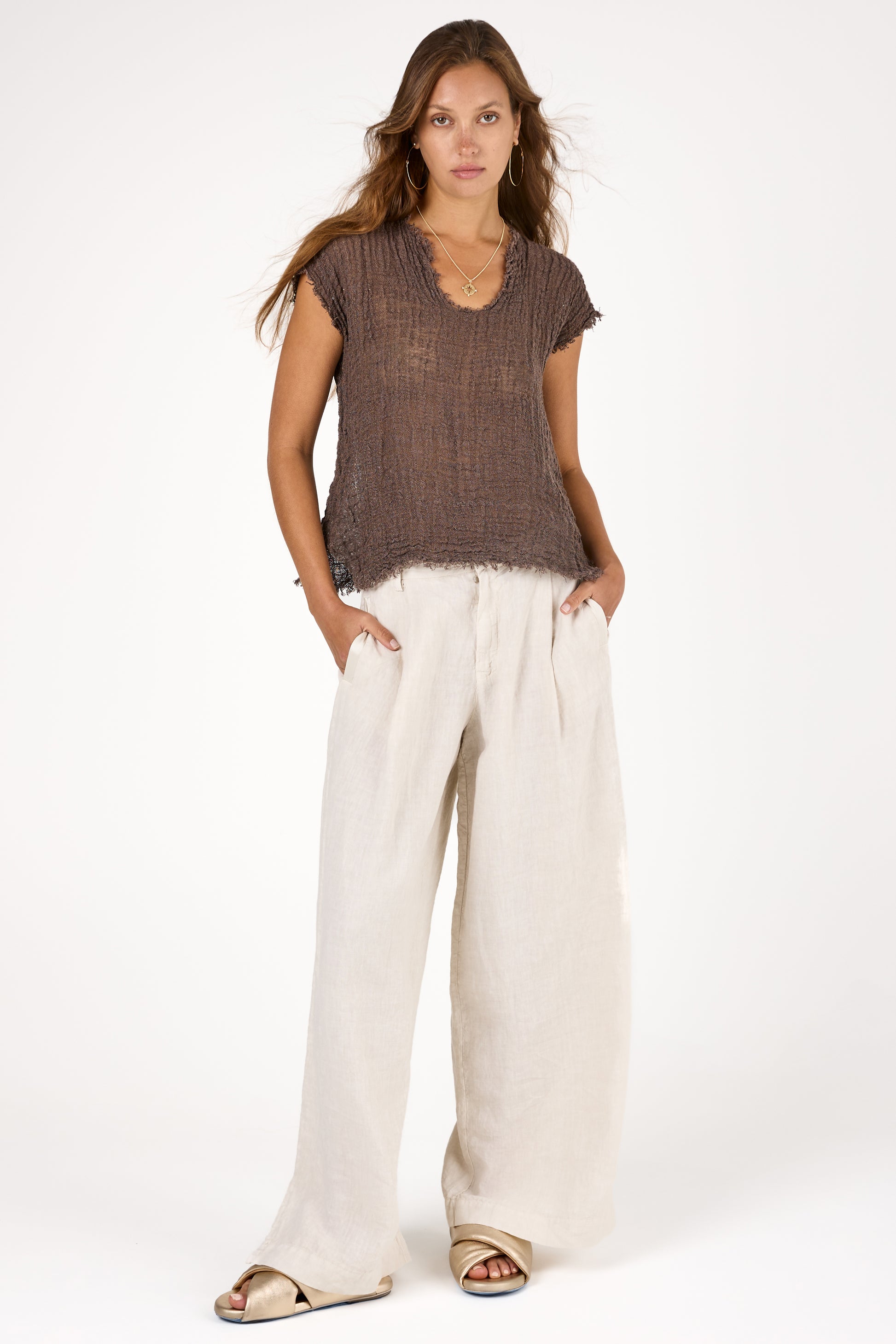 The La Bottega di Brunella Carrubo Linen Top combines relaxed elegance with luxurious craftsmanship. Made from 100% linen, this lightweight top is perfect for layering or wearing solo, offering breathable comfort and timeless style for any season.