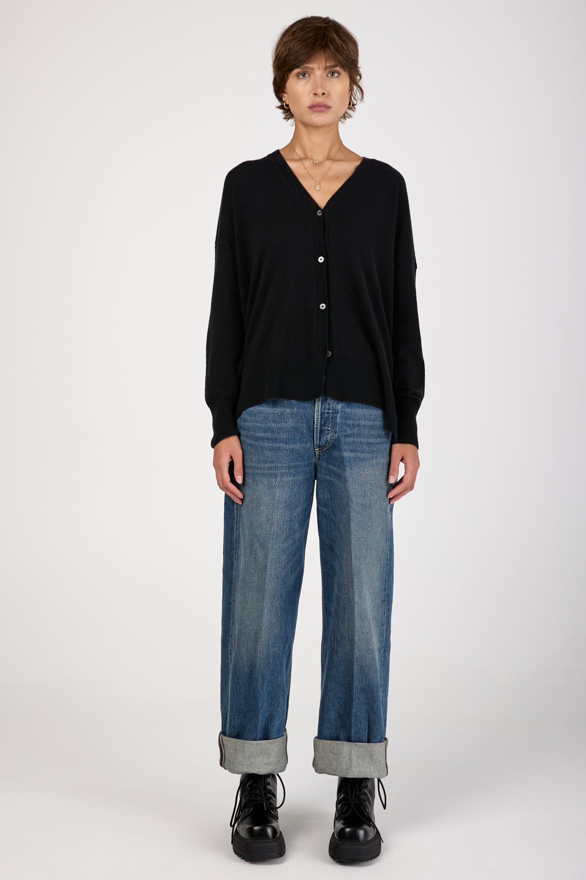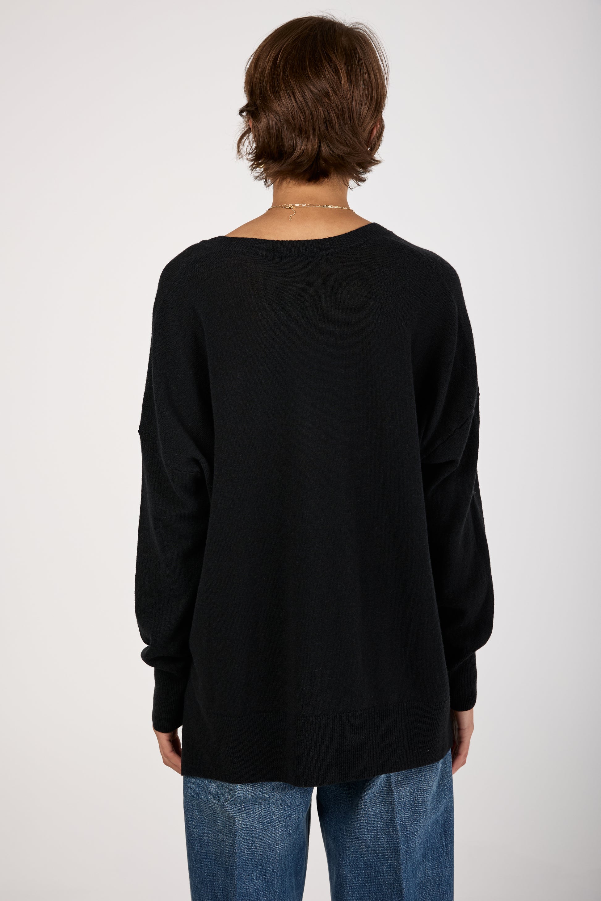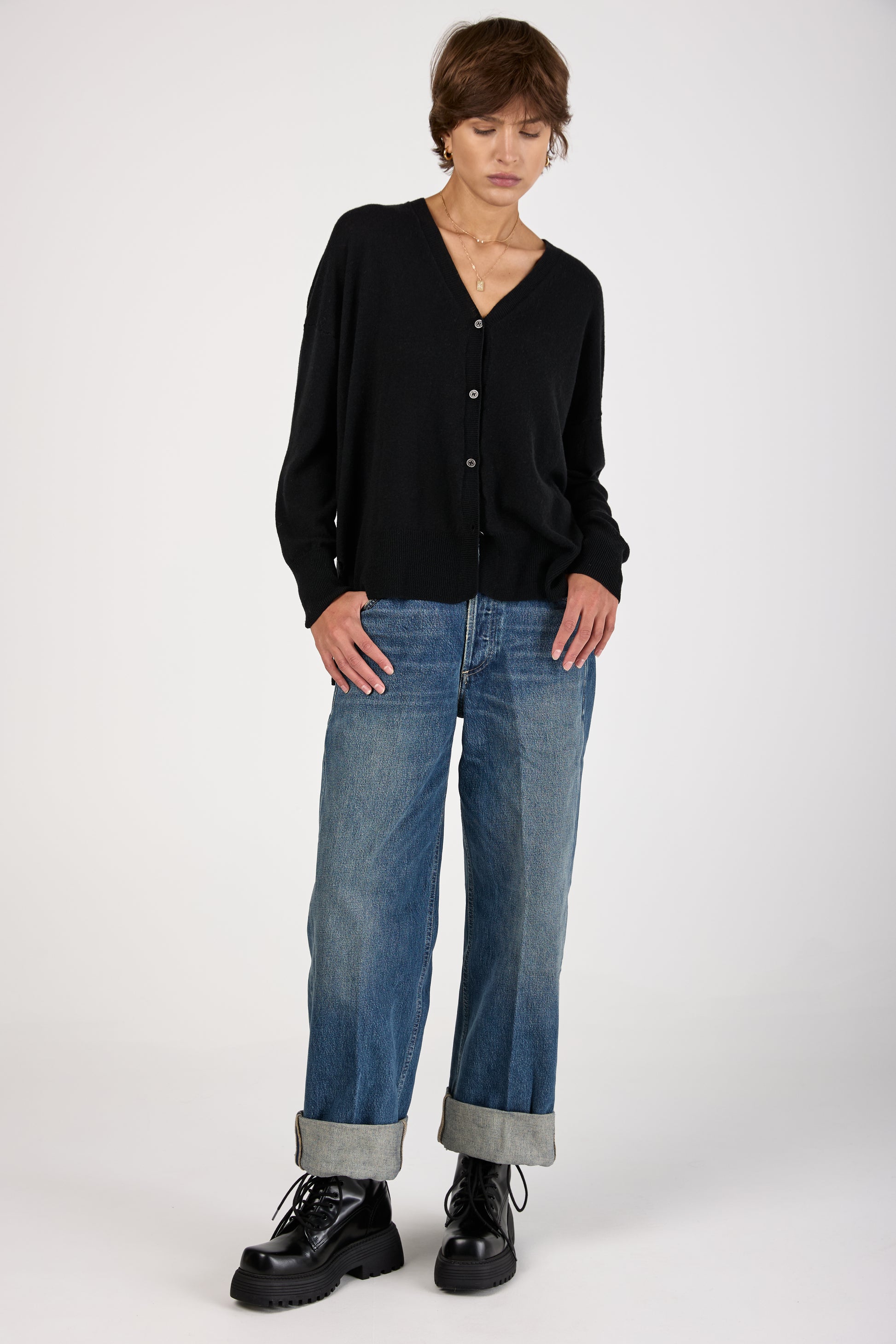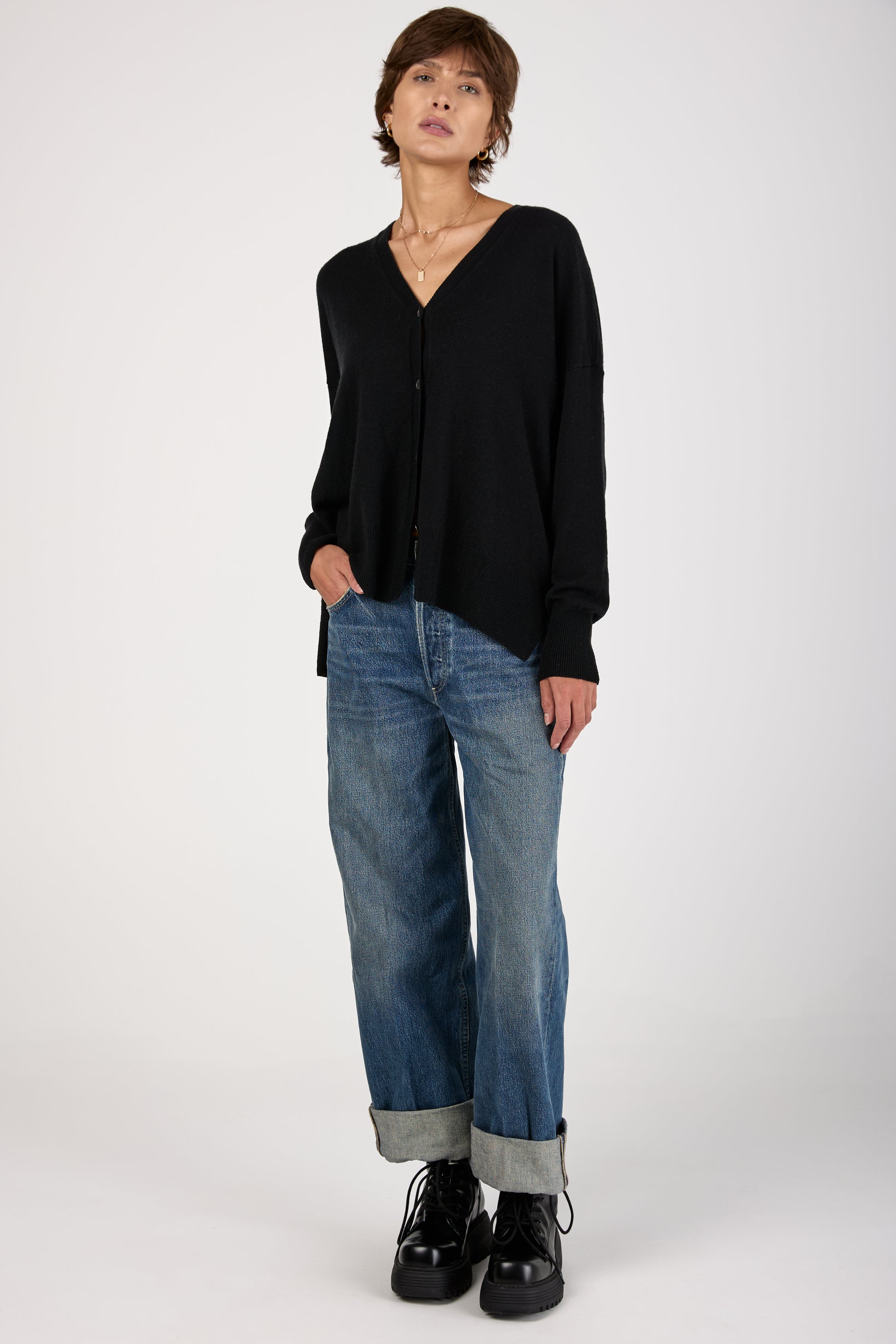 The TRANSIT V-Neck Cardigan Jacket in Black offers timeless sophistication in a luxurious wool-cashmere blend. Made in Italy, this sleek outerwear piece features a tailored fit and minimalist design, perfect for layering over shirts or knits.Ā