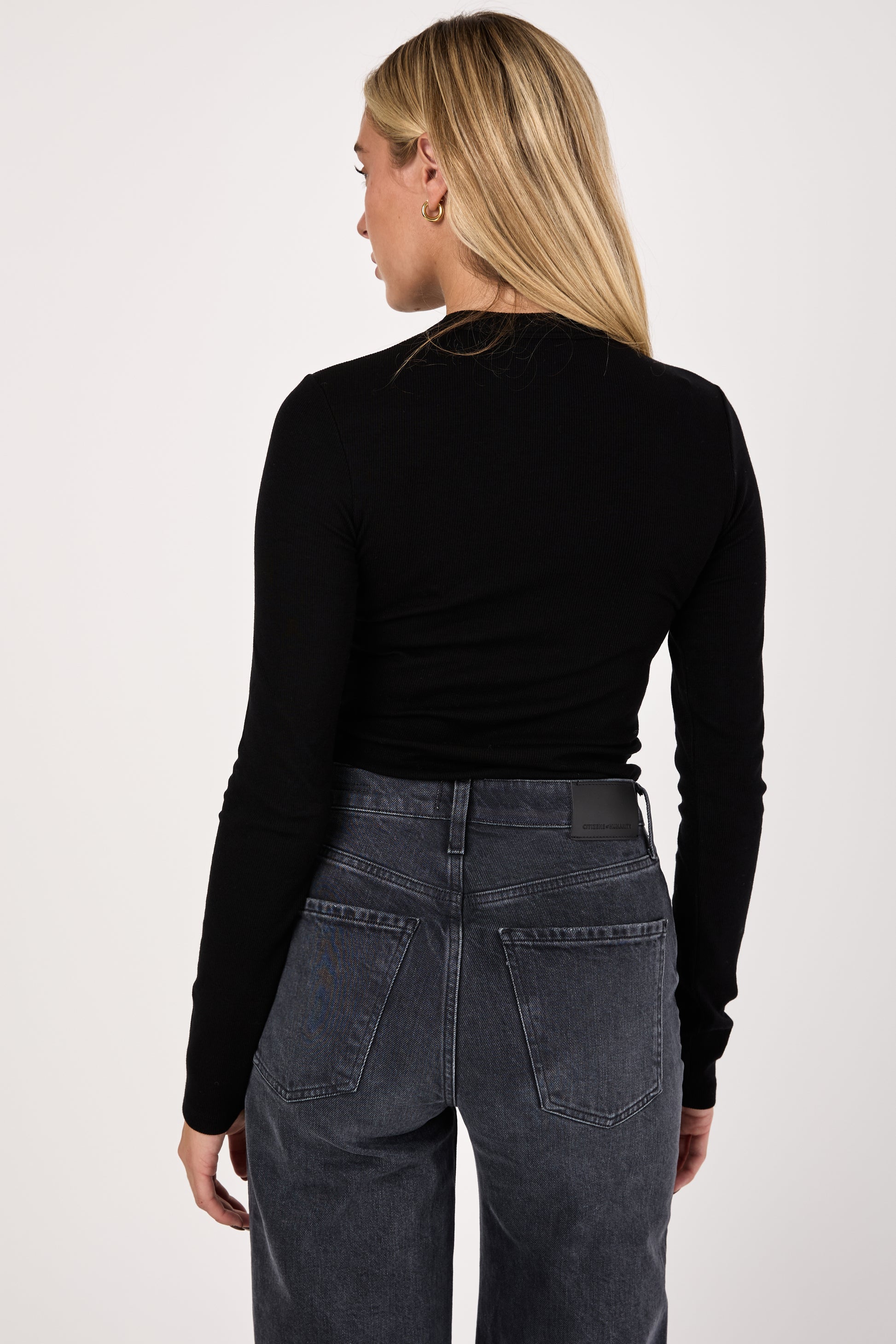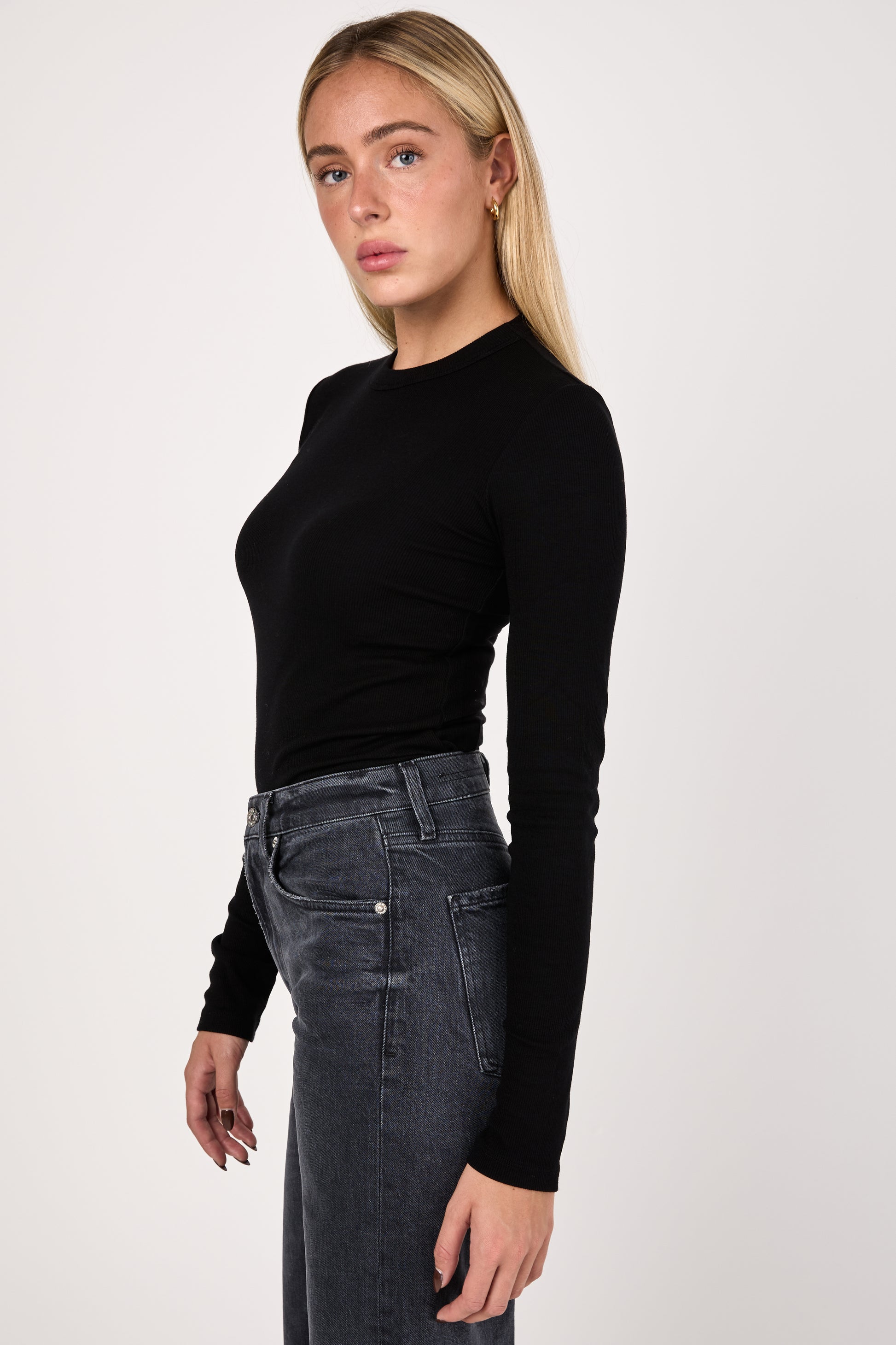 COTTON CITIZEN Verona Long Sleeve Shirt in Jet Black. Classic long sleeve t-shirt design and a slim-fitting silhouette. Handcrafted in Los Angeles from ultra-soft, lightweight cotton modal for comfort and flexibility.