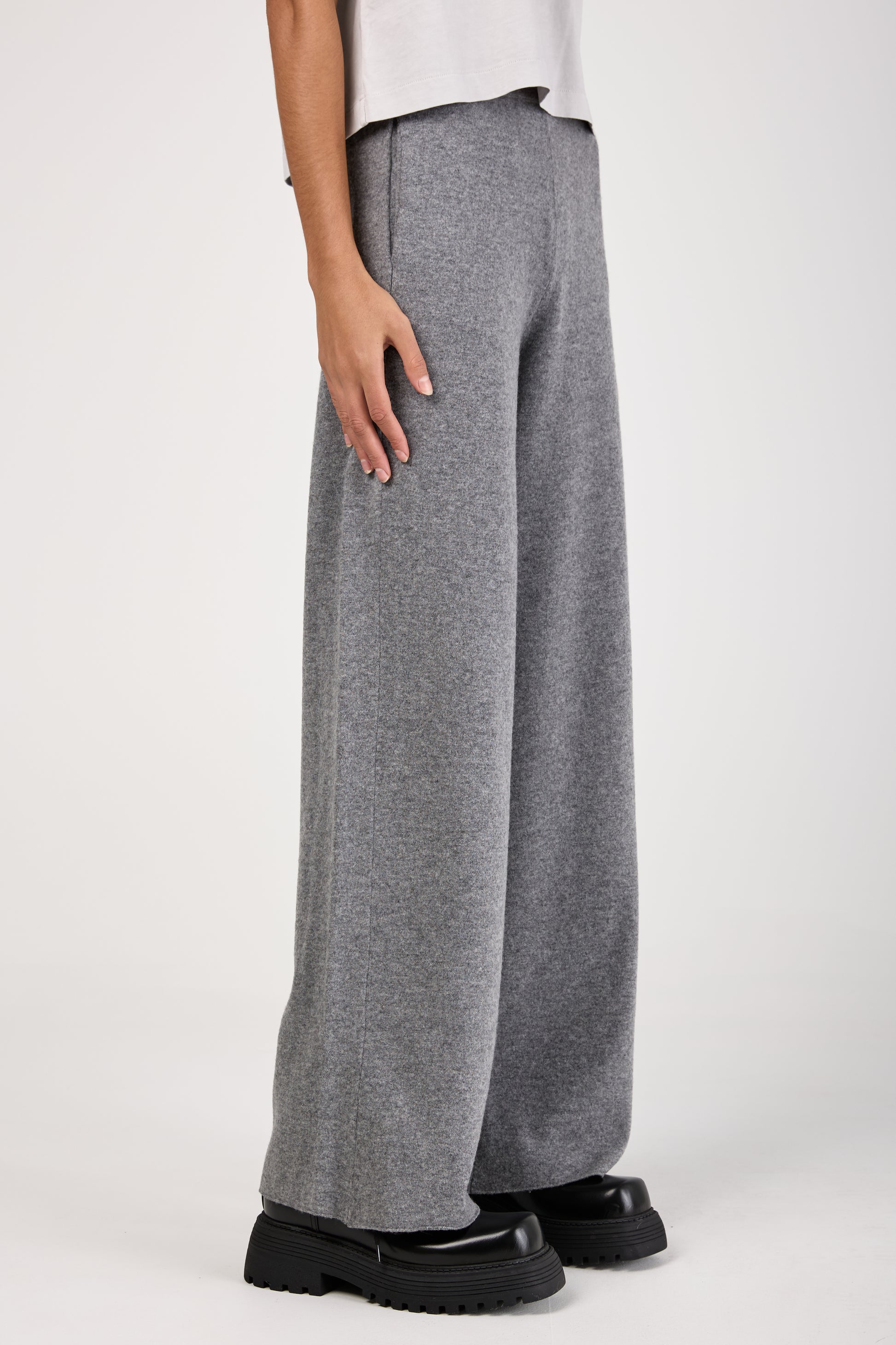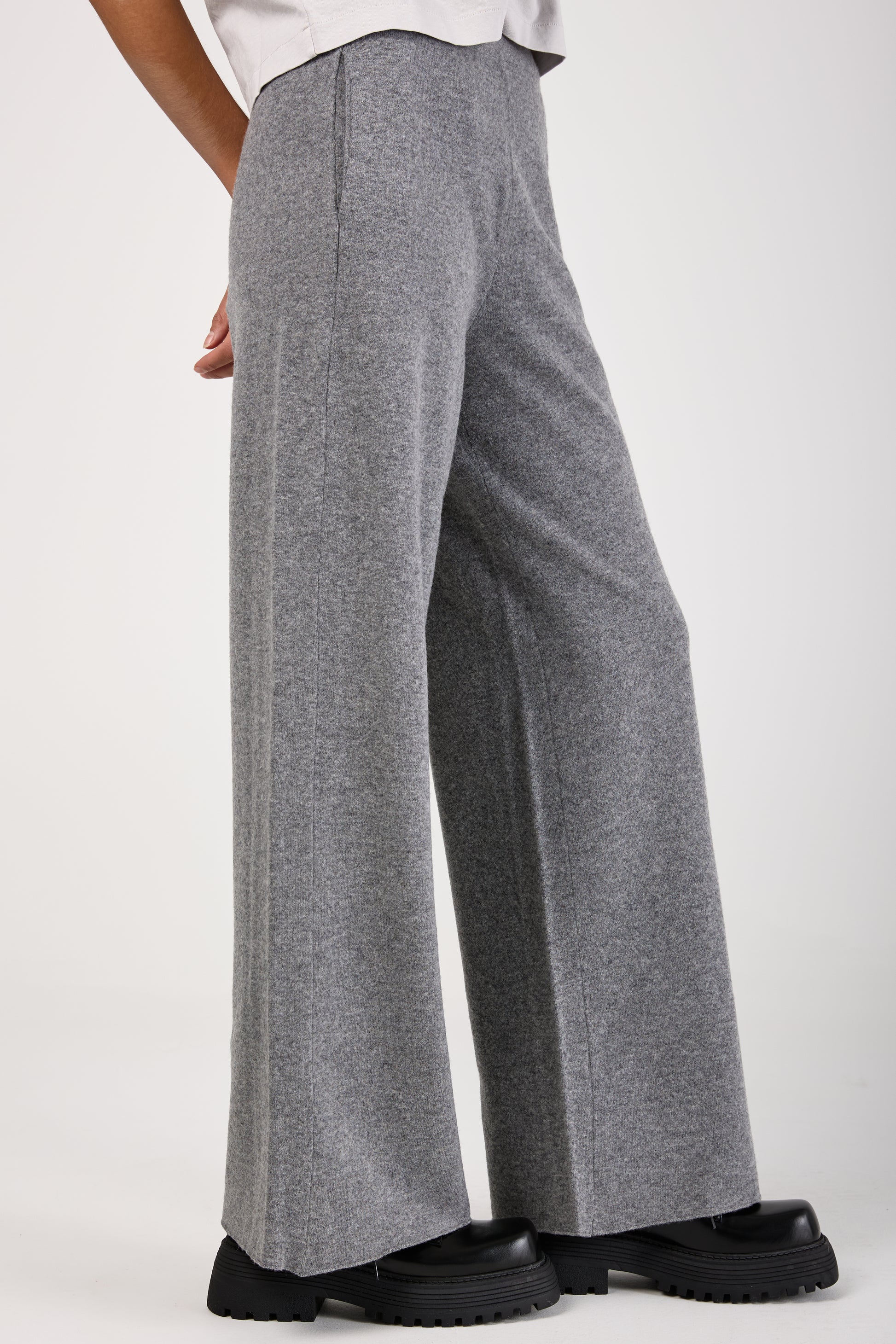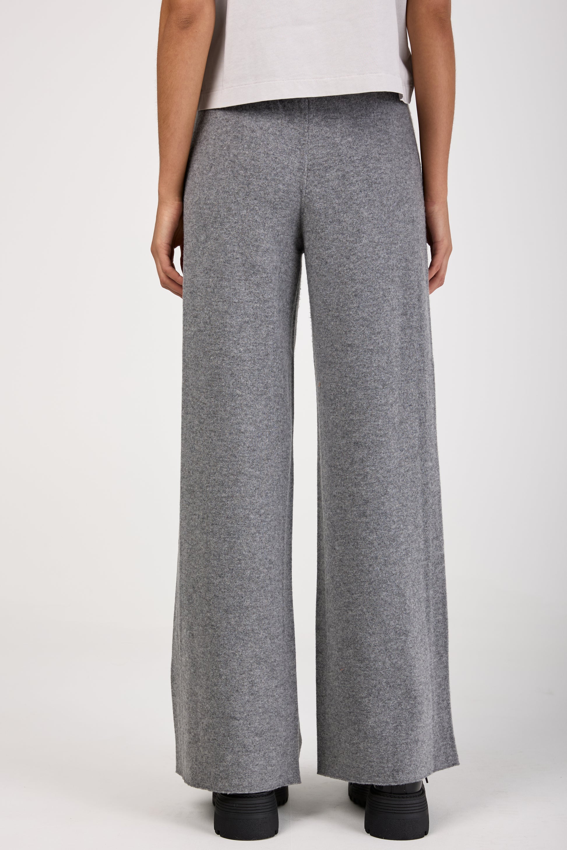 (NUDE) Virgin Wool Felt Wide Leg Pant in Grey. Wide leg pant made of Virgin Wool. Made in Italy.