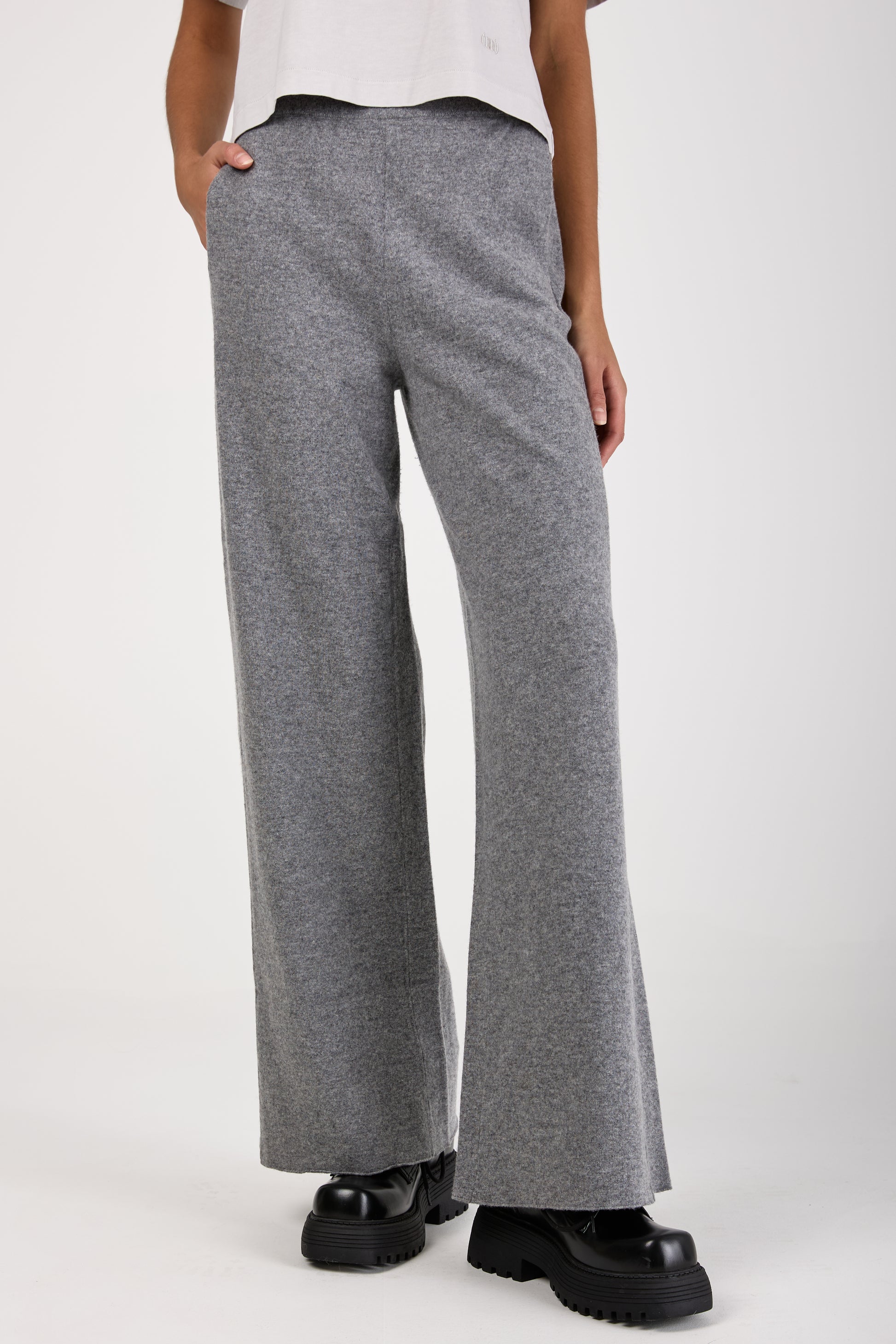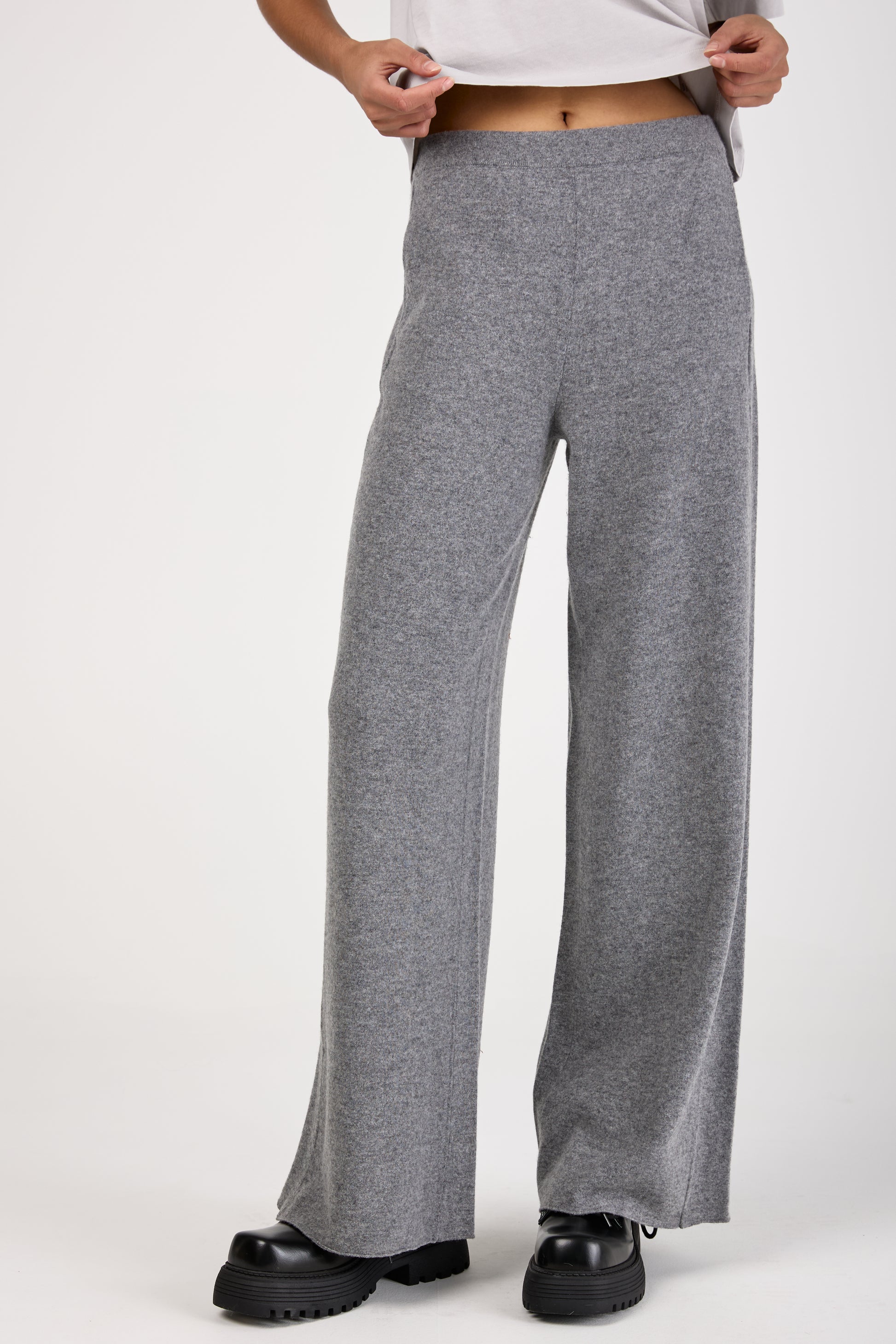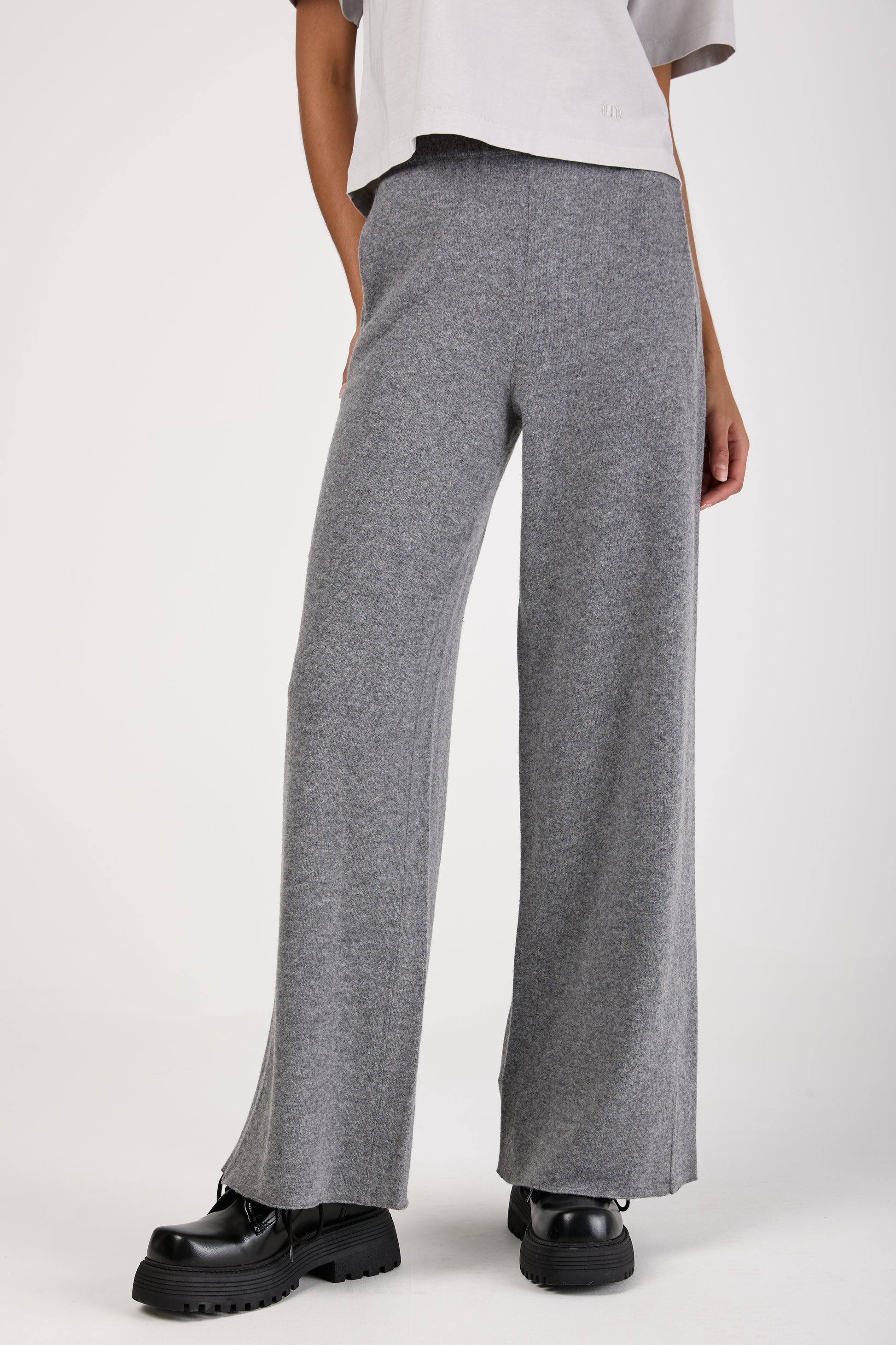 (NUDE) Virgin Wool Felt Wide Leg Pant in Grey. Wide leg pant made of Virgin Wool. Made in Italy.