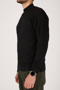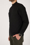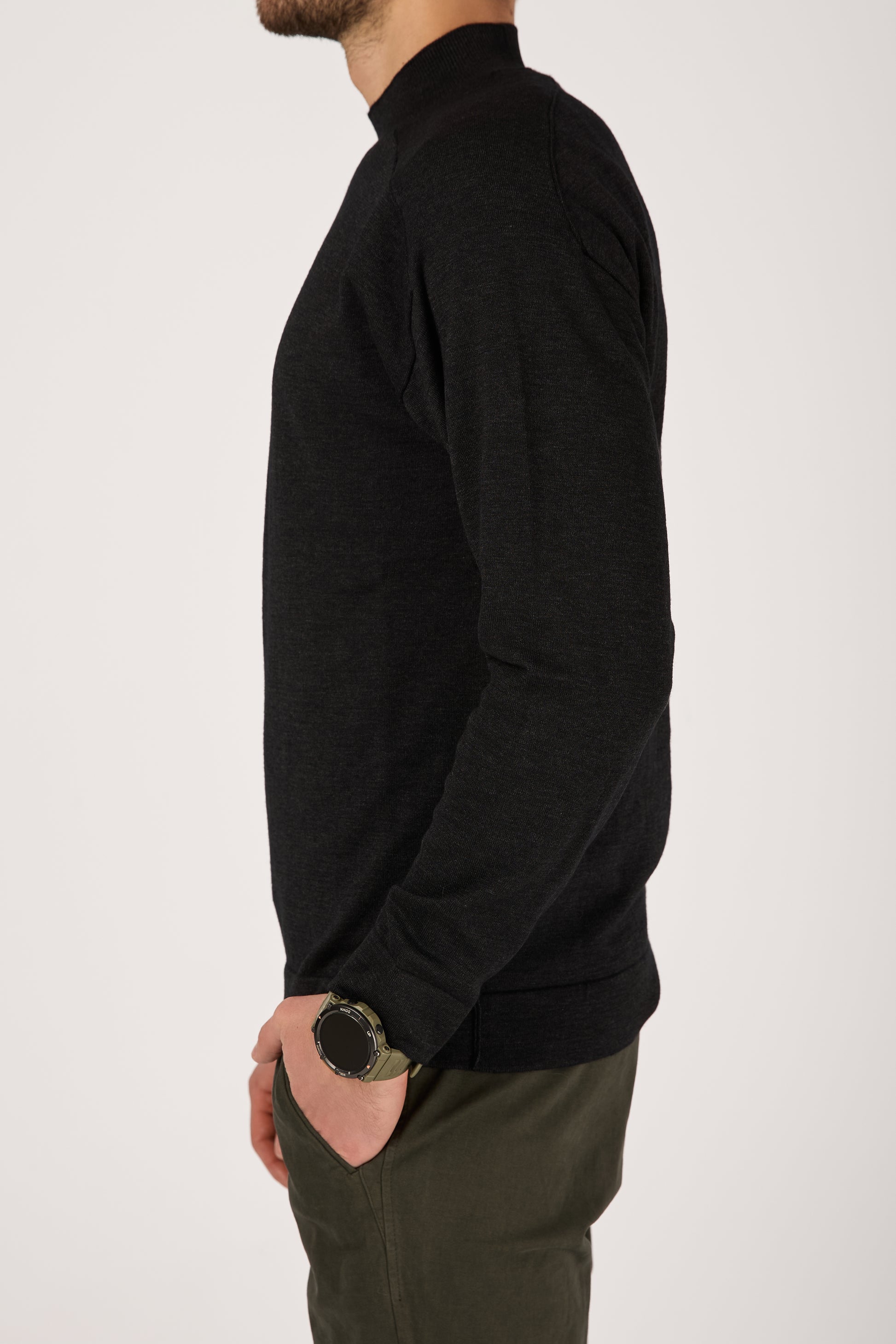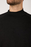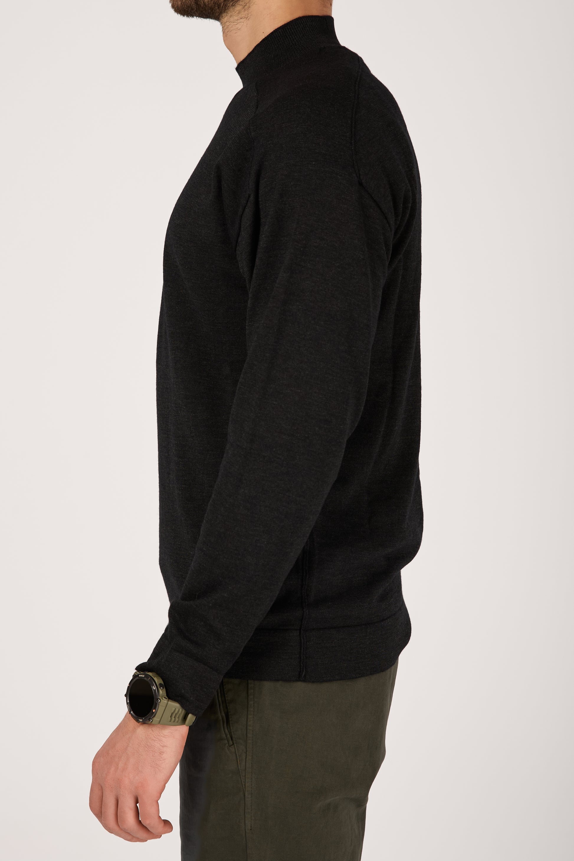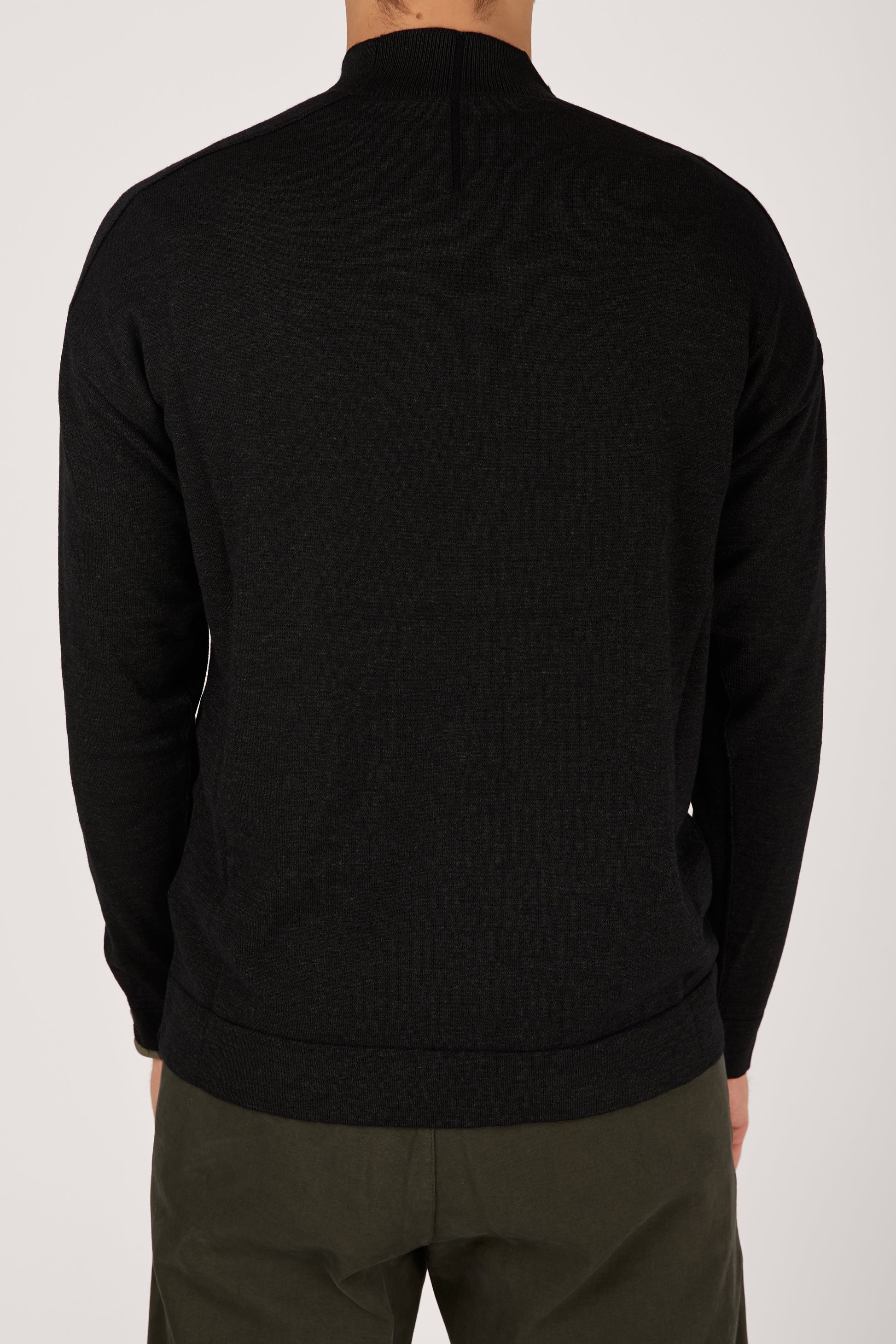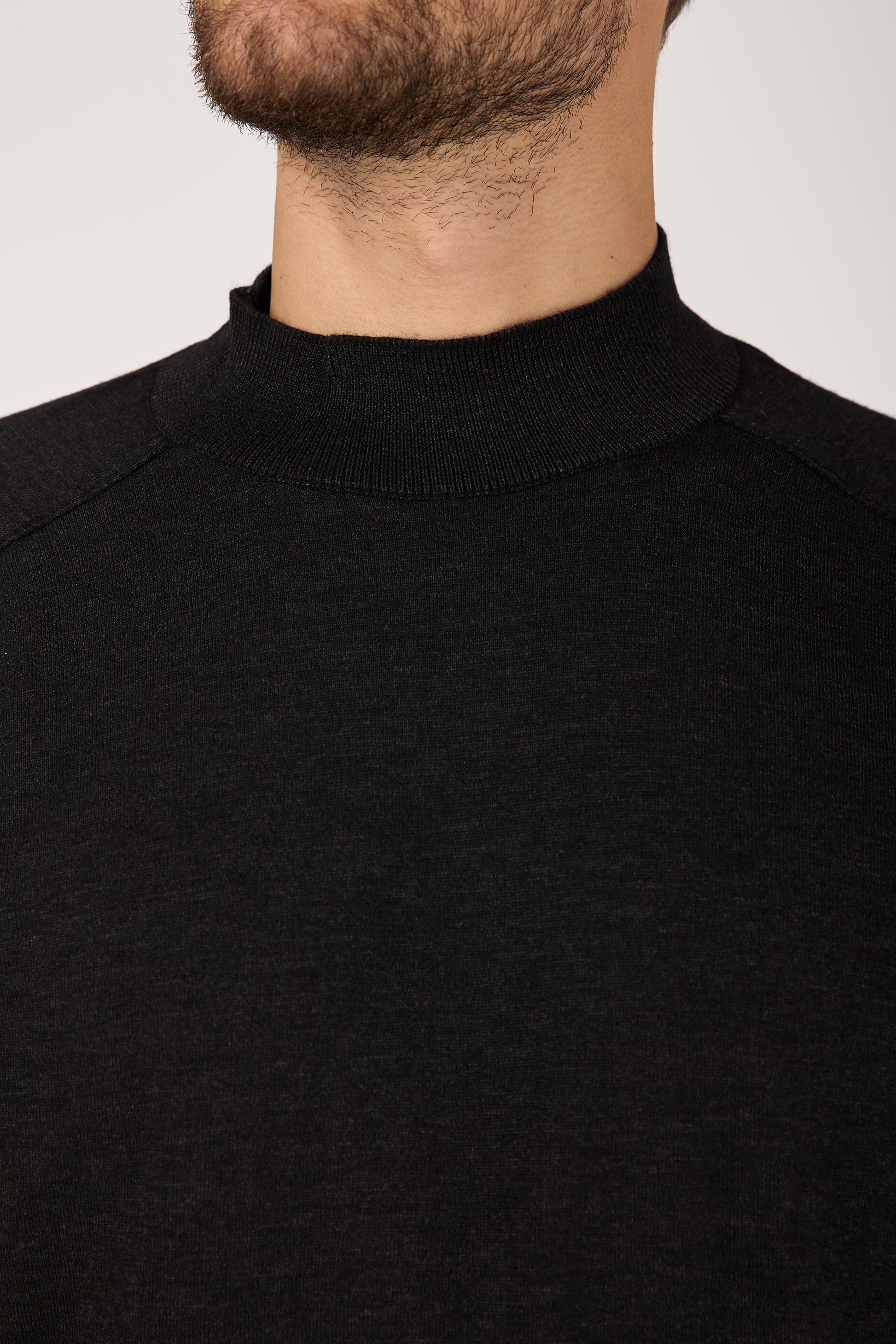 The TRANSIT Virgin Wool Pullover Sweater in Charcoal is crafted in Italy from a virgin wool and viscose blend, offering a soft, fluid drape and a luxurious handfeel. This loose-fit vanisé turtleneck combines comfort with effortless sophistication. Finished with a tubular satin hem and a contrasting detail at the nape, it exudes refined texture and understated elegance.