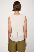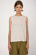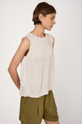 The TRANSIT Viscose Linen Tank Top in Sand is crafted in Italy from breathable linen jersey at the front, while the back reveals two asymmetrical layers of lightweight viscose georgette, creating soft movement and depth. Designed with a comfort-fit silhouette and wide shoulders, it features ribbed trims and a round neckline for a polished finish.