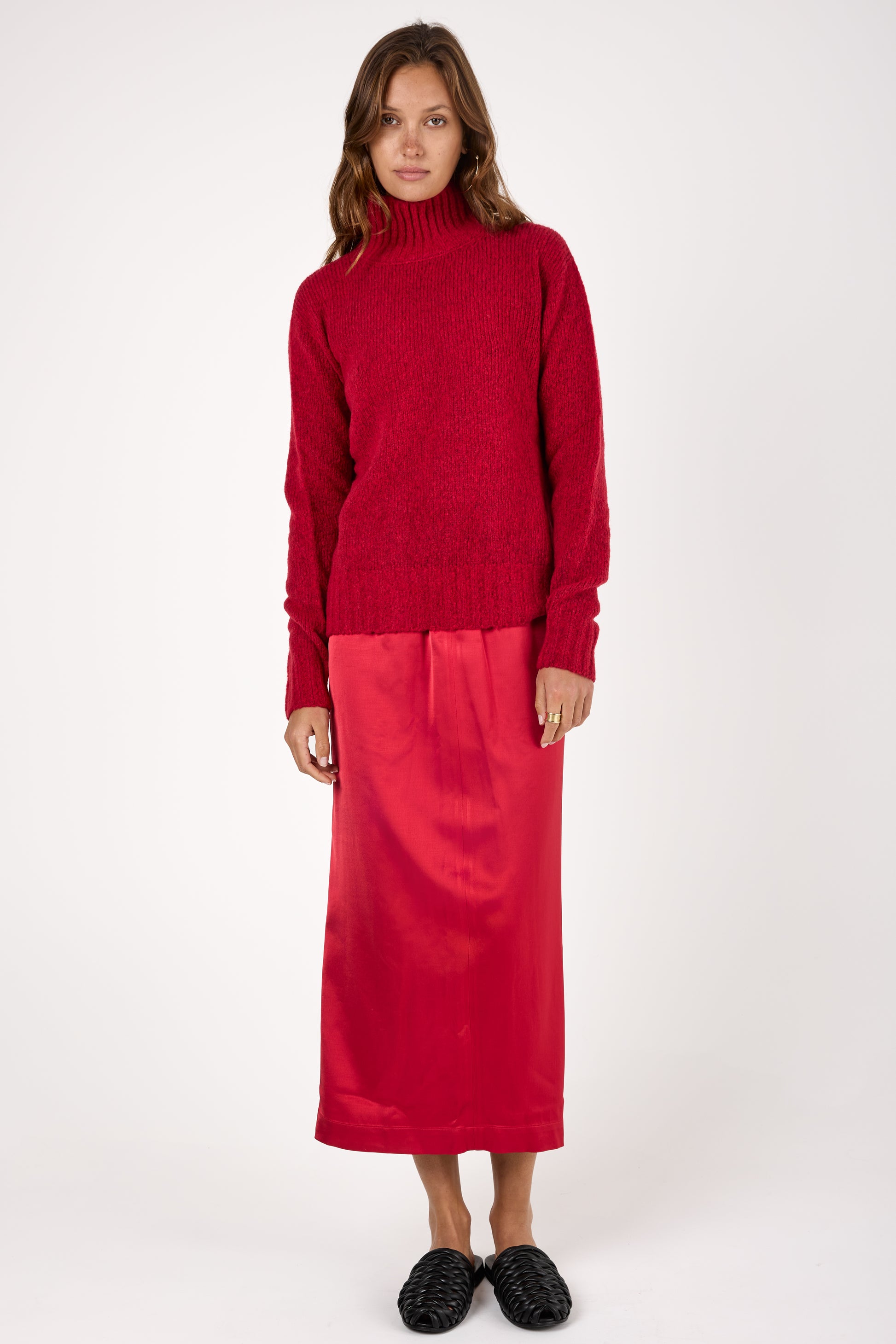 The GENTRYPORTOFINO Viscose Wool Skirt in Rosso is a luxurious, flared midi skirt crafted from a blend of soft wool and viscose. The bold red color adds vibrancy to any outfit, while the lightweight fabric ensures comfort and elegance. Perfect for both casual and formal wear, this versatile piece is a must-have.