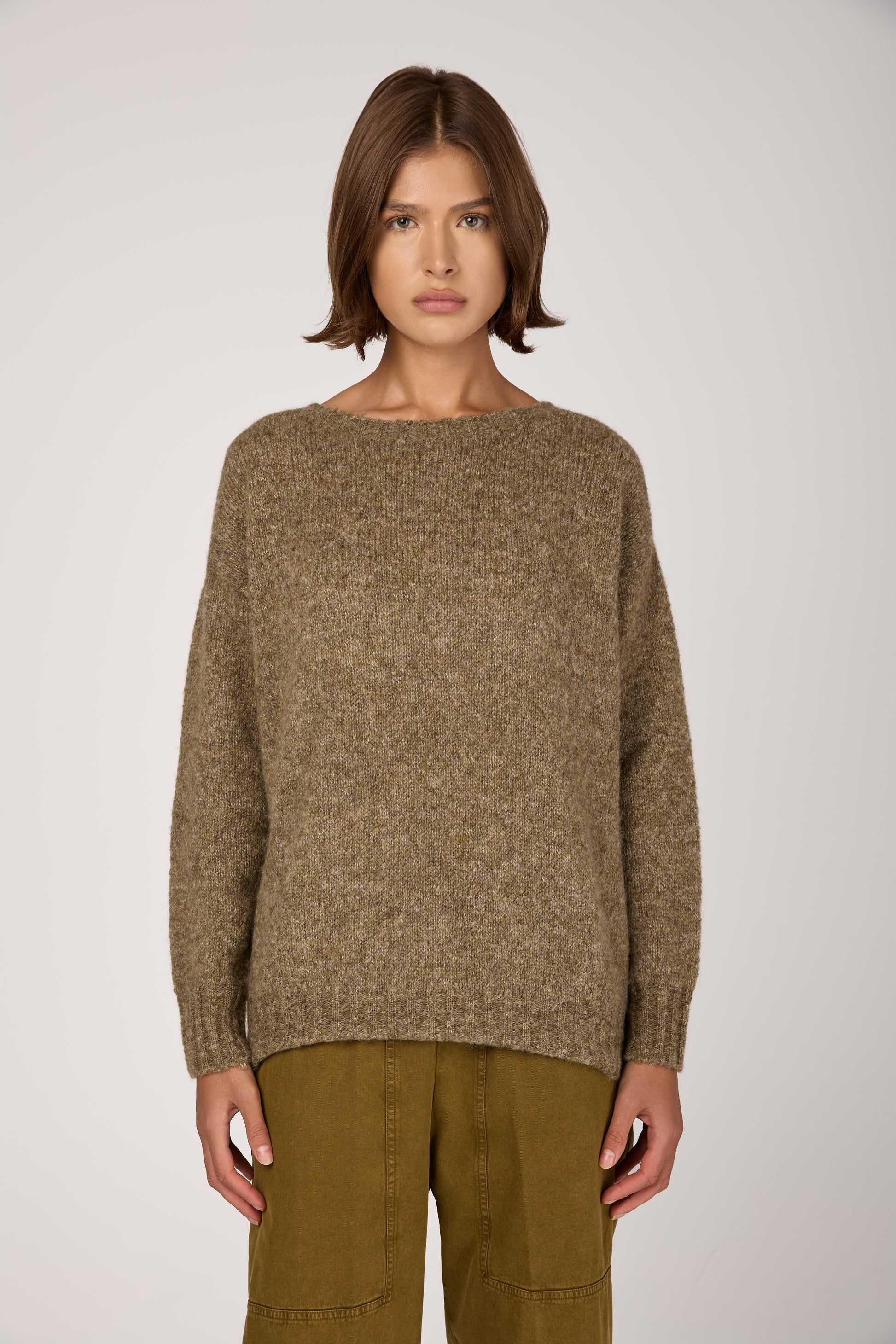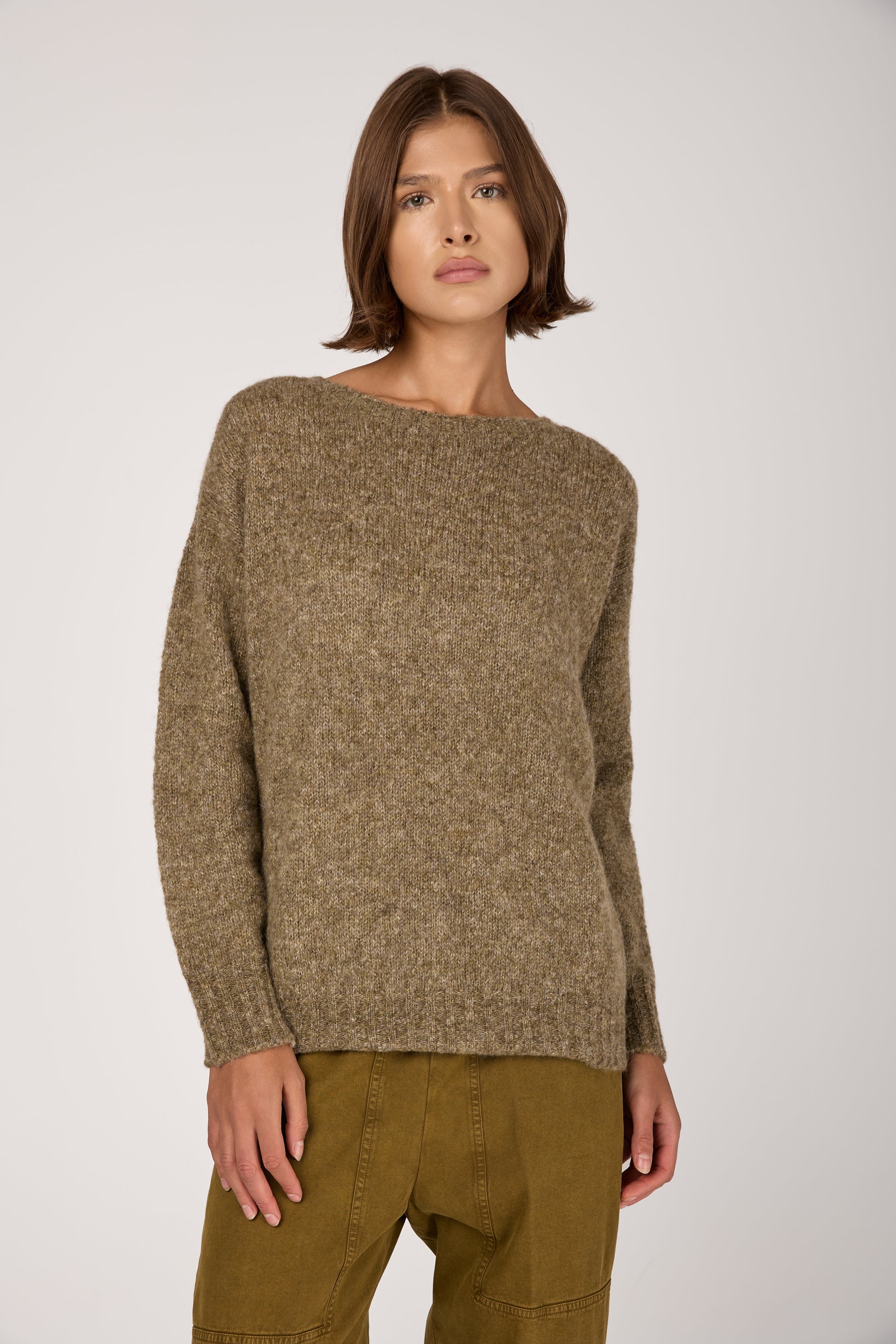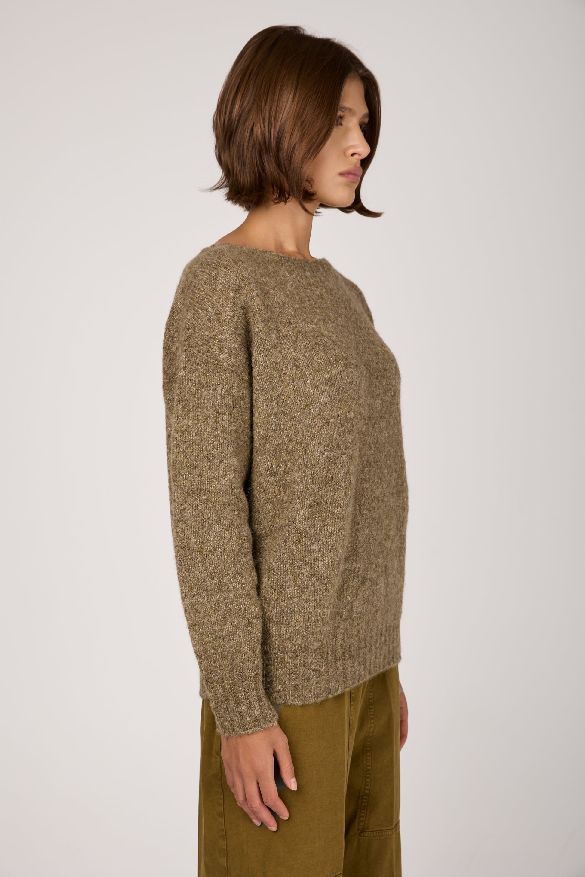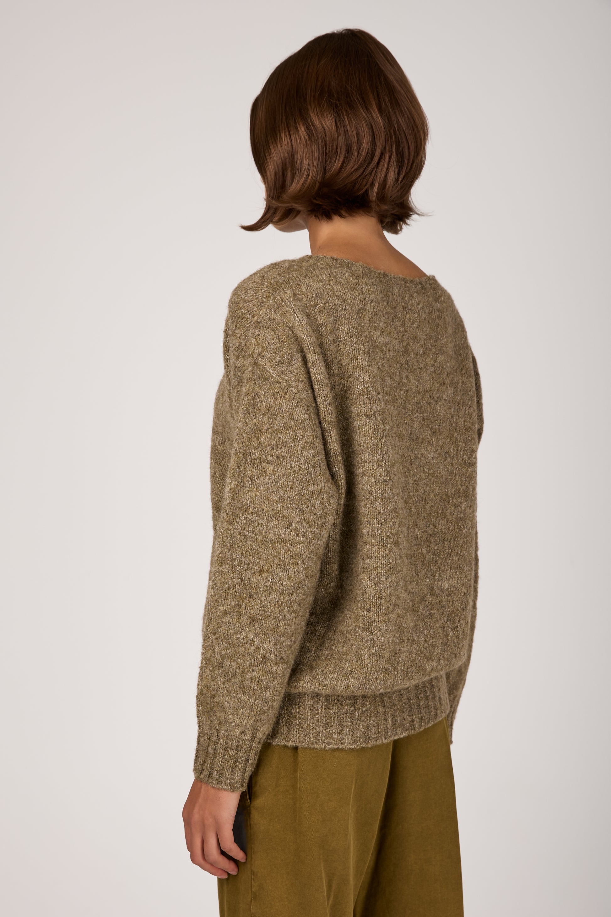 Wool Cashmere Knit Sweater in Oliva