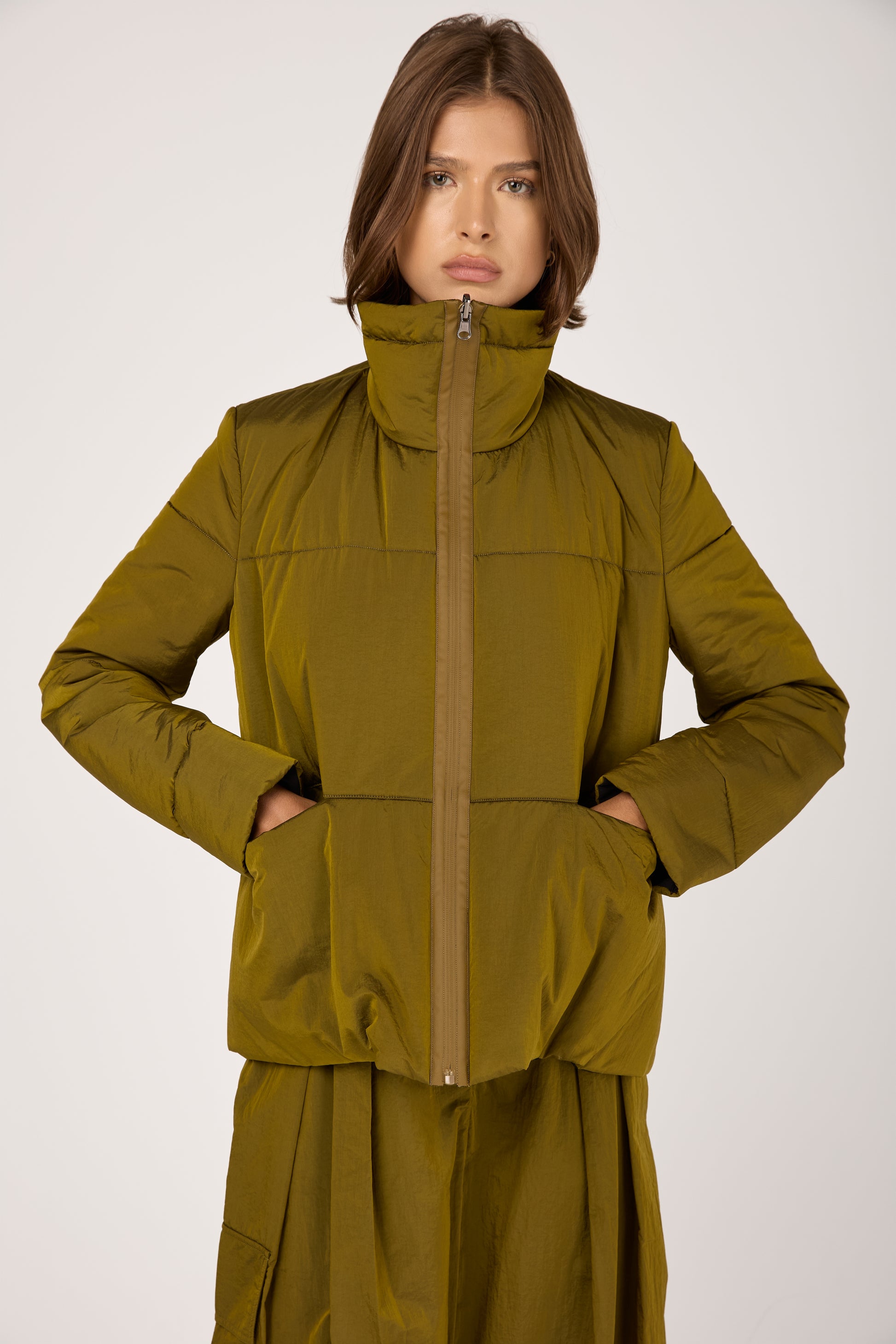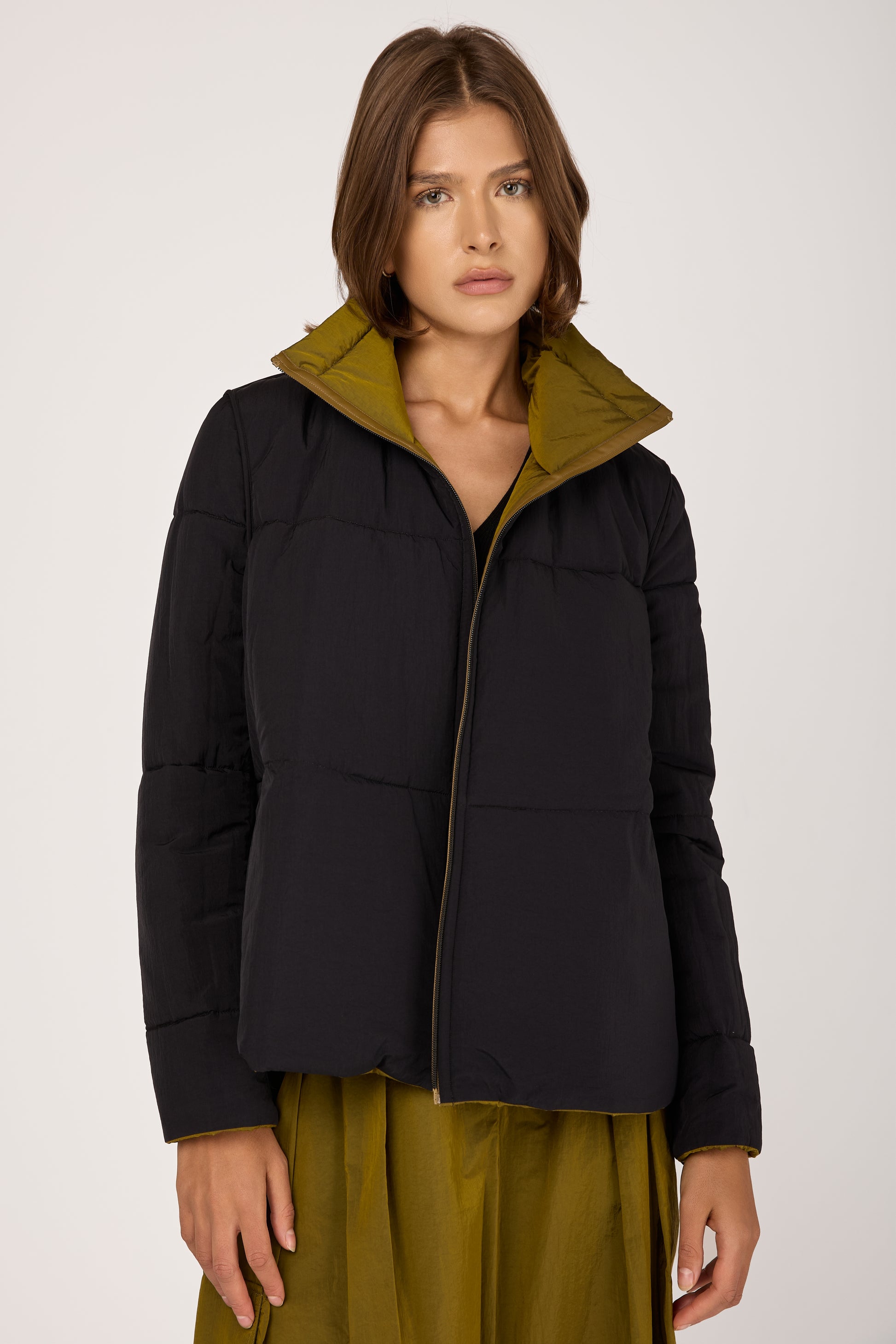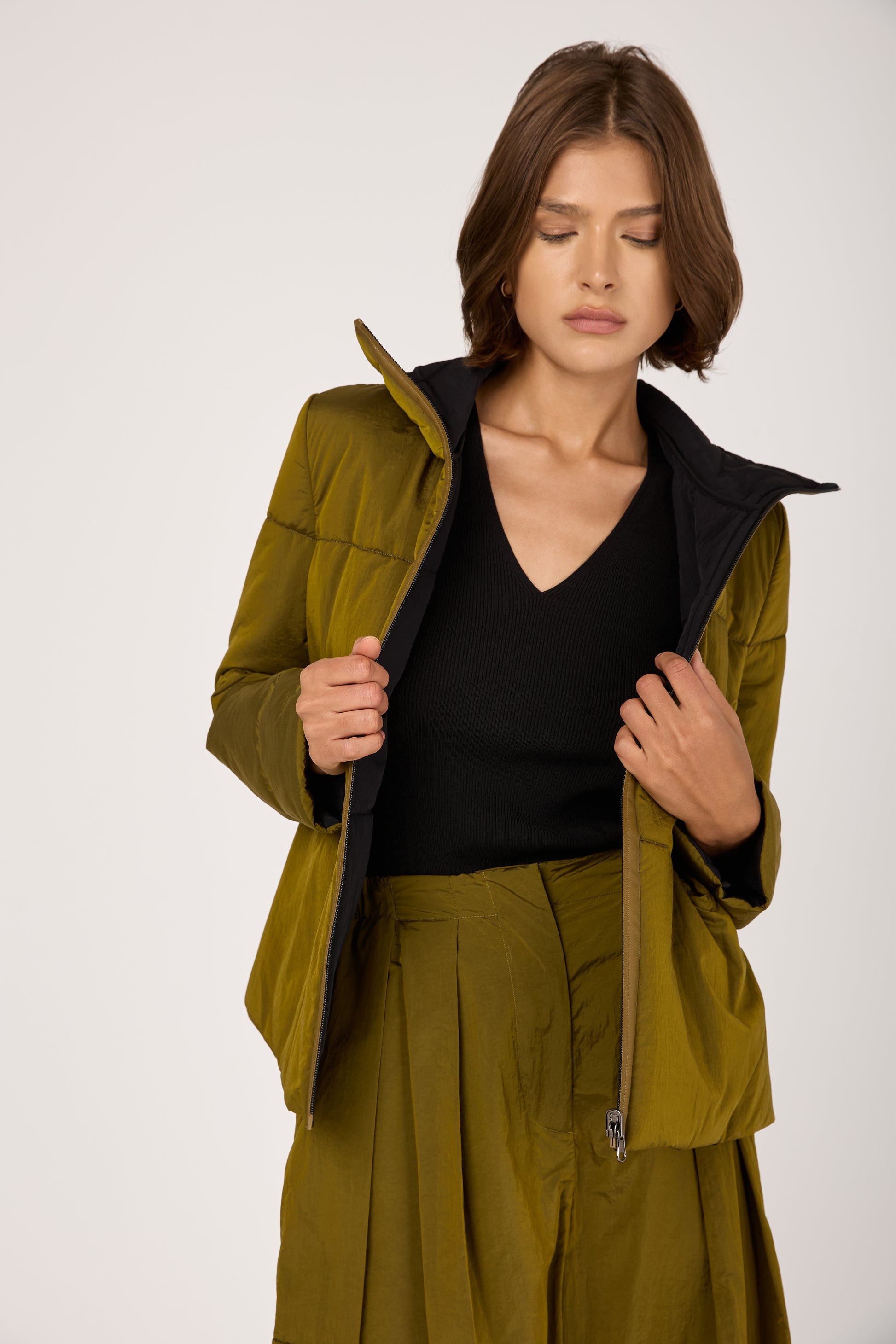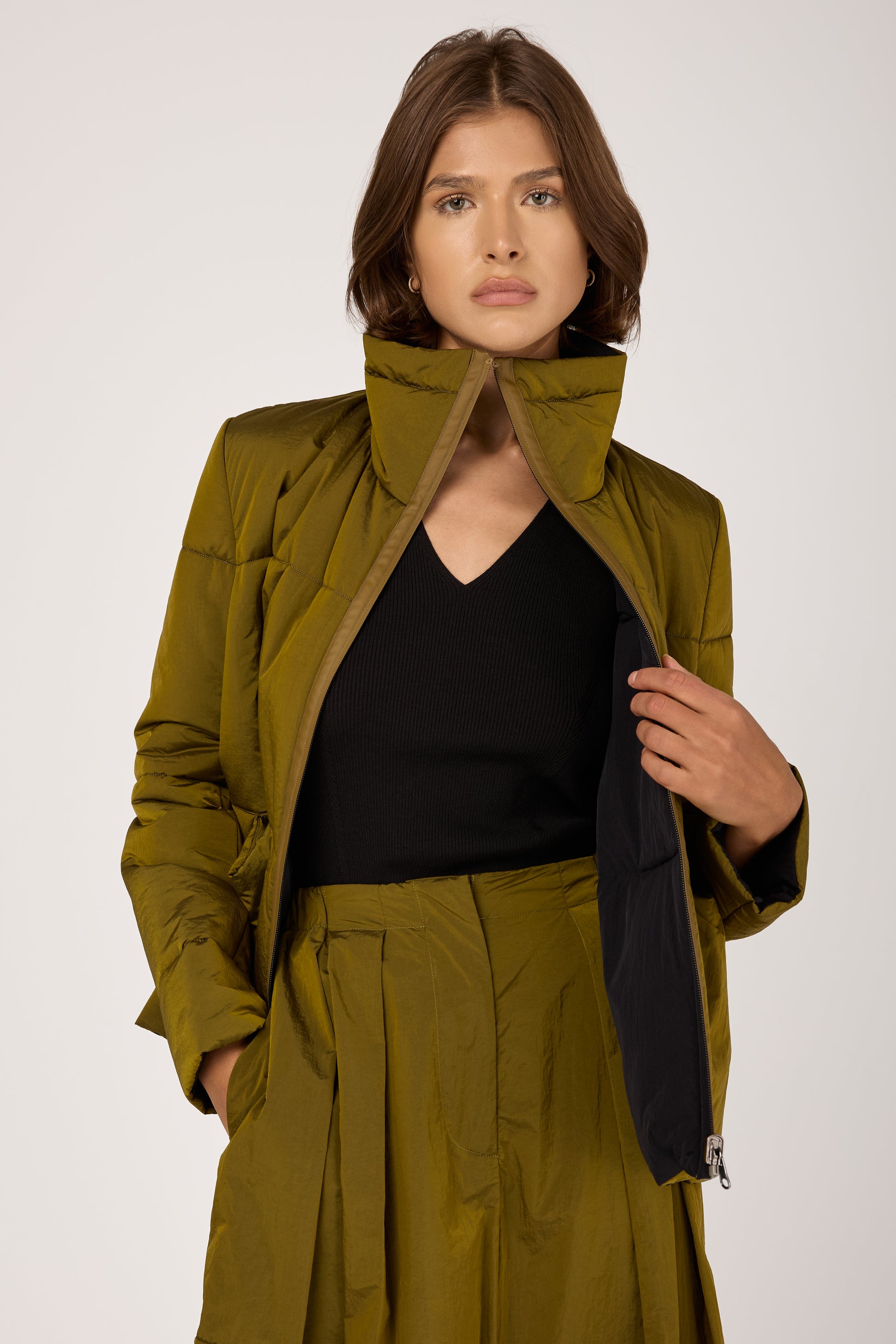 The GENTRYPORTOFINO Reversible Puffer Coat in Oliva is crafted in Italy with meticulous attention to detail. This padded woven coat features subtle quilting, a stand collar and a clean front zip for a modern, minimalist look. Its reversible design, olive on one side and black on the other, adds versatility, while lightweight padding ensures warmth and comfort, making it a versatile piece from day to evening.Ā